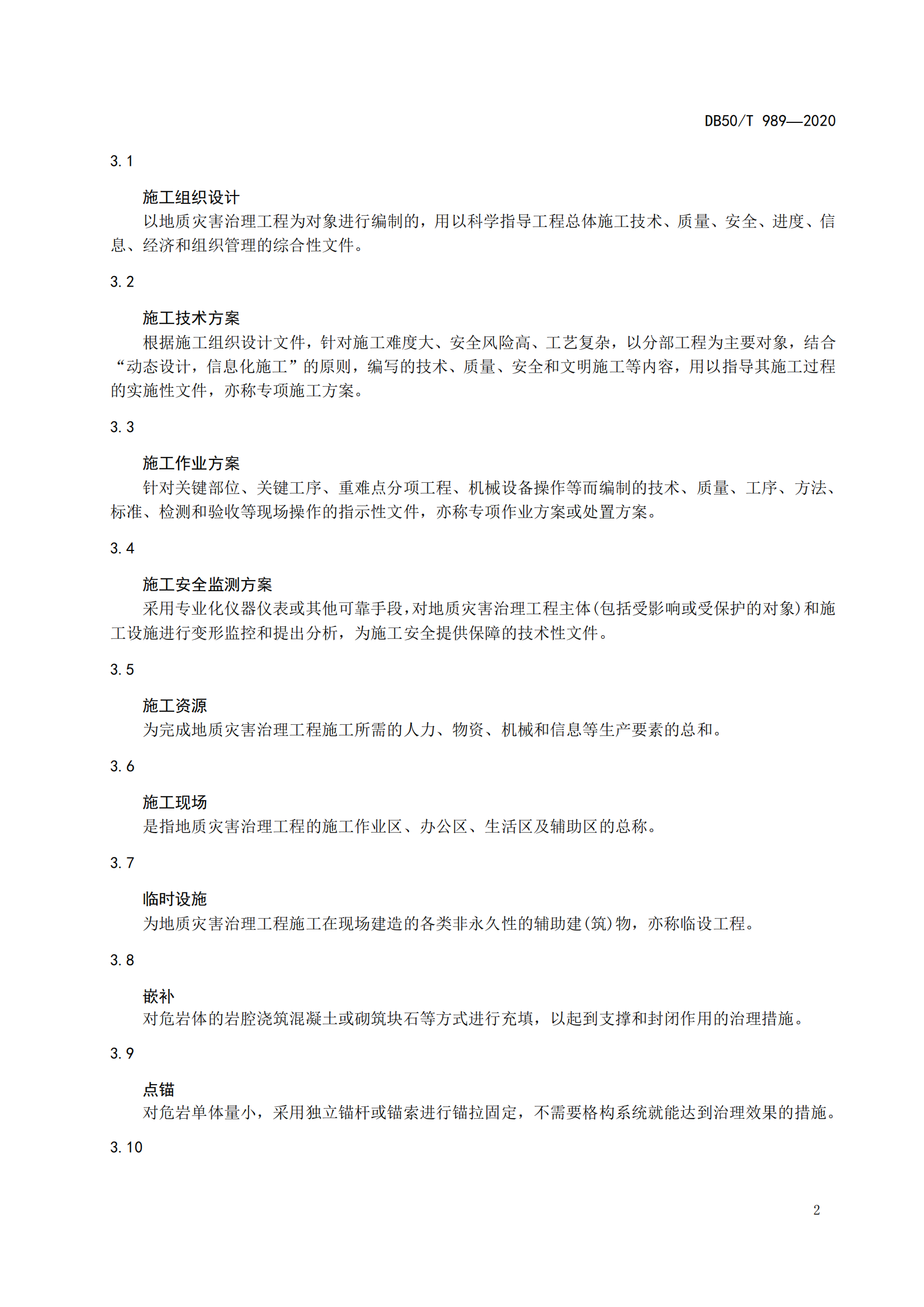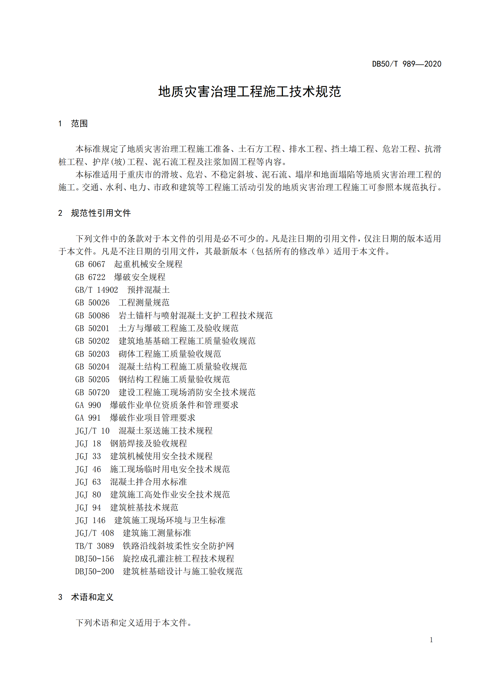 地质灾害治理工程施工技术规范