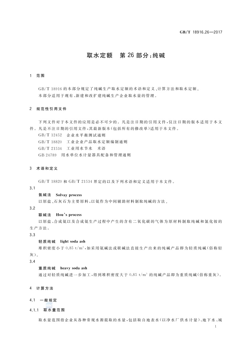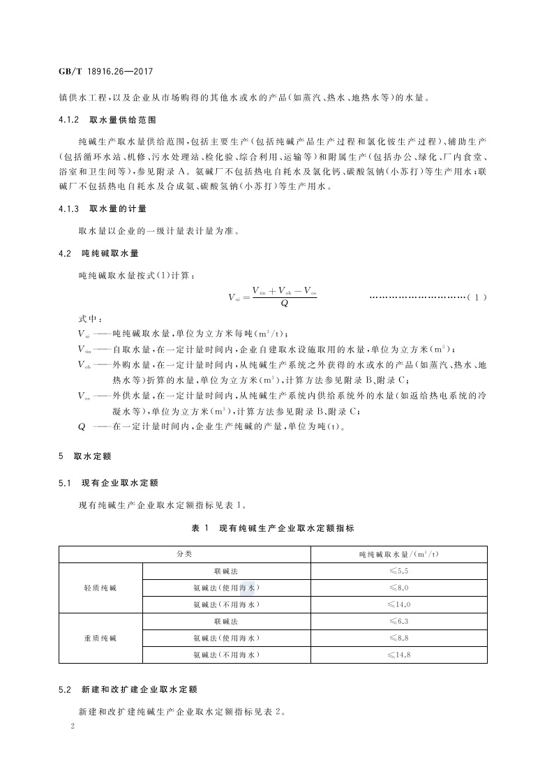 《取水定额 第26部分:纯碱》(GB/T 18916.26-2017)