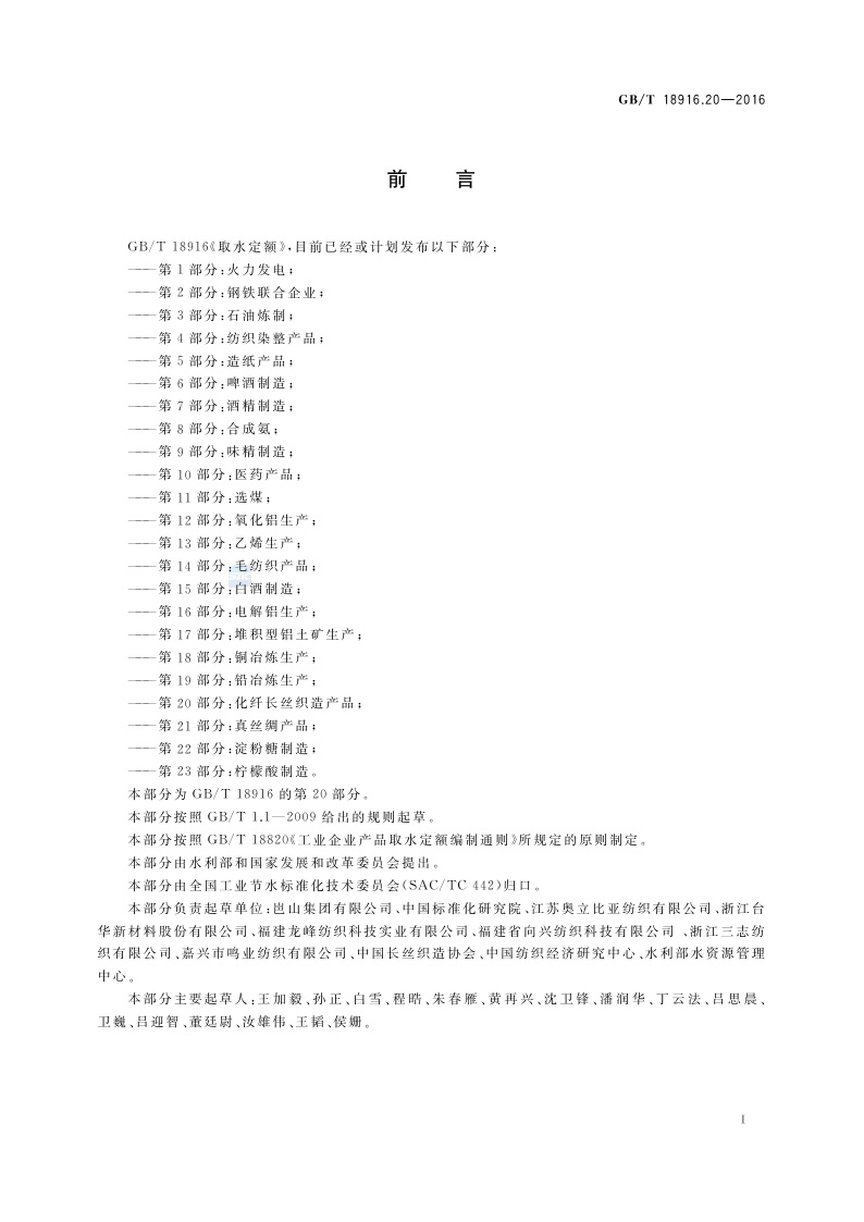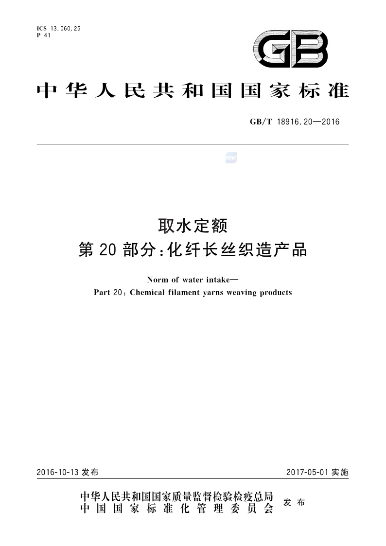 《取水定额 第20部分:化纤长丝织造产品》(GB/T 18916.20-2016)