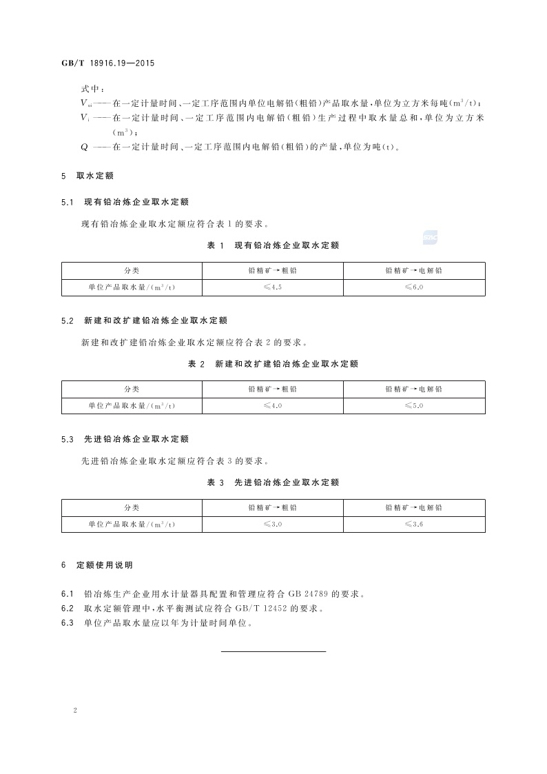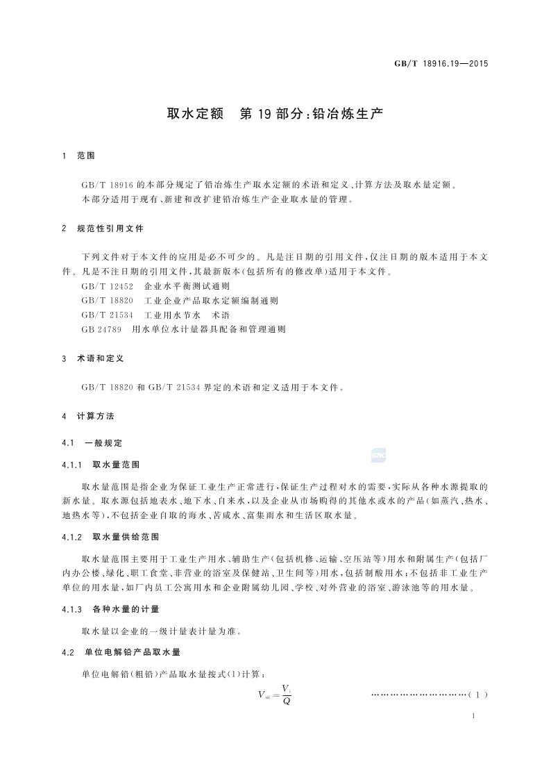 《取水定额 第19部分:铅冶炼生产》(GB/T 18916.19-2015)