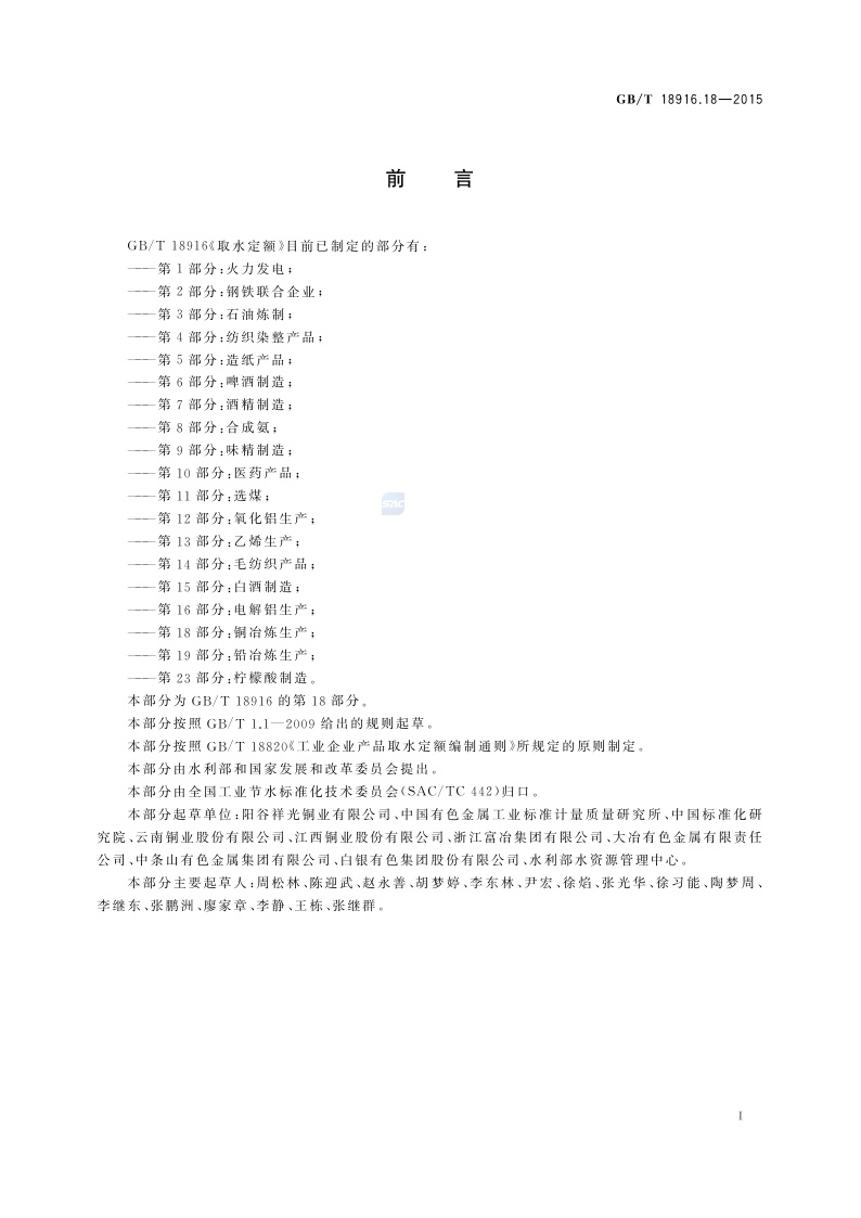 《取水定额 第18部分:铜冶炼生产》(GB/T 18916.18-2015)
