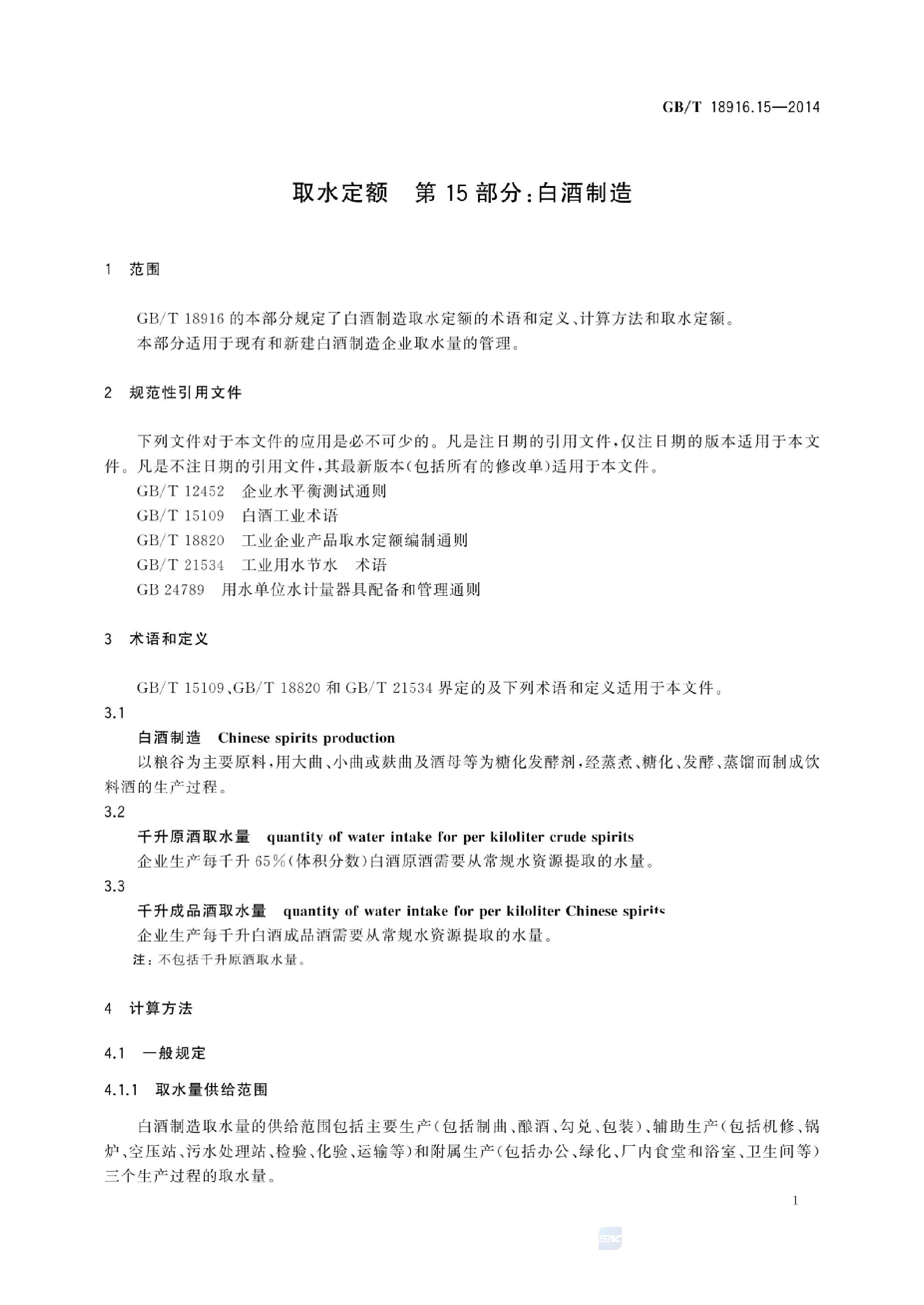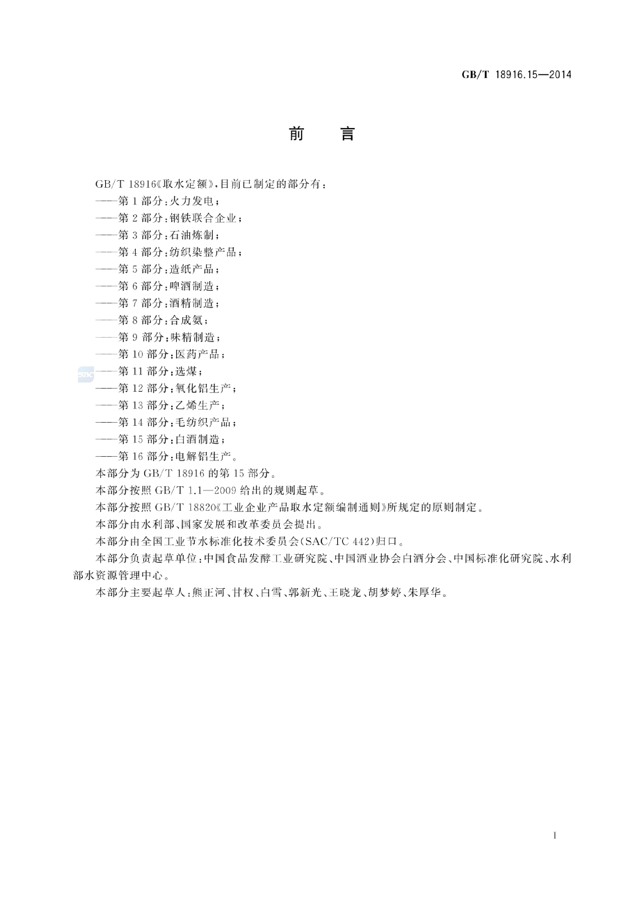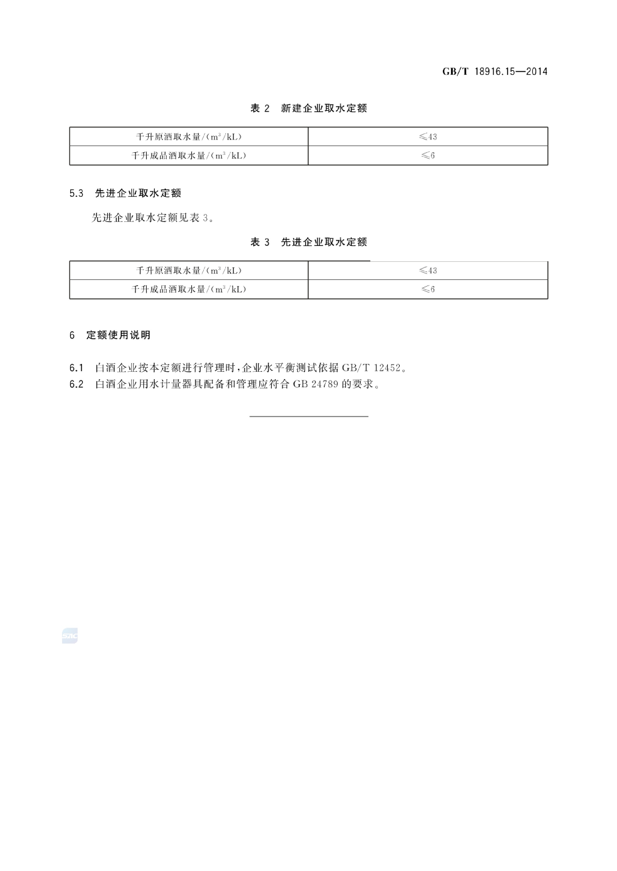 《取水定额 第15部分:白酒制造》(GB/T 18916.15-2014)