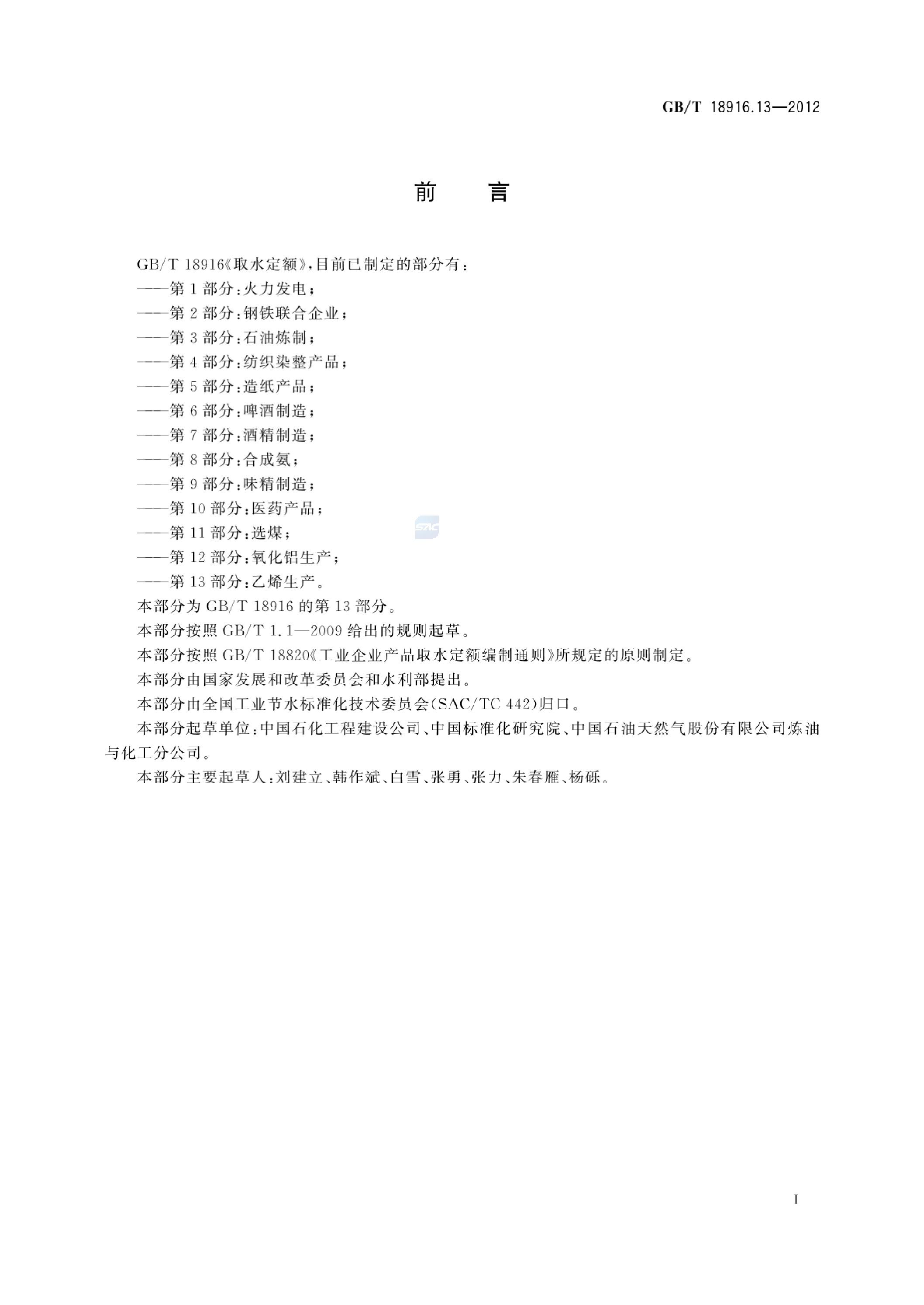《取水定额 第13部分:乙烯生产》(GB/T 18916.13—2012)