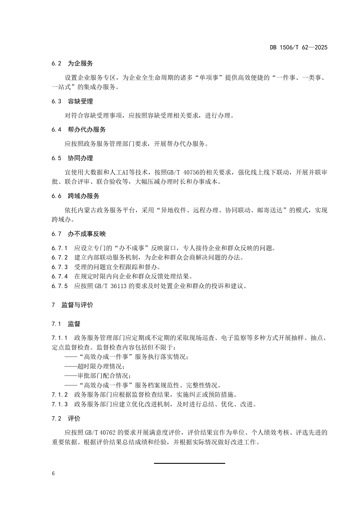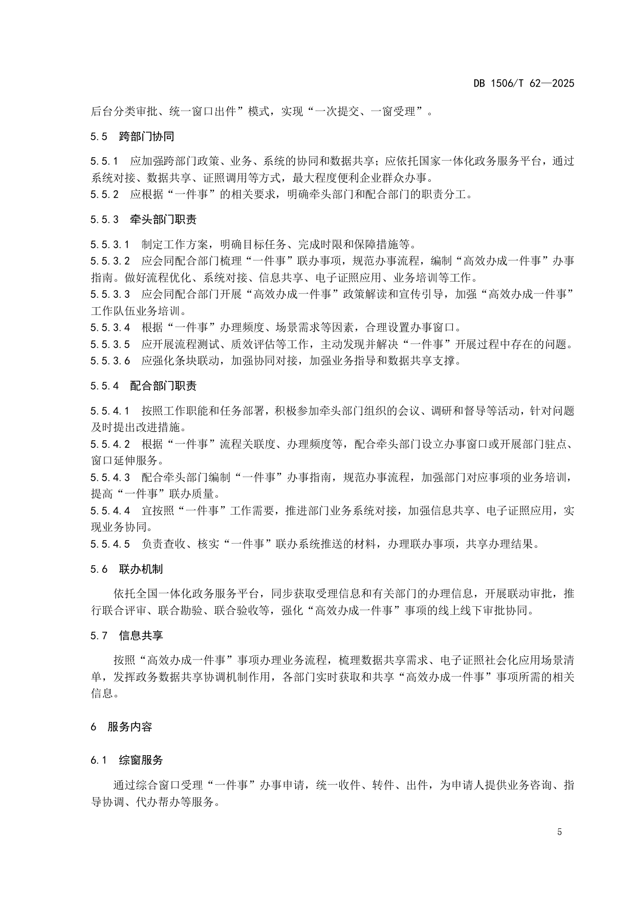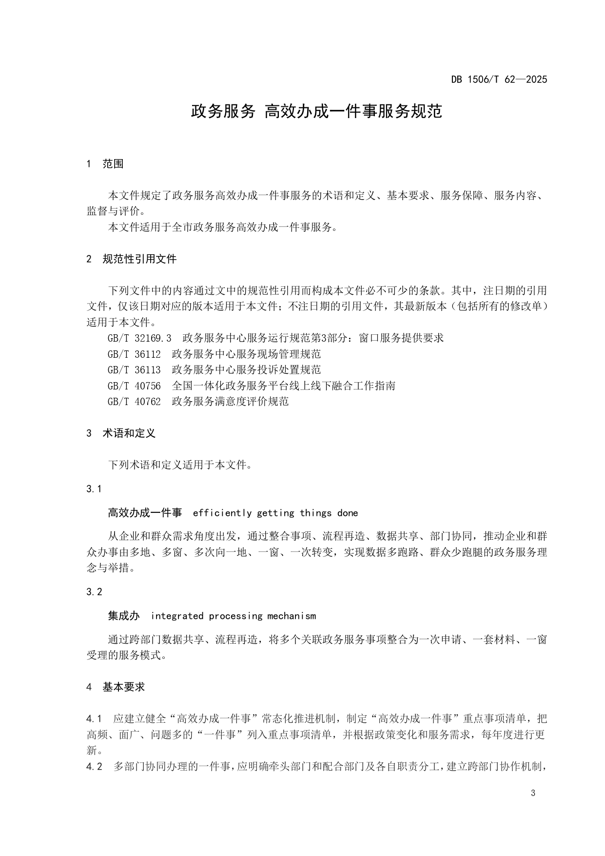 政务服务高效办成一件事服务规范DB1506/T 62—2025