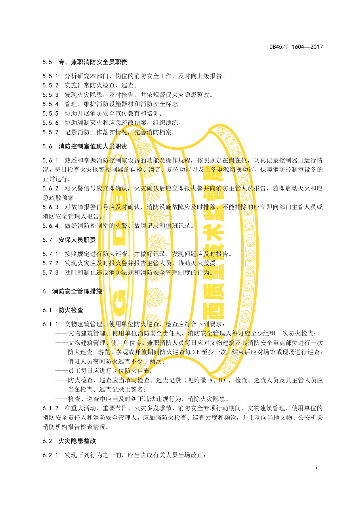 文物建筑消防安全管理规范DB45/T 1604-2017