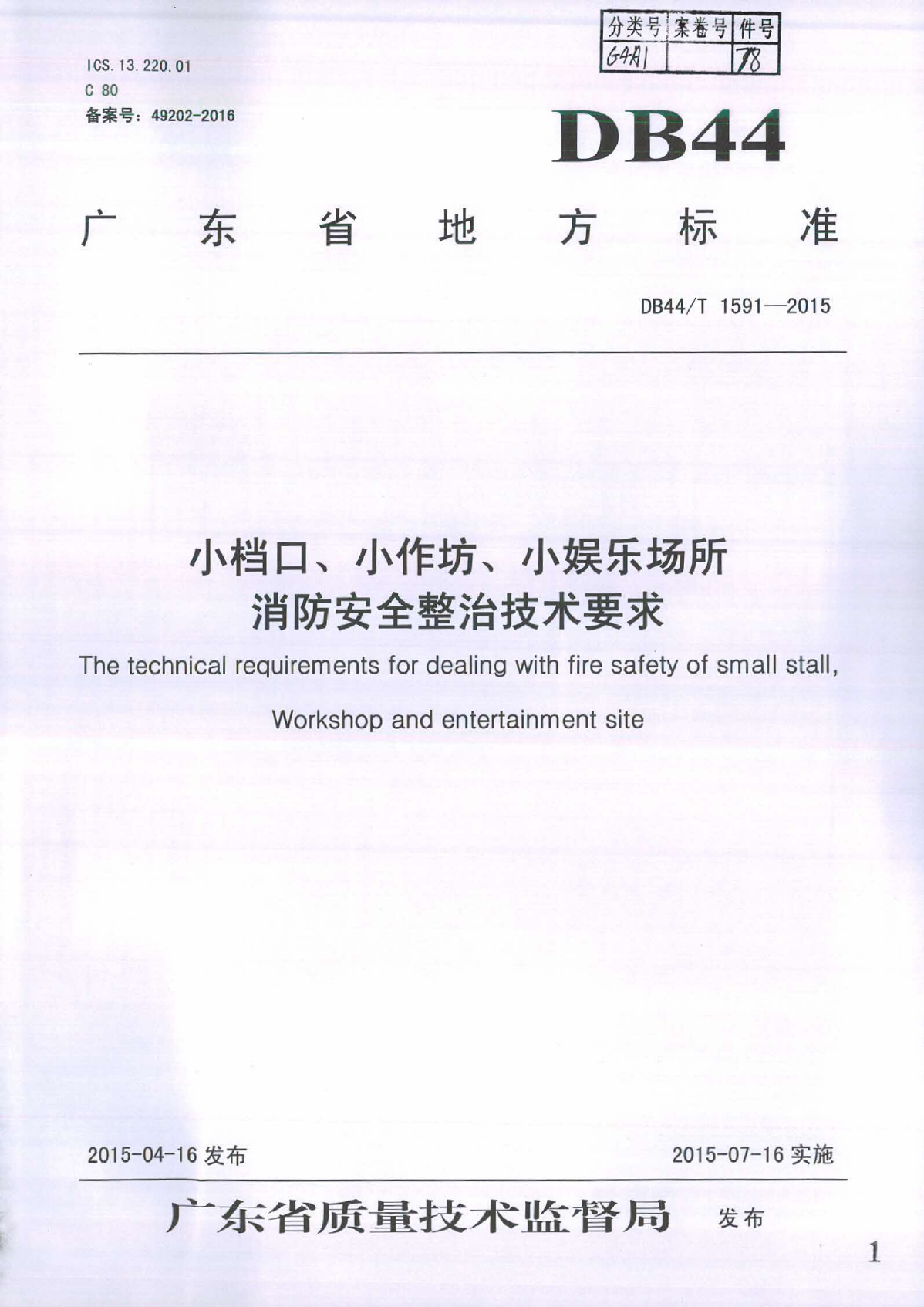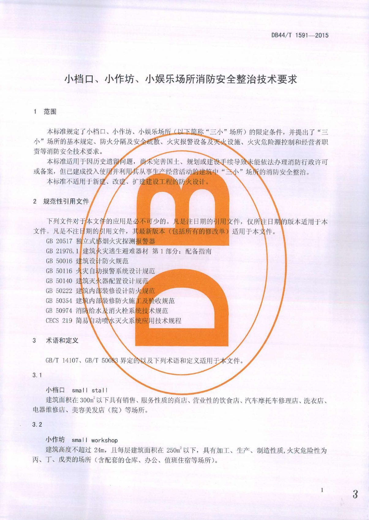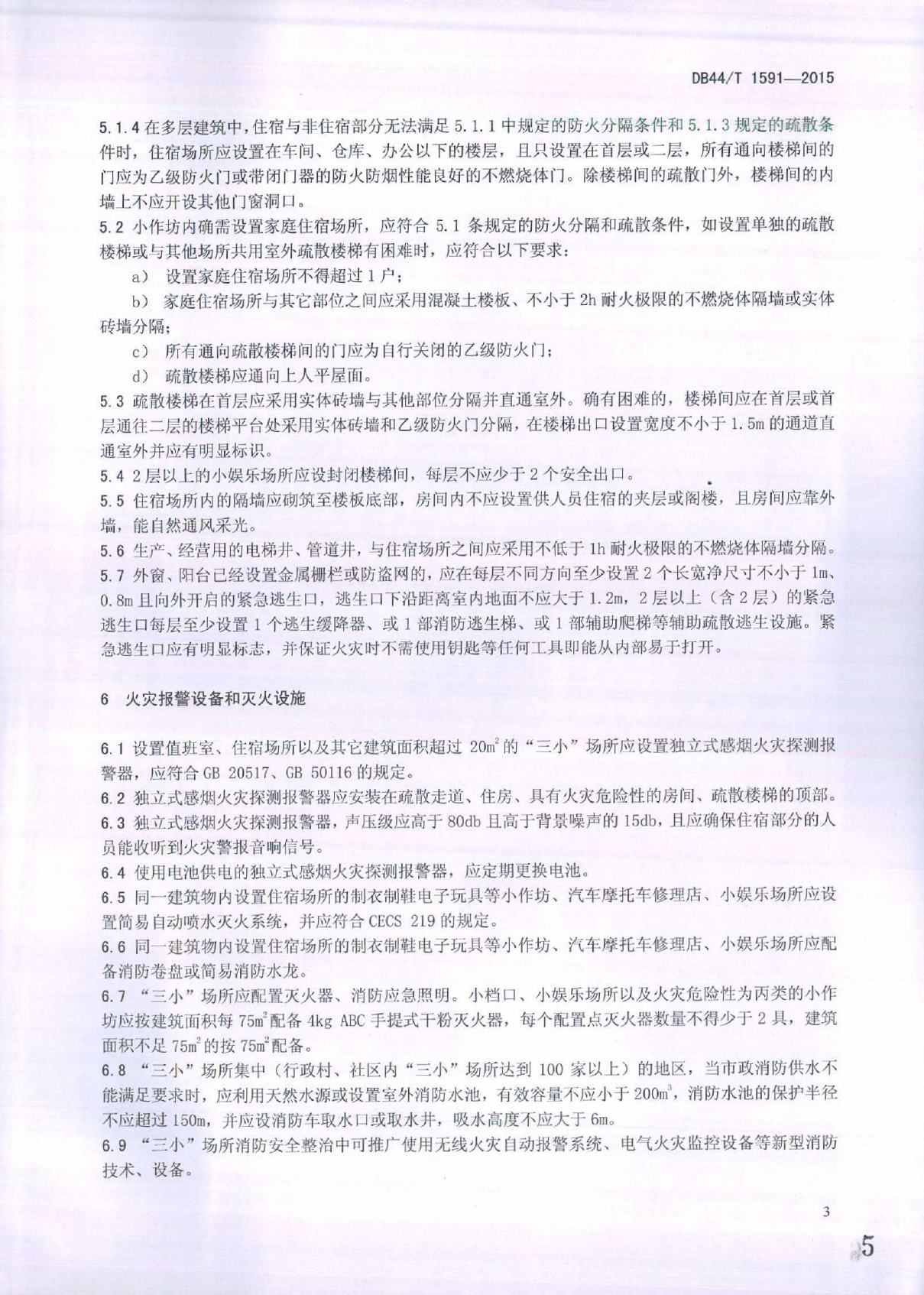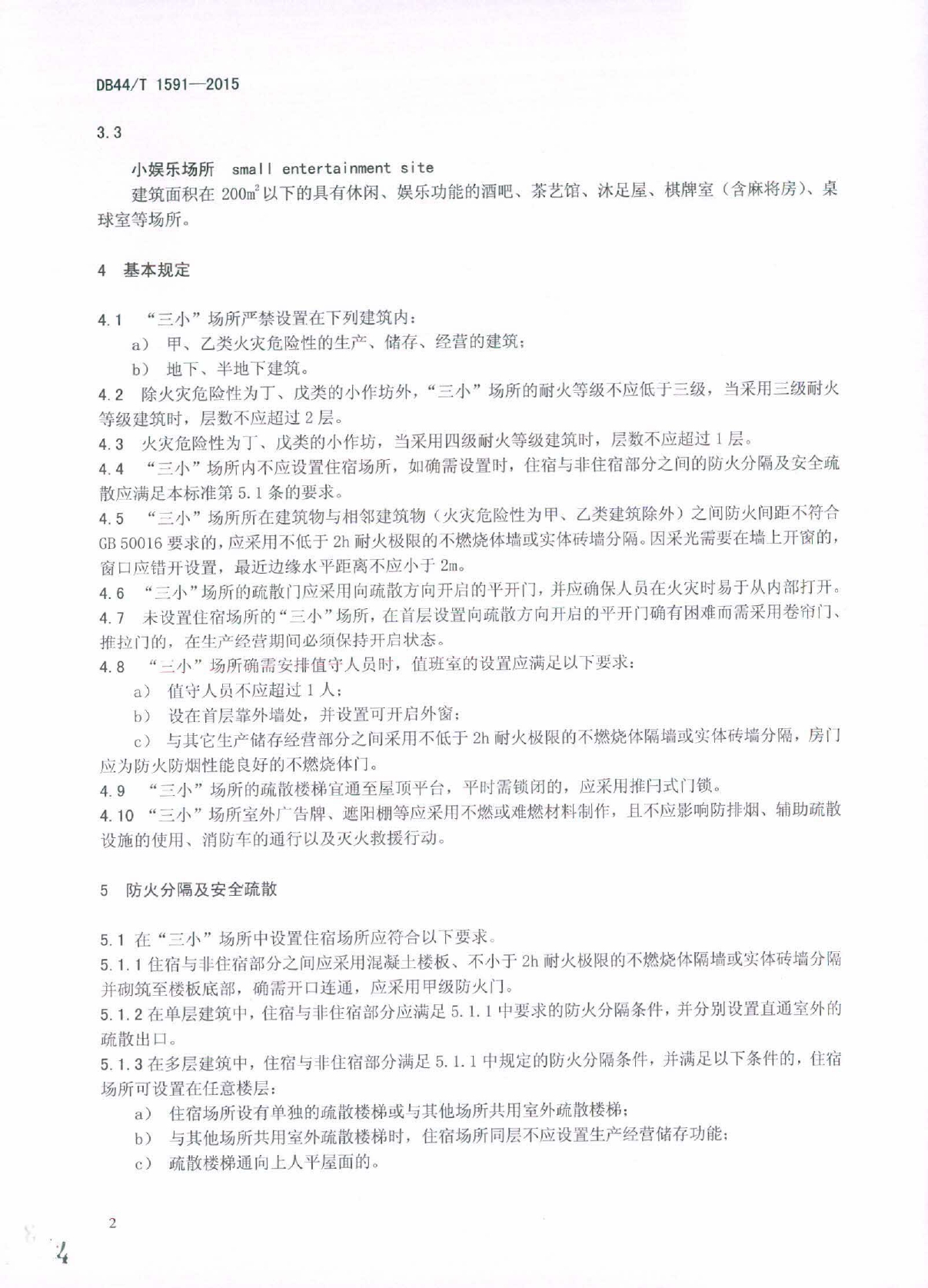 小档口、小作坊、小娱乐场所消防安全整治技术要求DB44/T 1591-2015