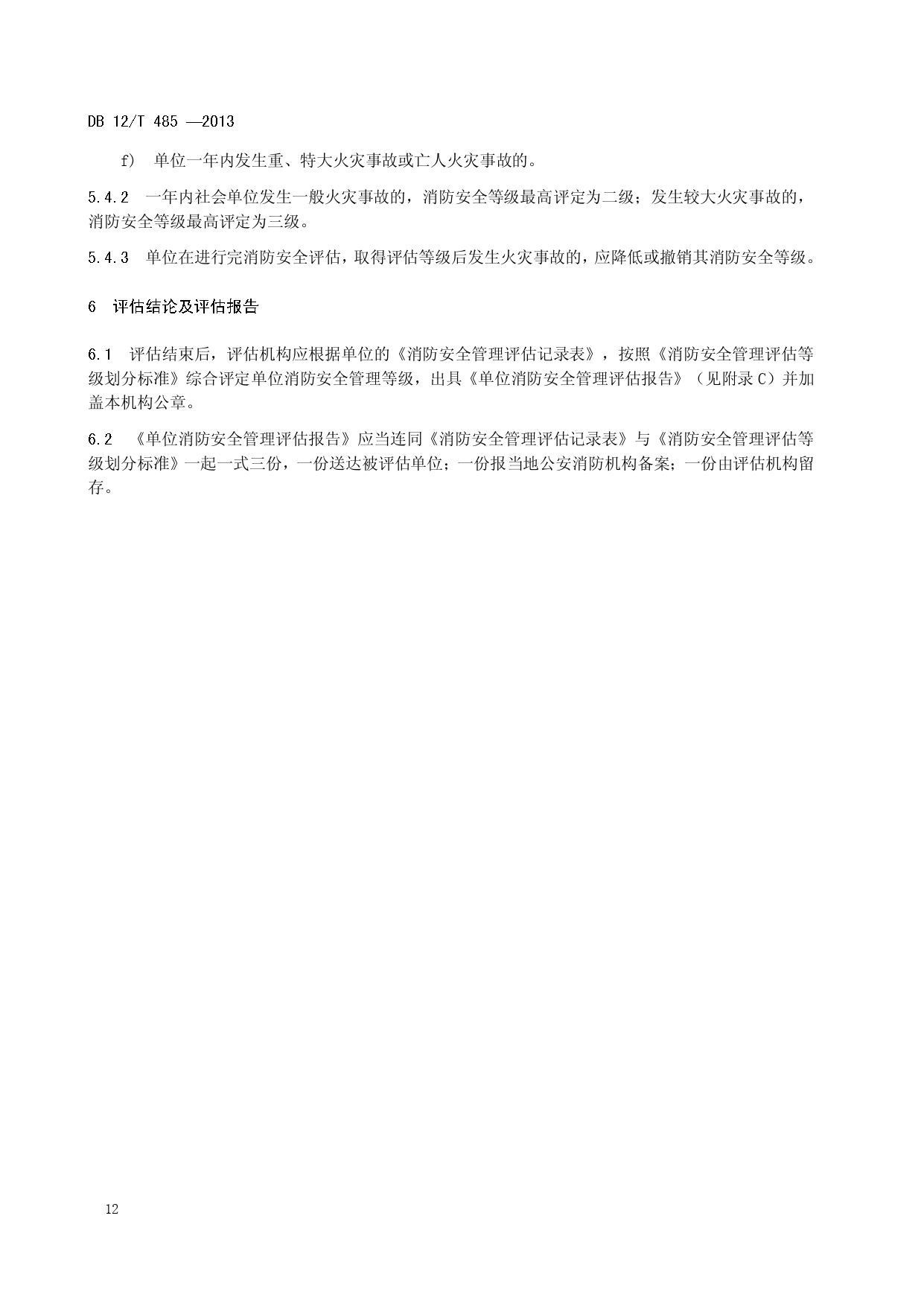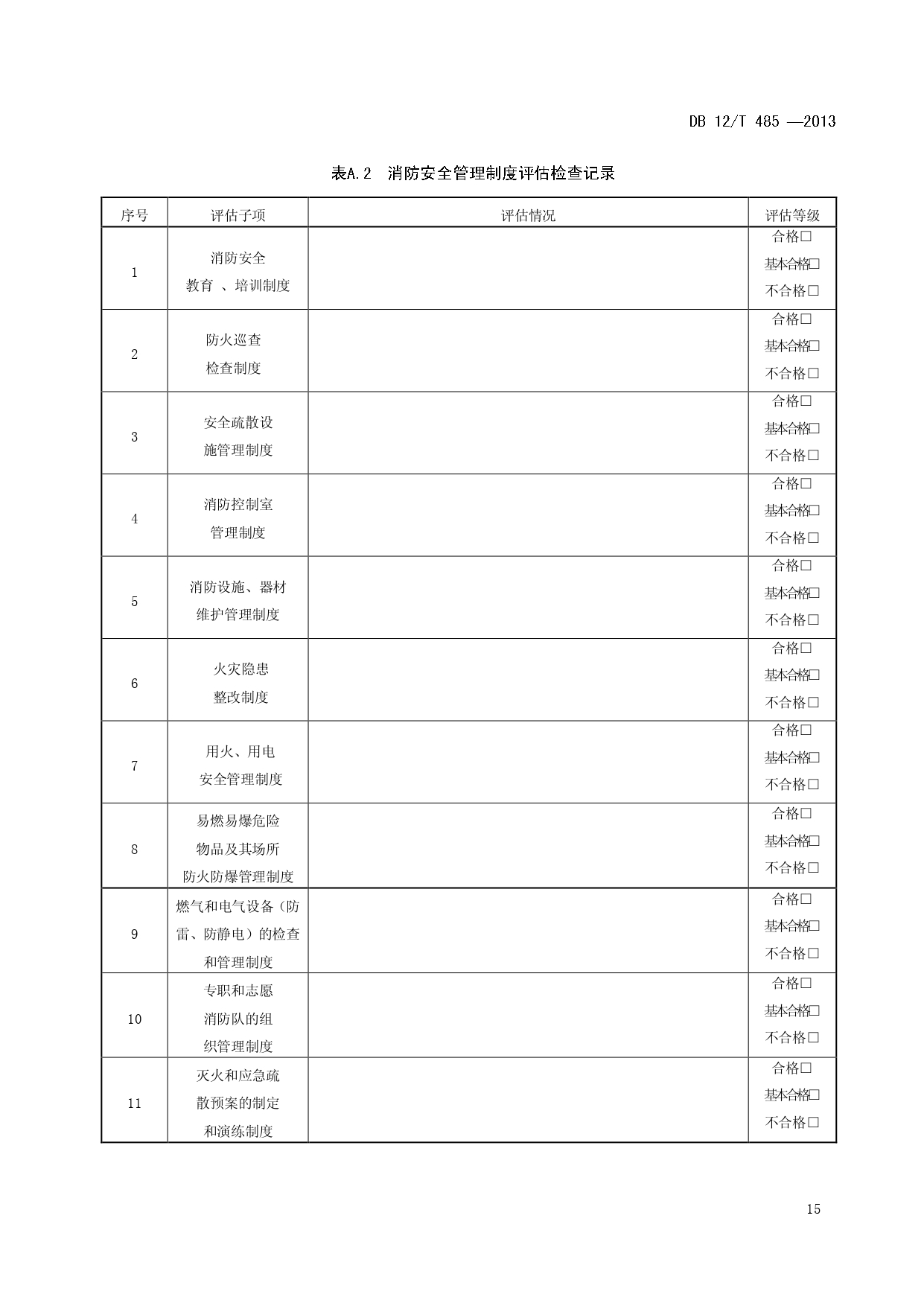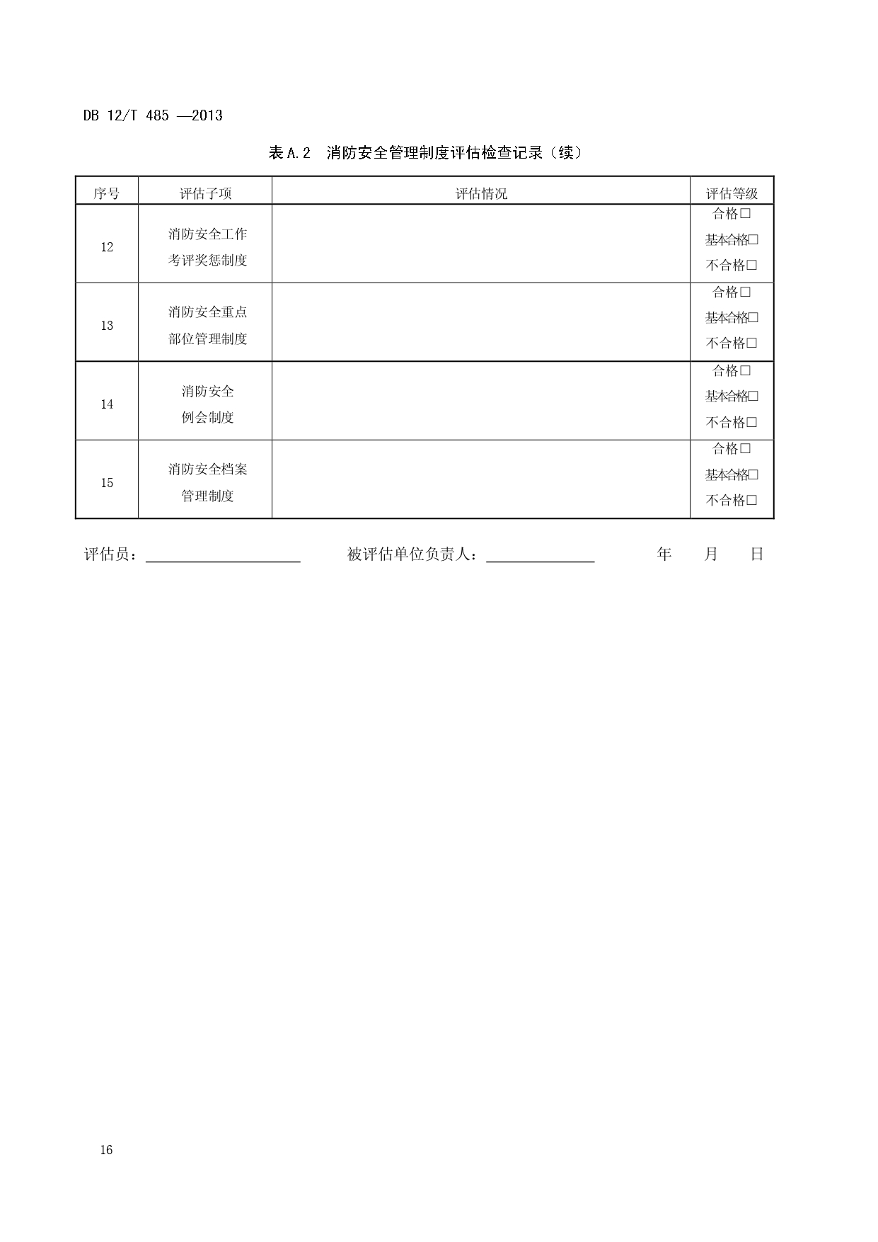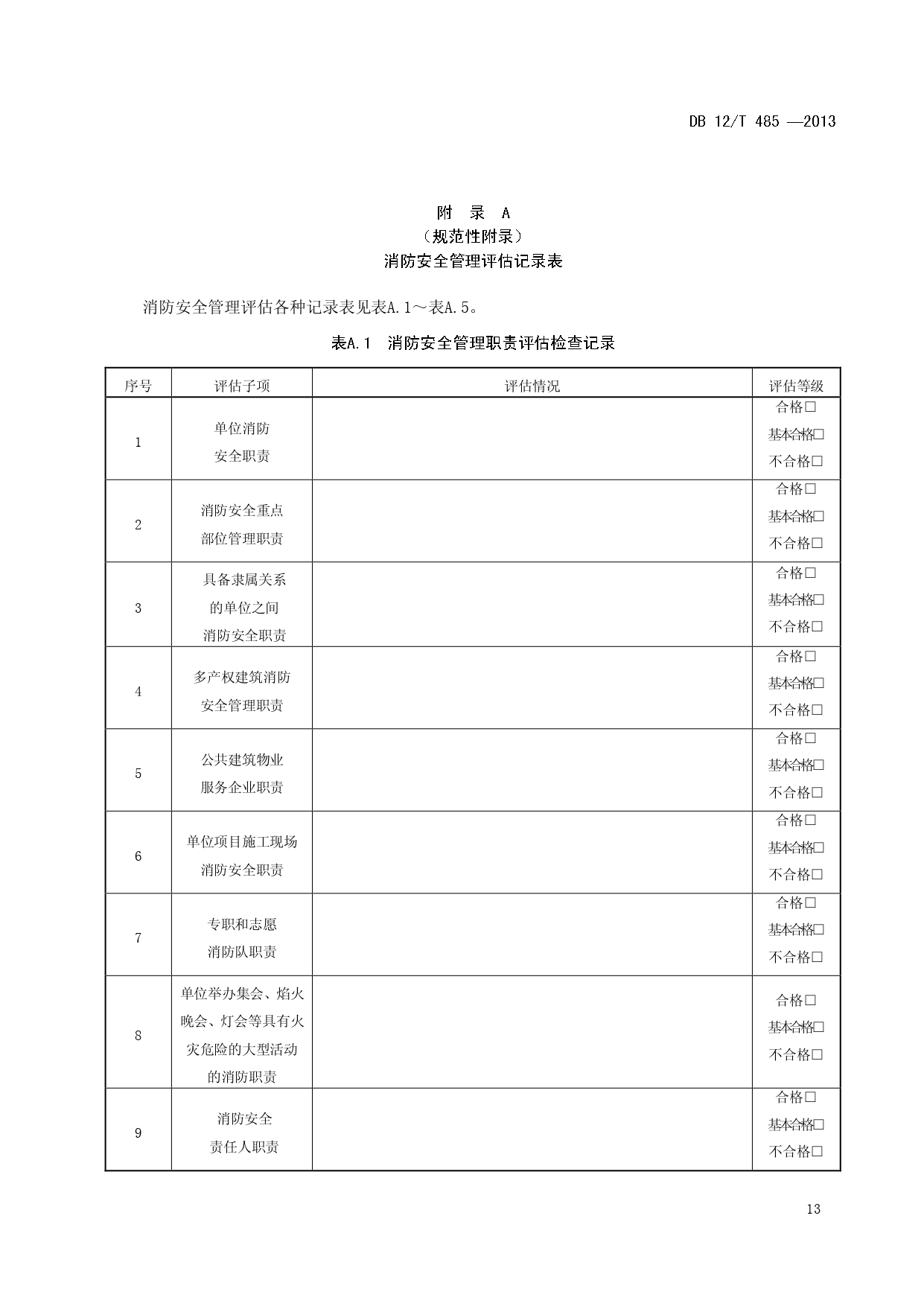 单位消防安全管理评估DB12/T 485-2013