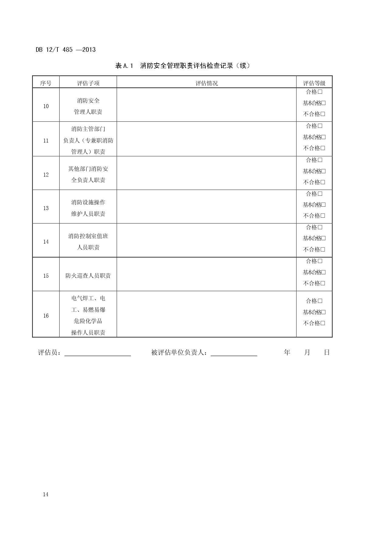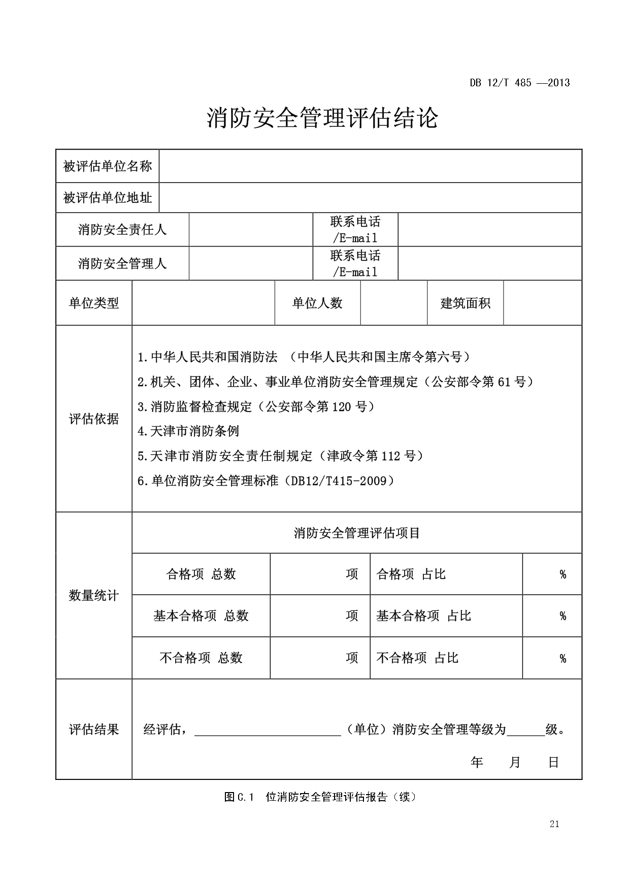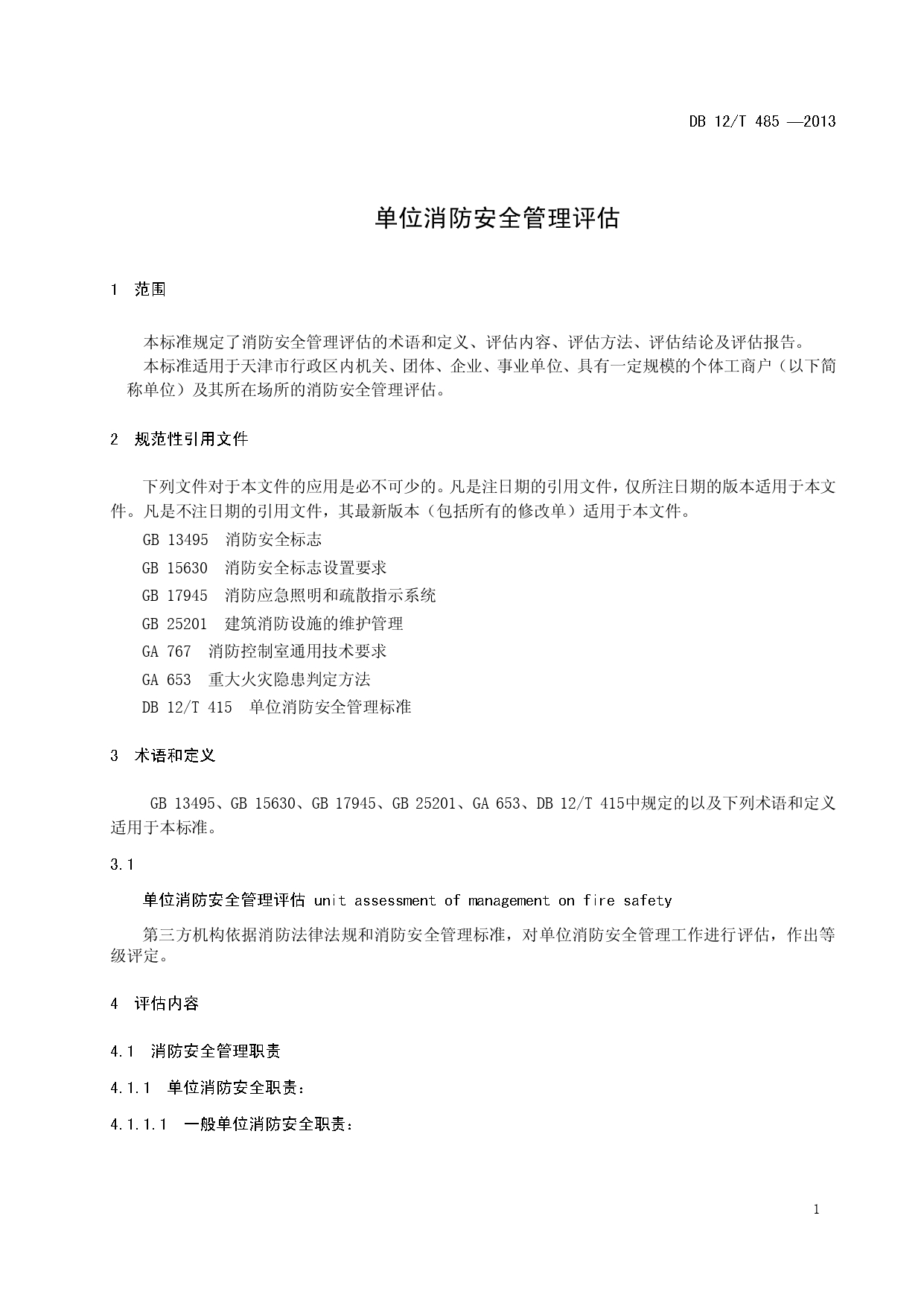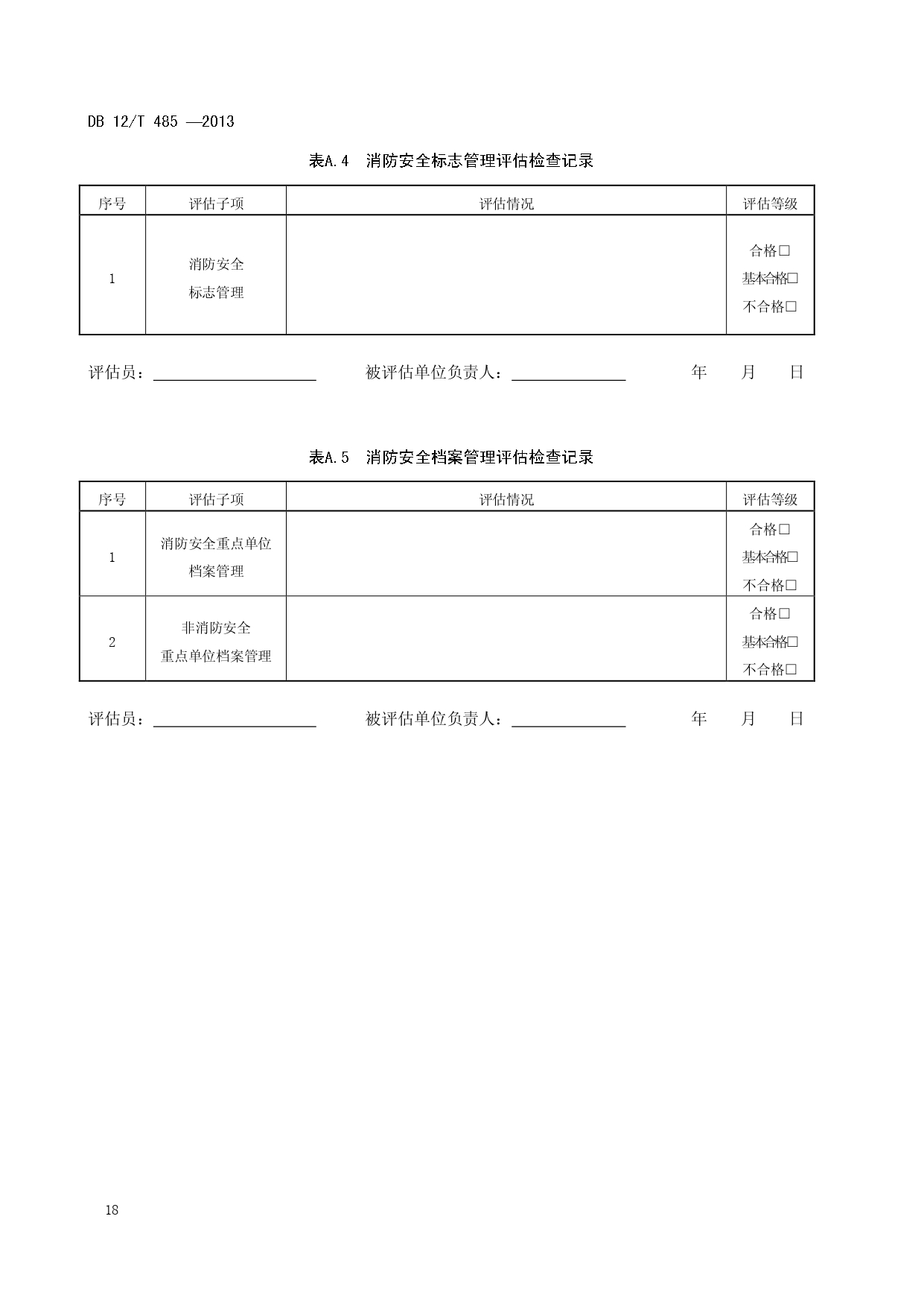 单位消防安全管理评估DB12/T 485-2013