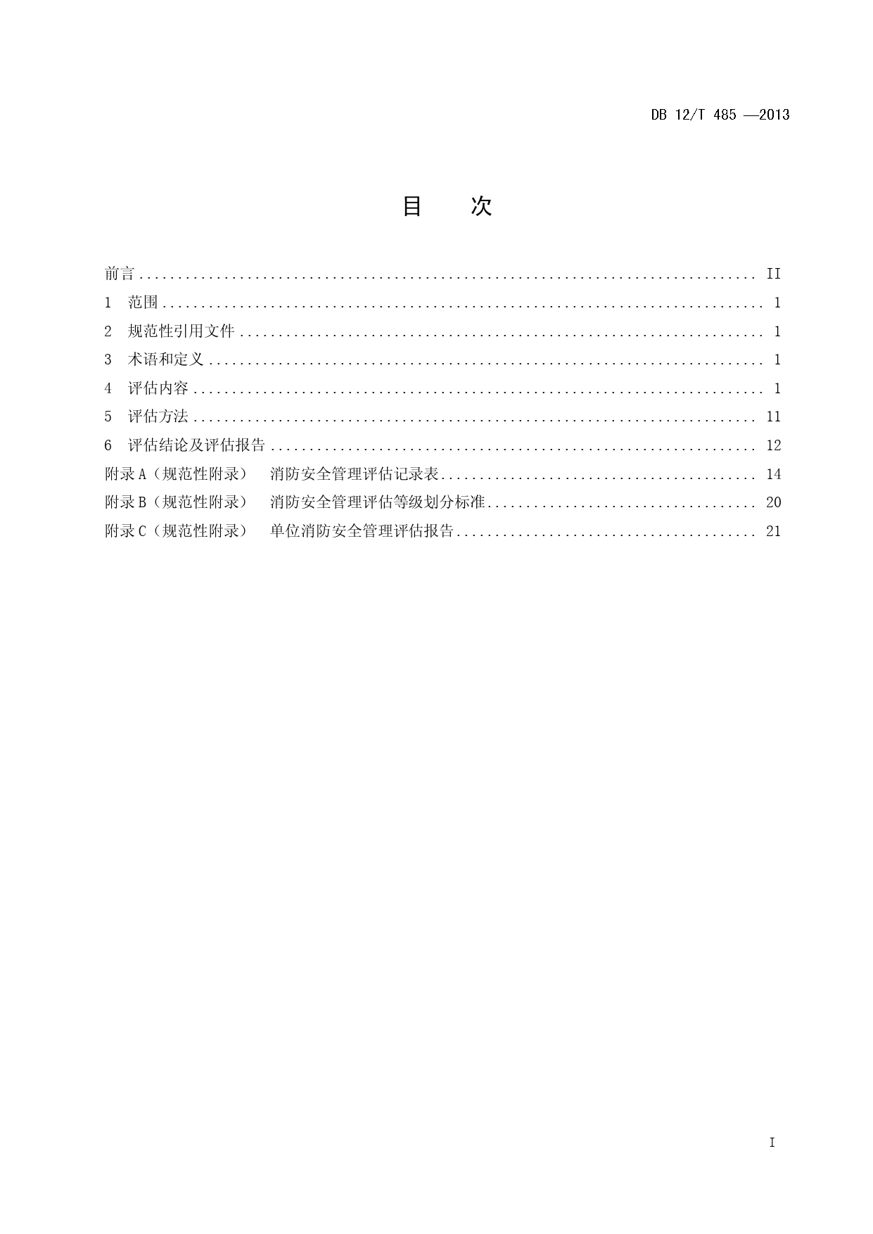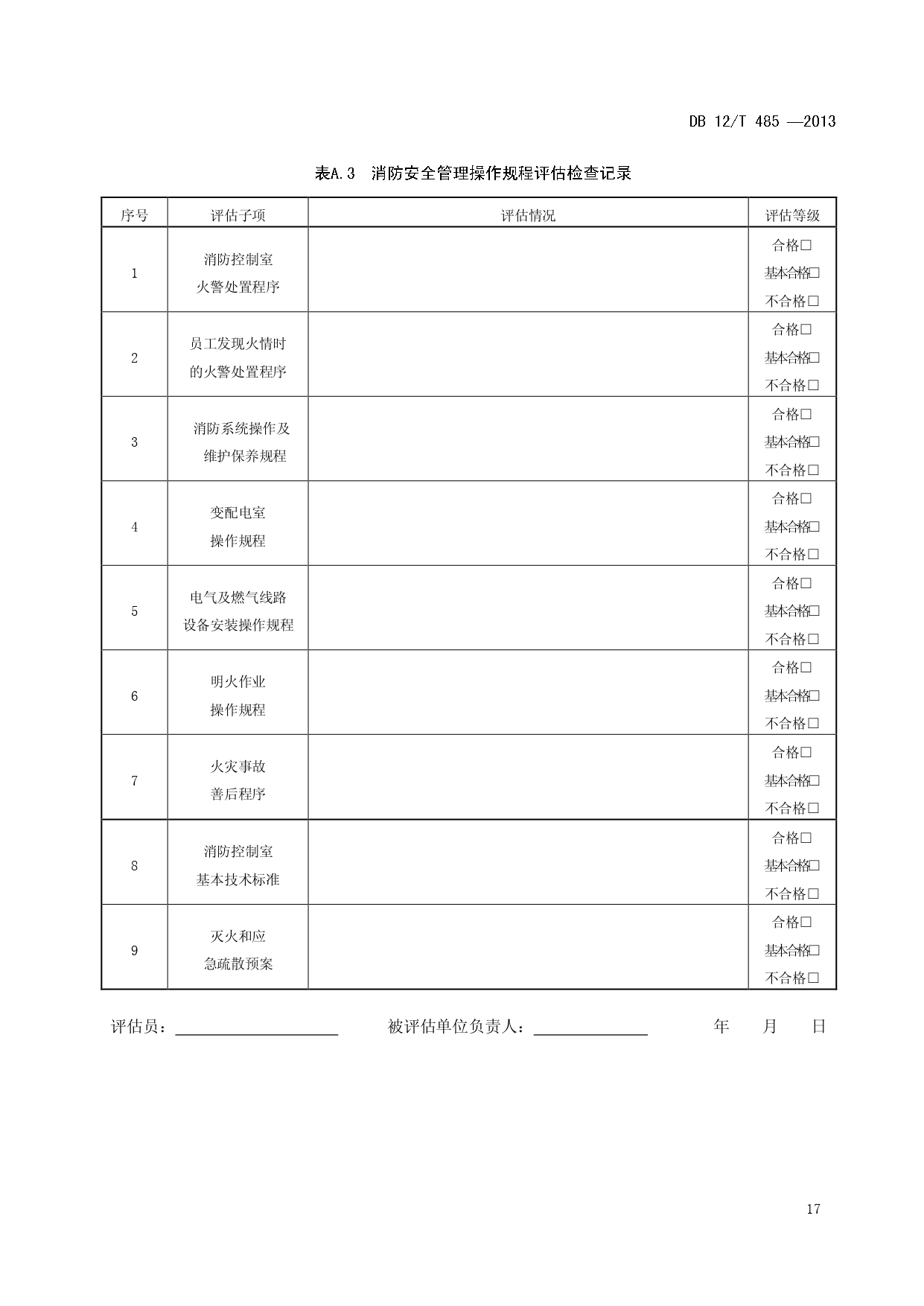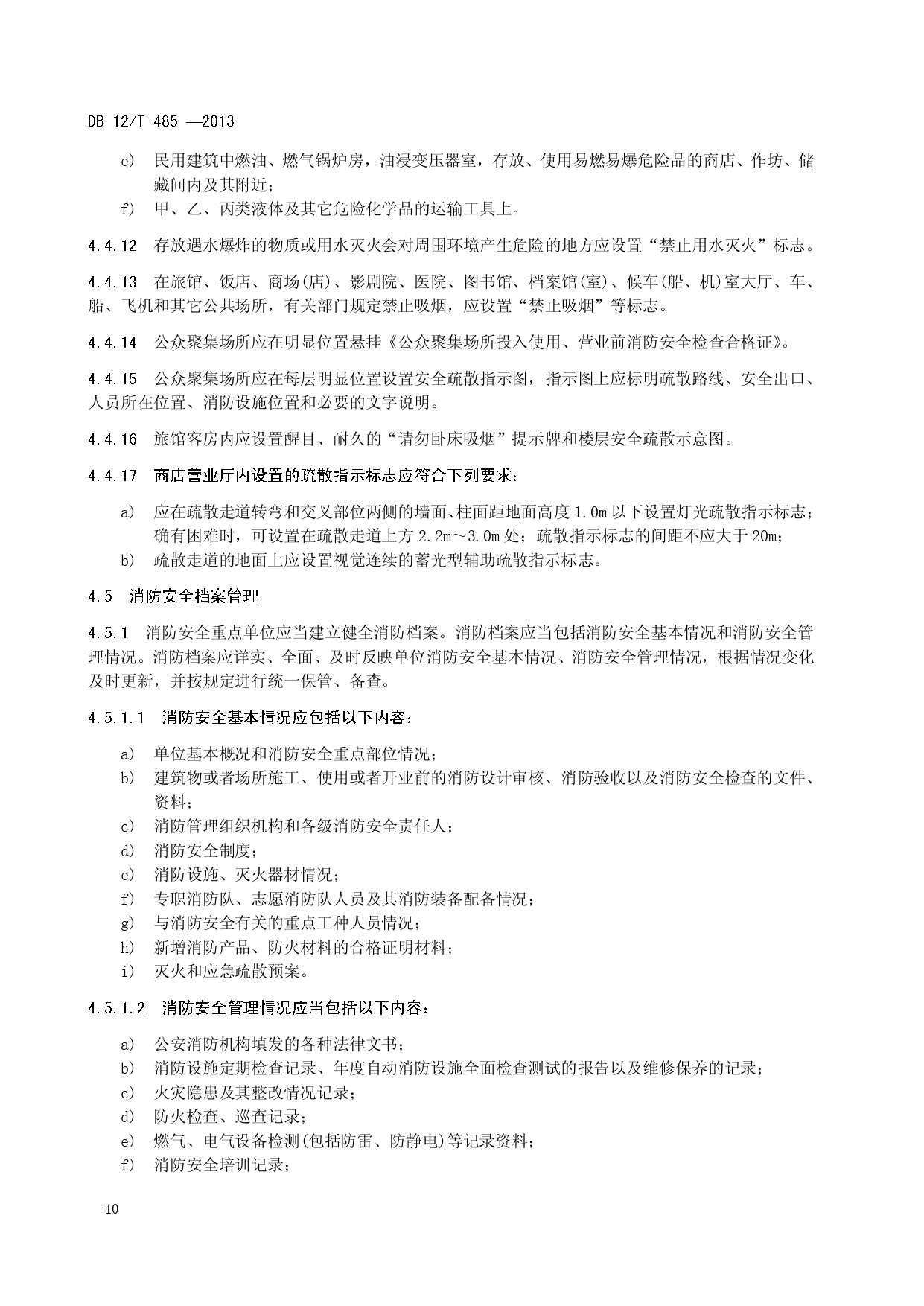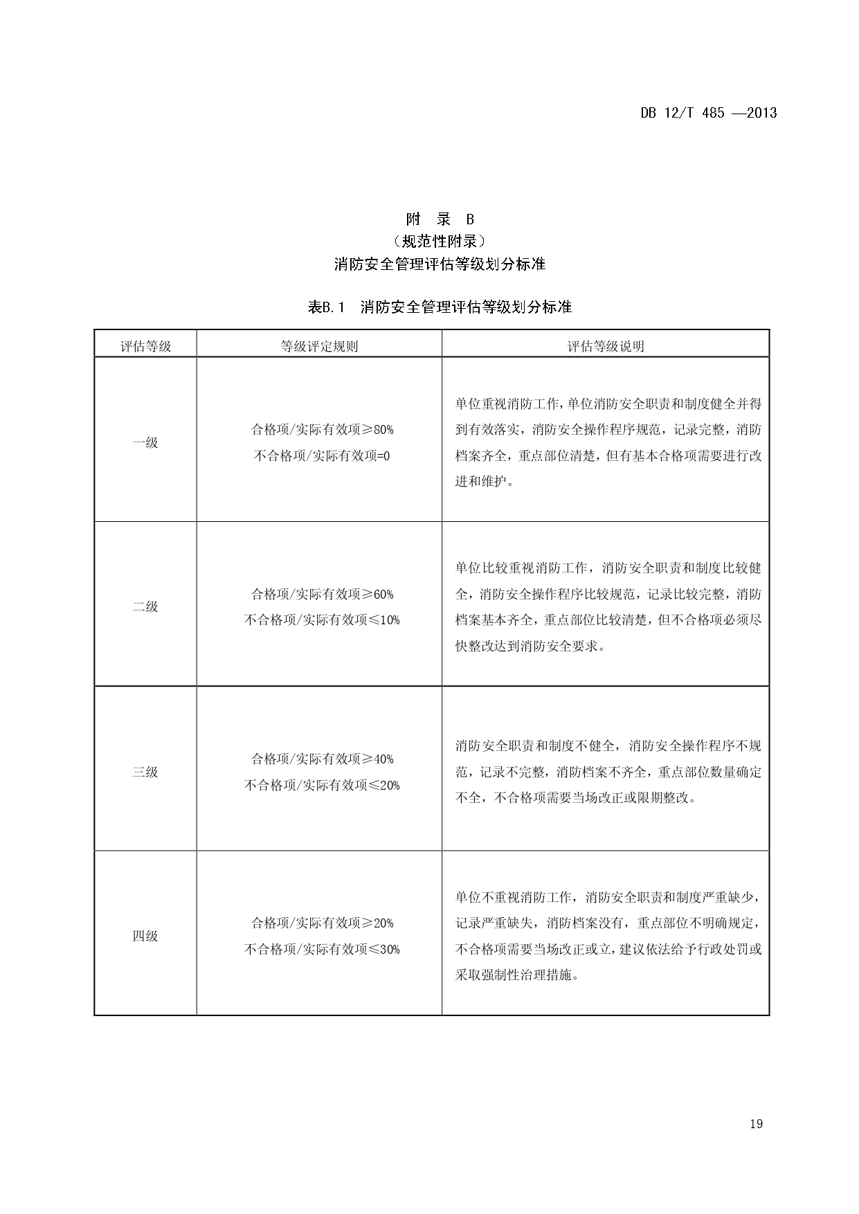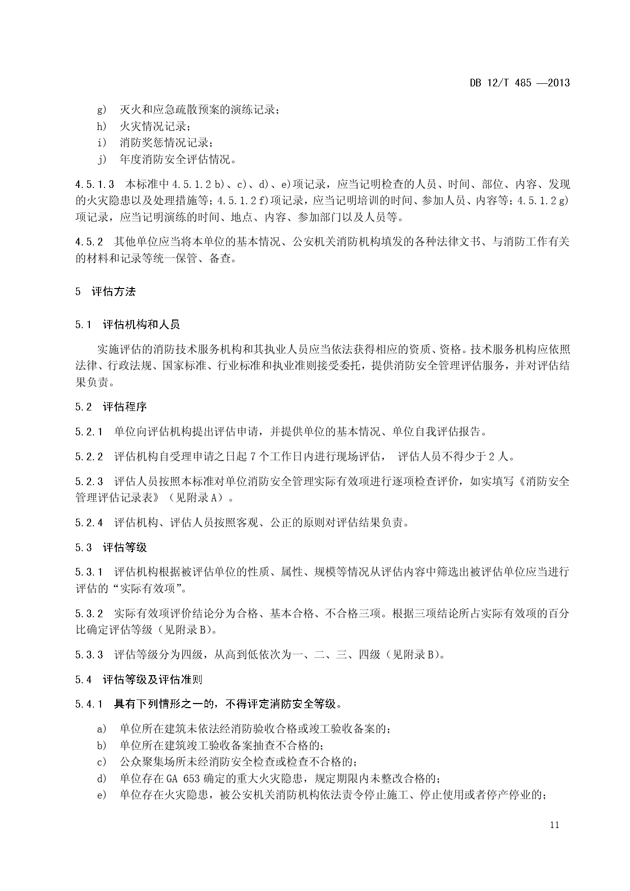 单位消防安全管理评估DB12/T 485-2013