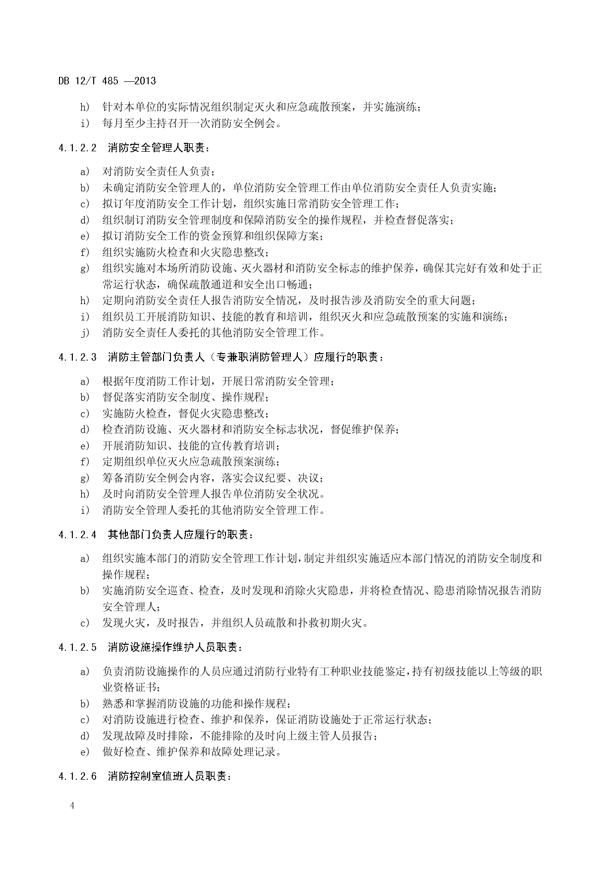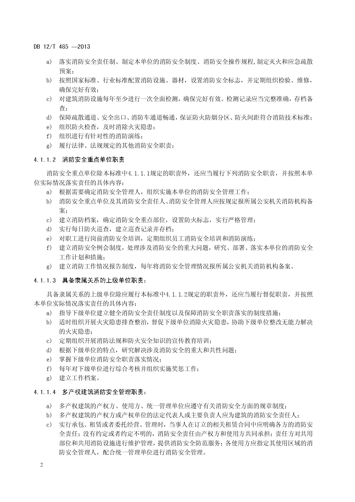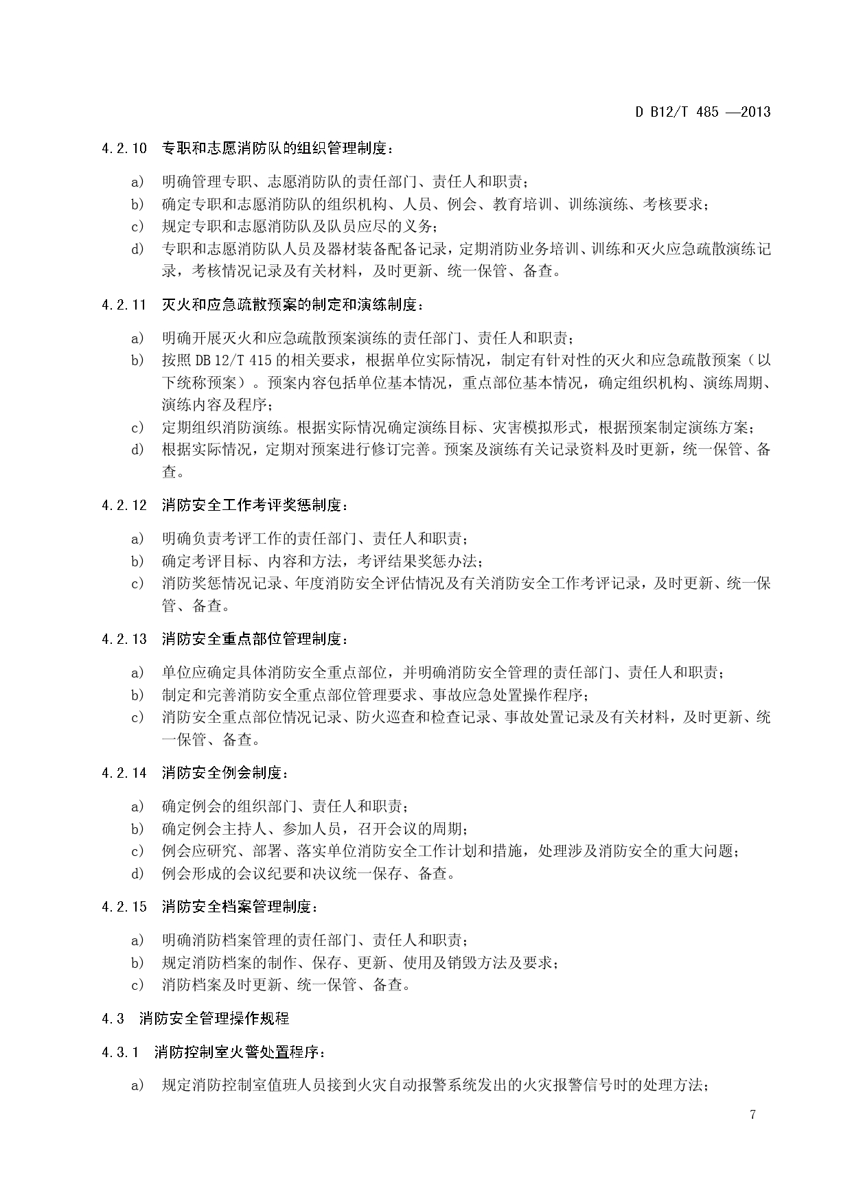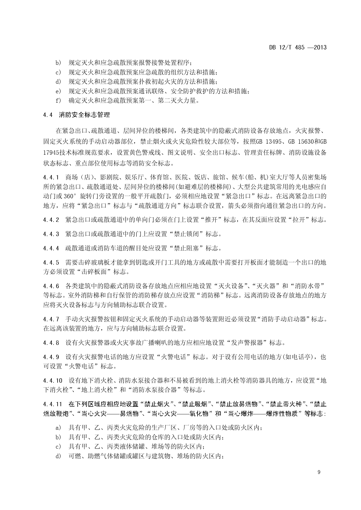 单位消防安全管理评估DB12/T 485-2013