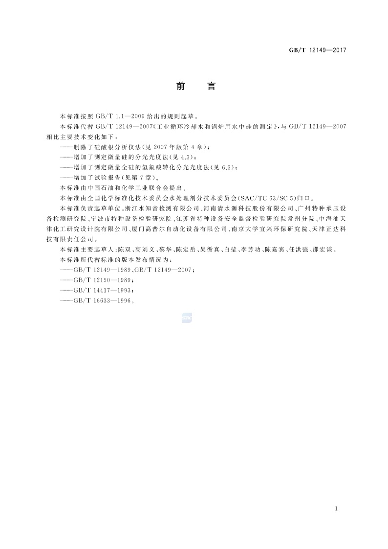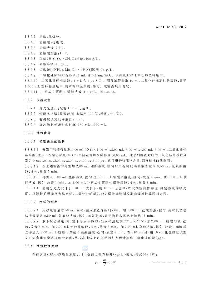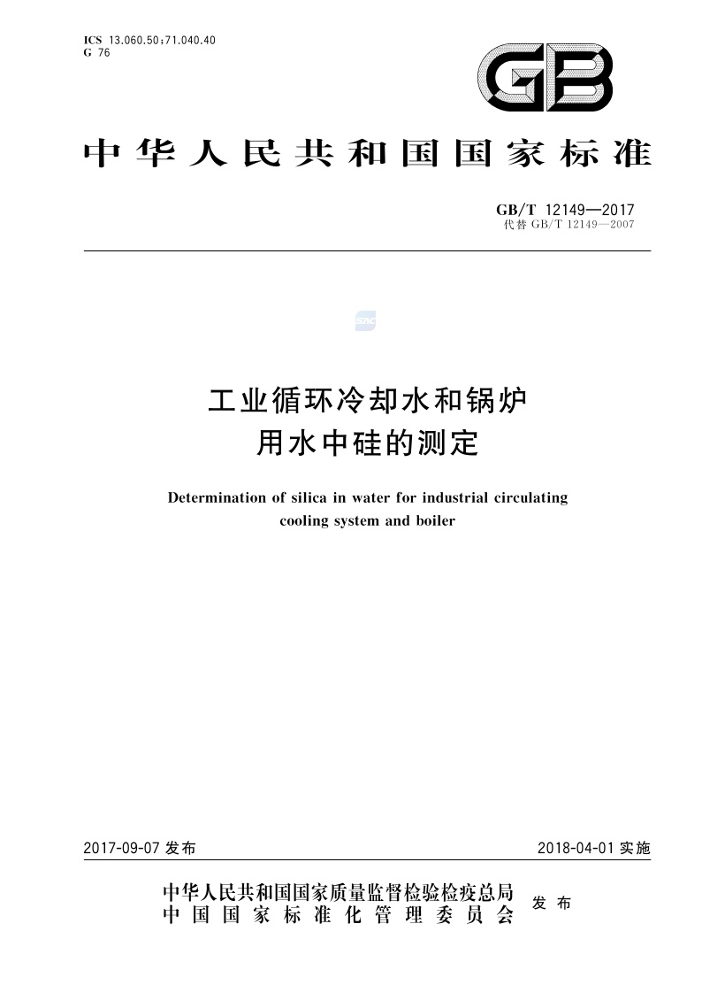 《工业循环冷却水和锅炉用水中硅的测定》(GB/T 12149-2017)