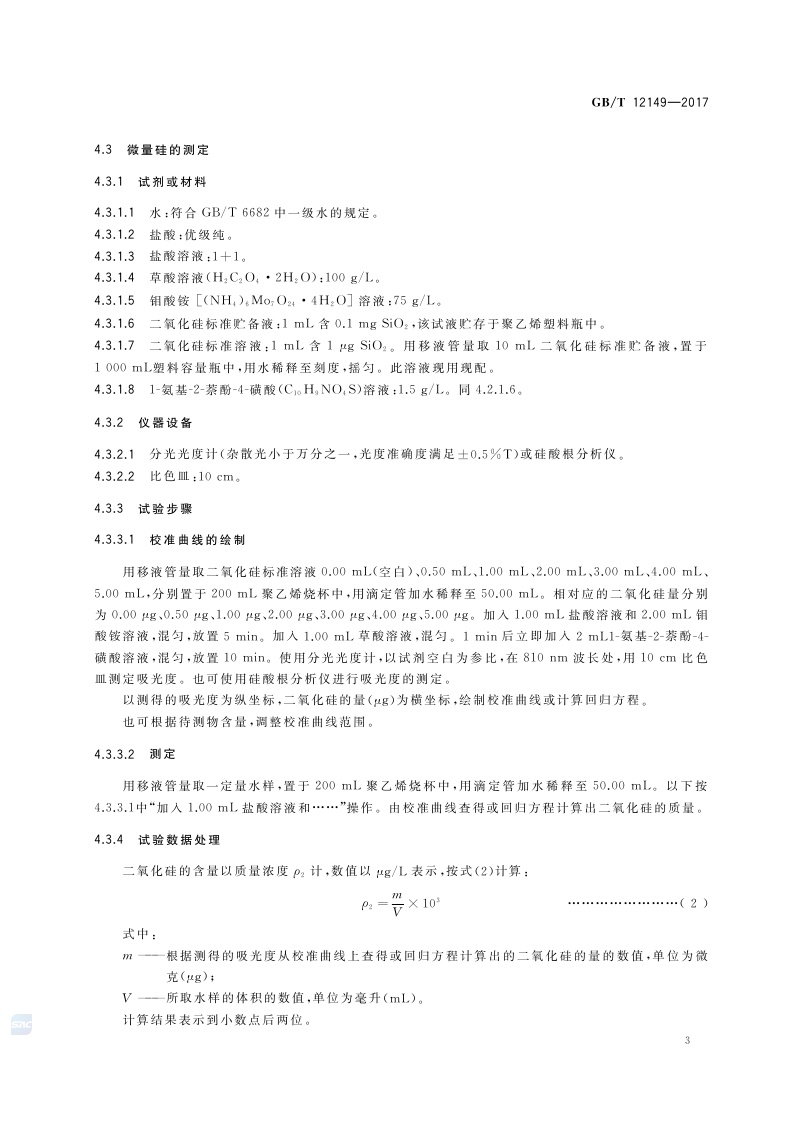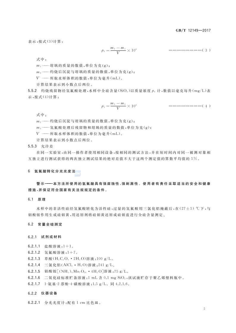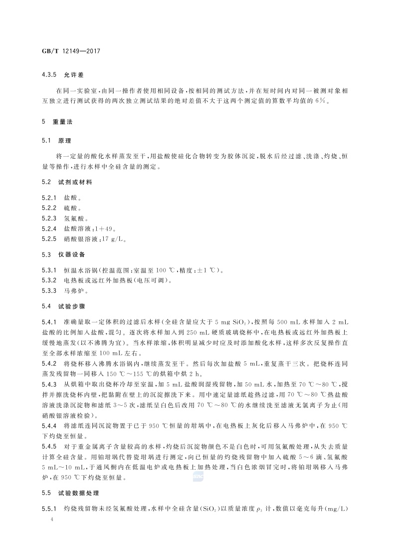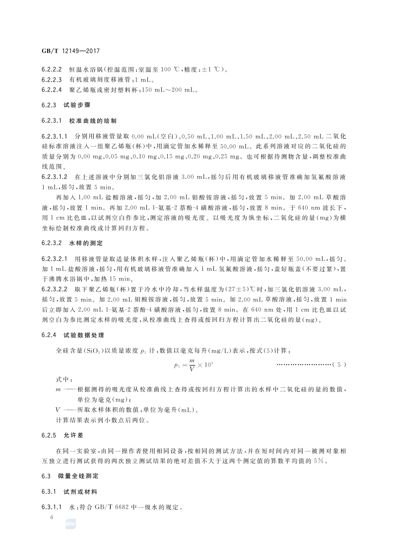 《工业循环冷却水和锅炉用水中硅的测定》(GB/T 12149-2017)