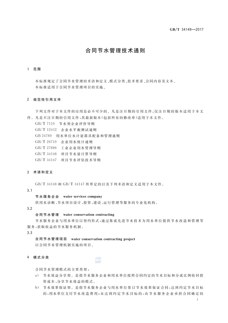 《合同节水管理技术通则》(GB/T 34149-2017)