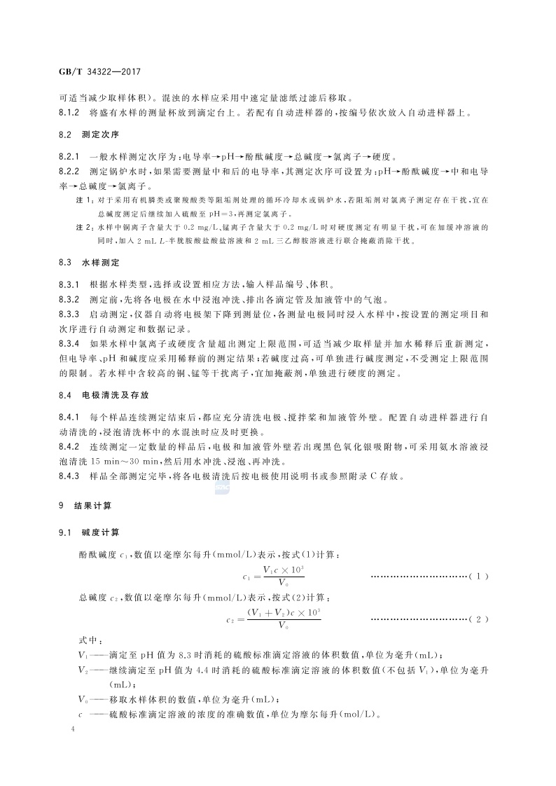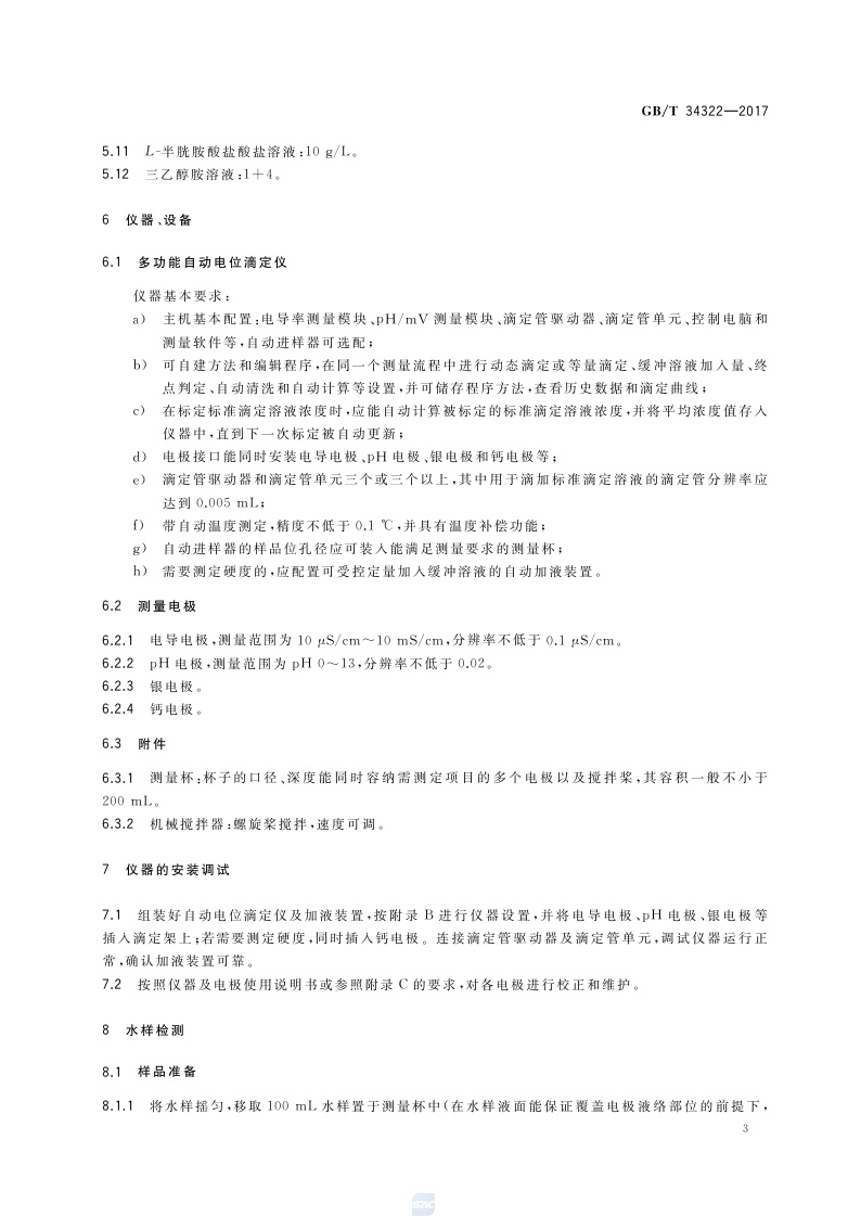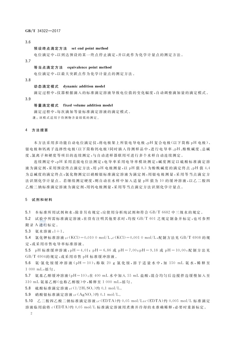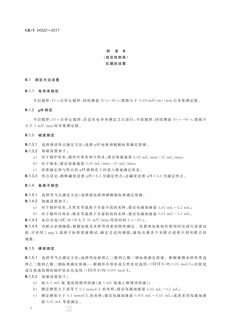 《锅炉用水和冷却水水质自动连续测定 电位滴定法》(GB/T 34322-2017)