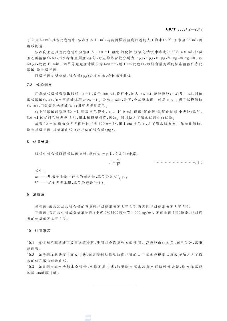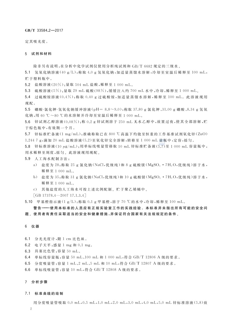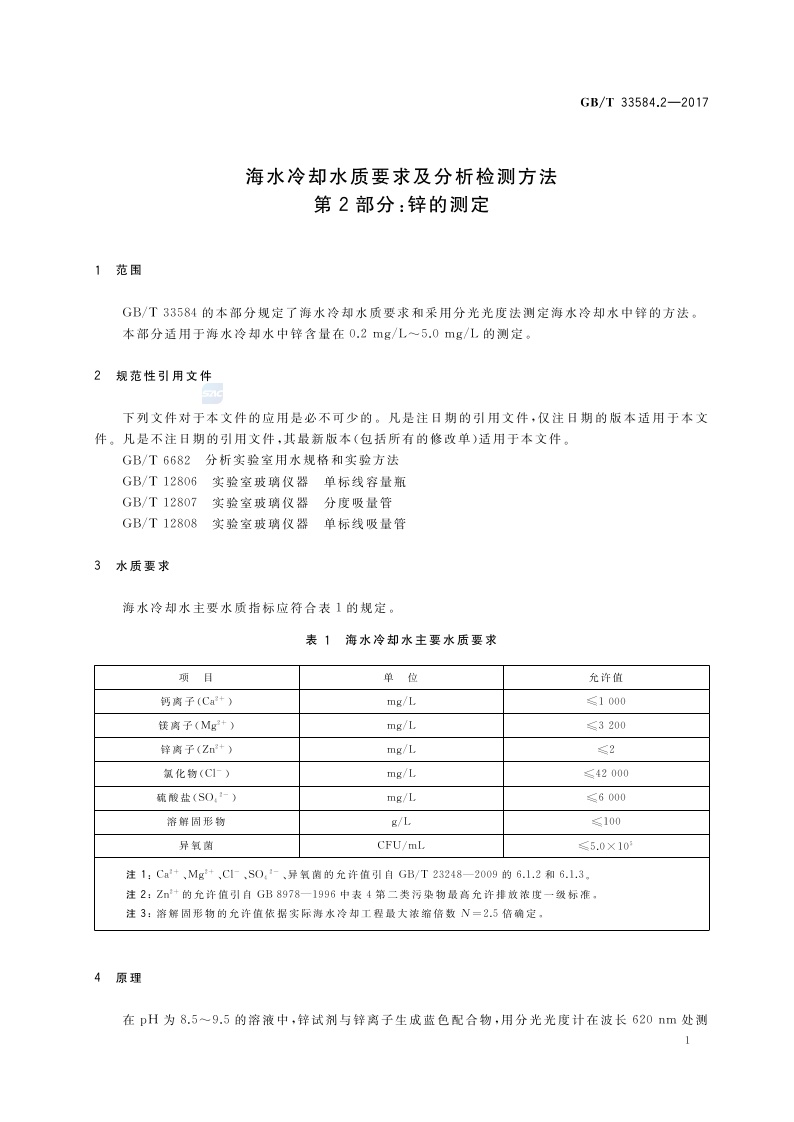 《海水冷却水质要求及分析检测方法 第2部分:锌的测定》(GB/T 33584.2-2017)