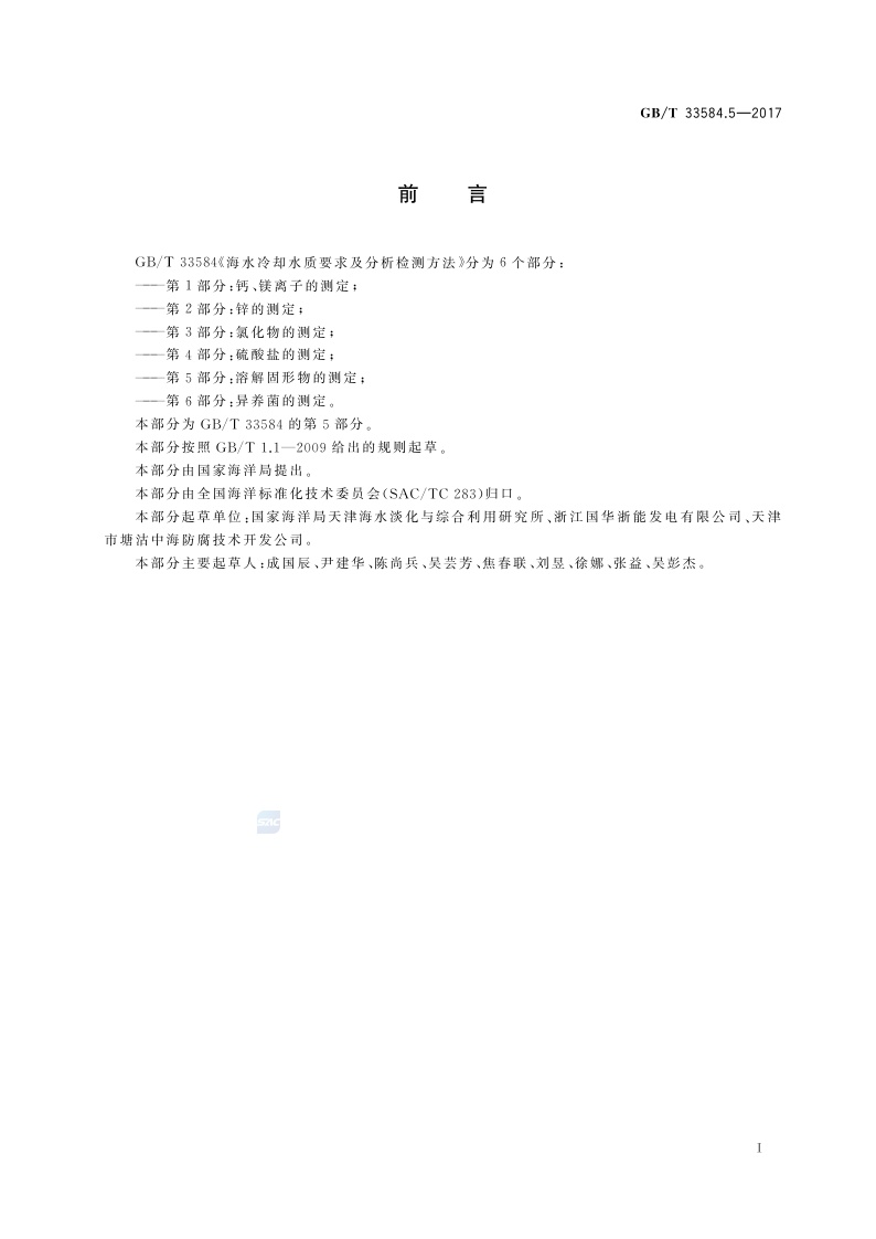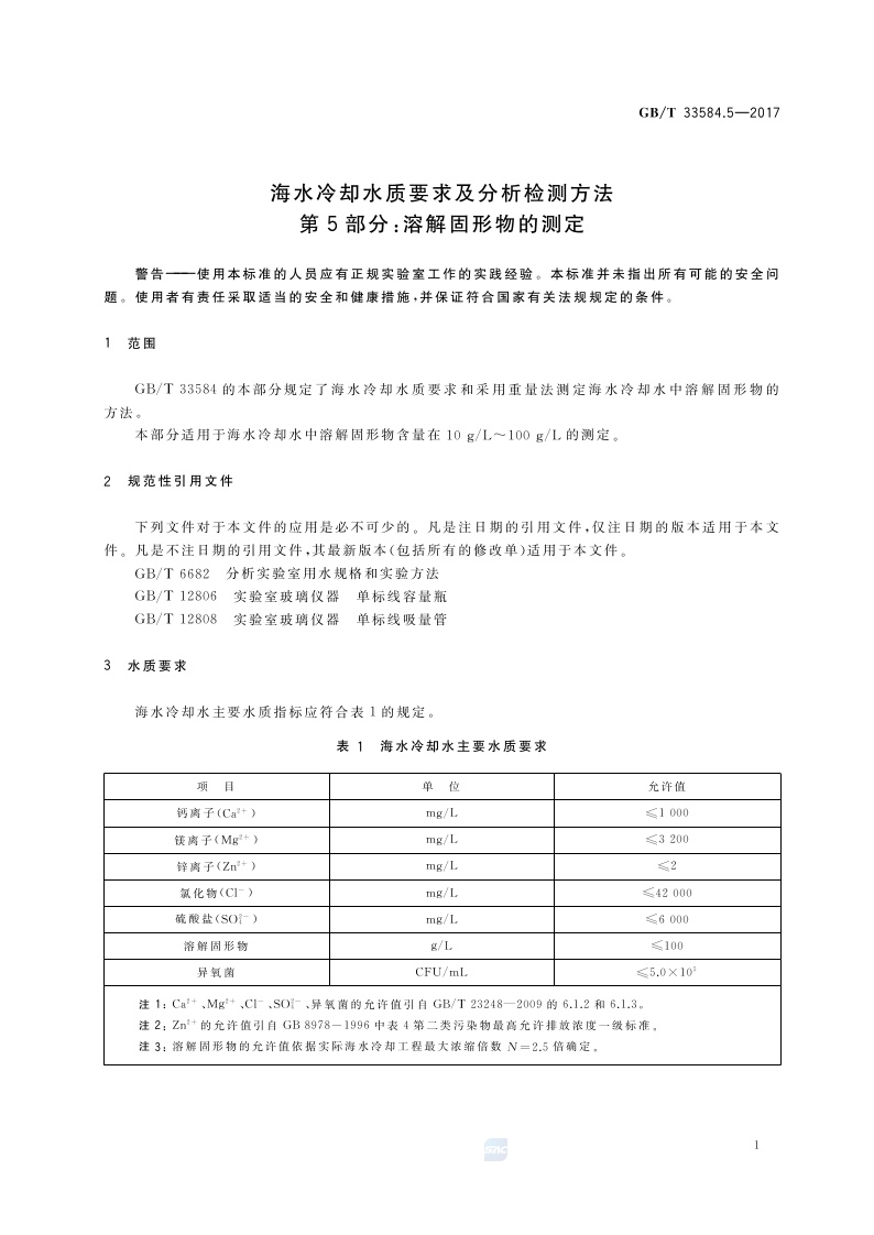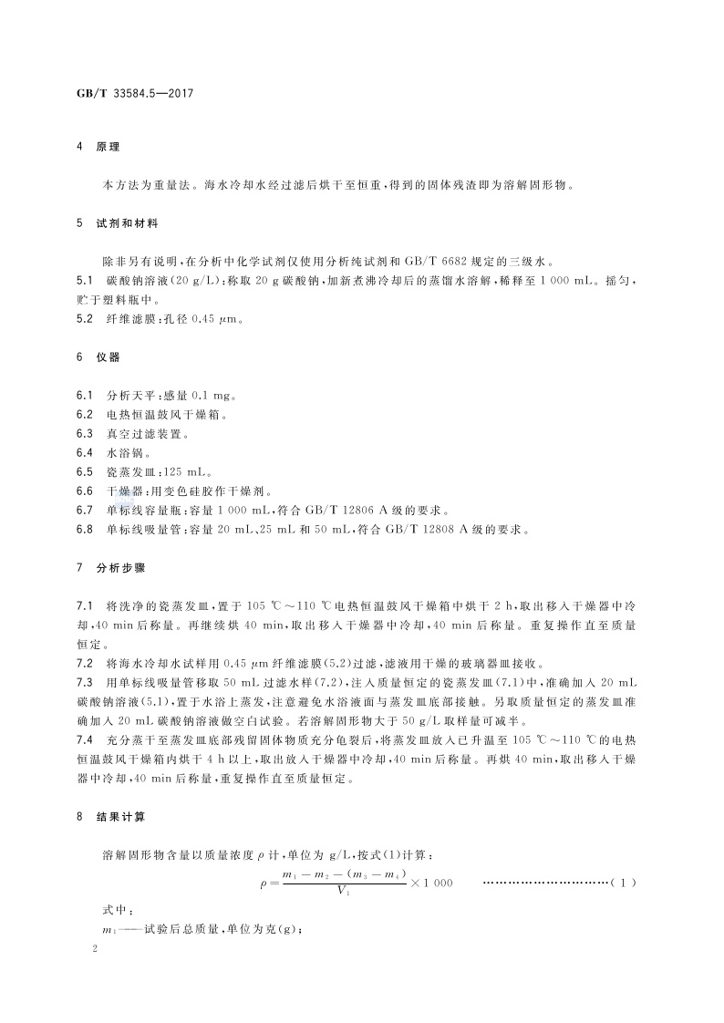 《海水冷却水质要求及分析检测方法 第5部分:溶解固形物的测定》(GB/T 33584.5-2017)
