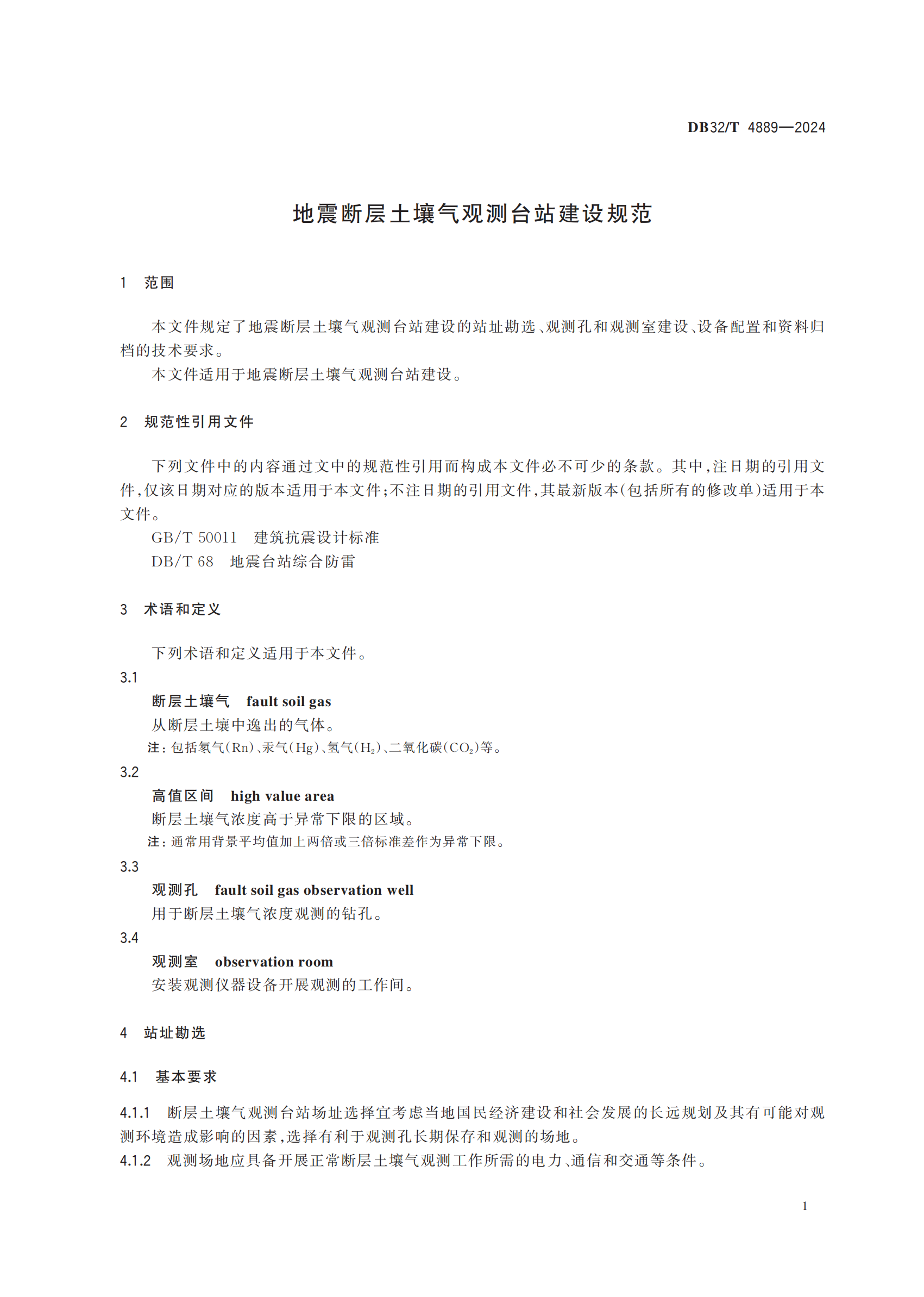 地震断层土壤气观测台站建设规范