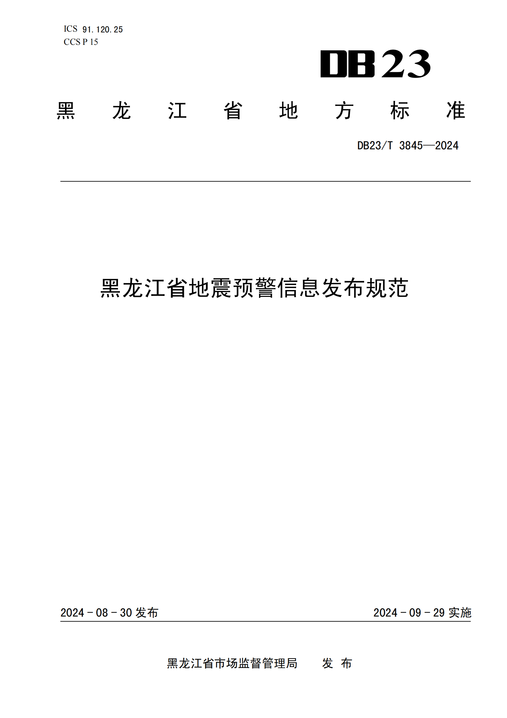 黑龙江省地震预警信息发布规范