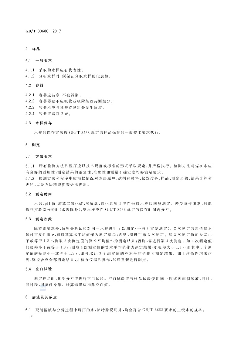 《煤矿水水质分析的一般规定》(GB/T 33686-2017)