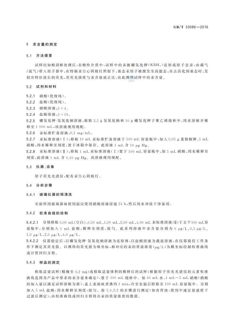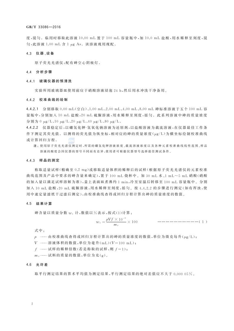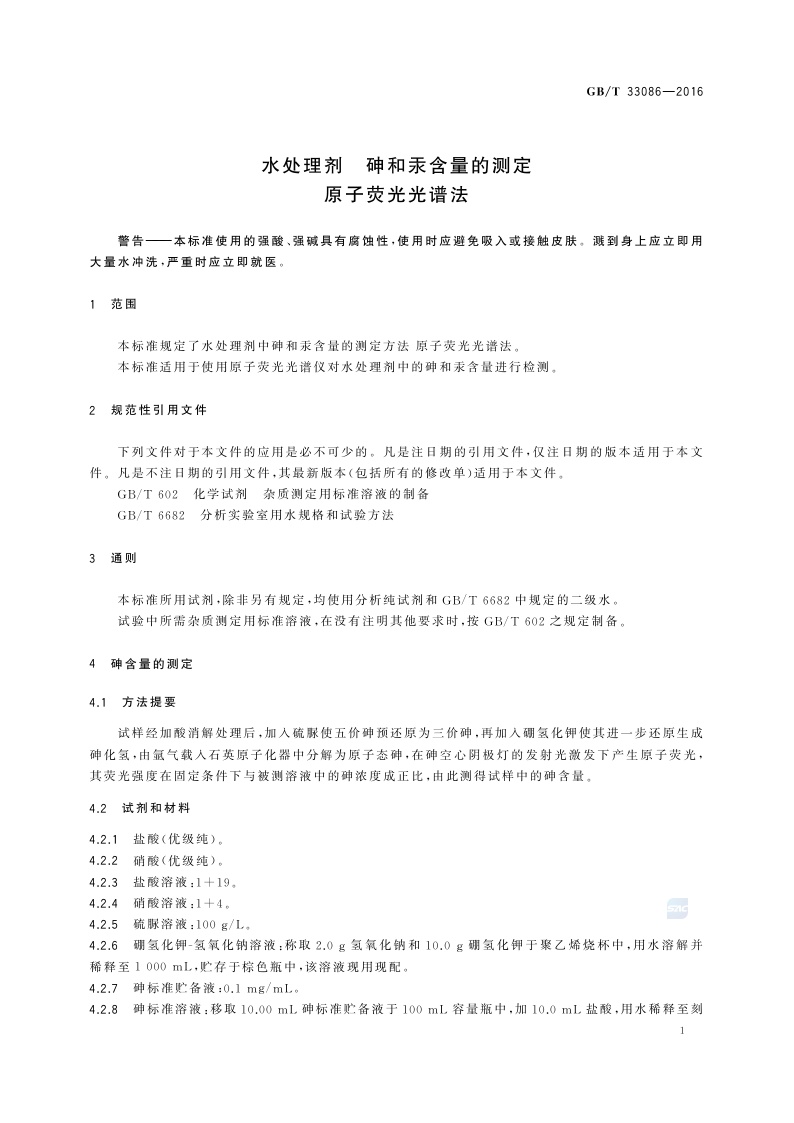 《水处理剂 砷和汞含量的测定 原子荧光光谱法》(GB/T 33086-2016)