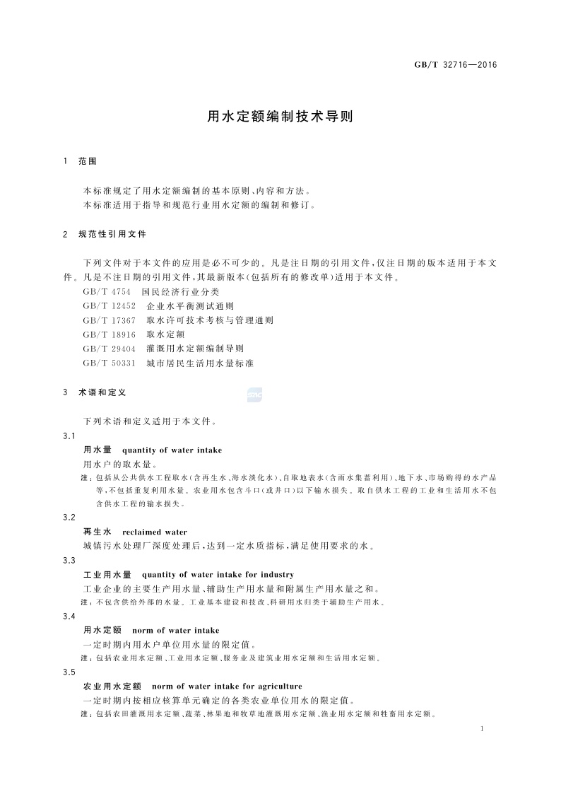 《用水定额编制技术导则》(GB/T 32716-2016)