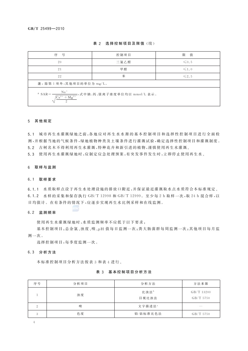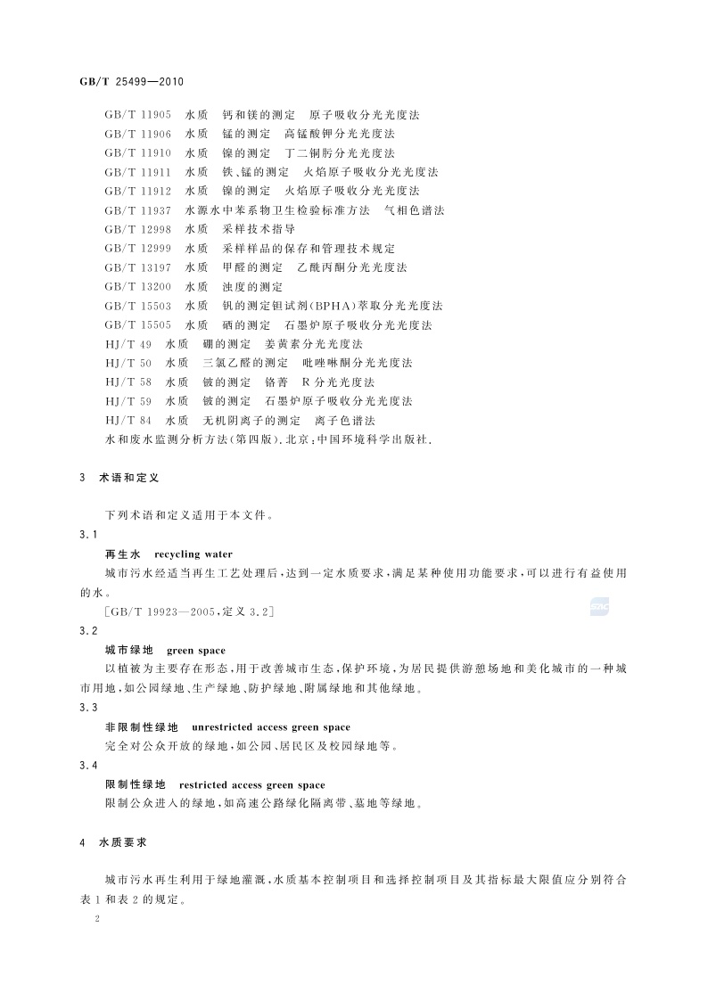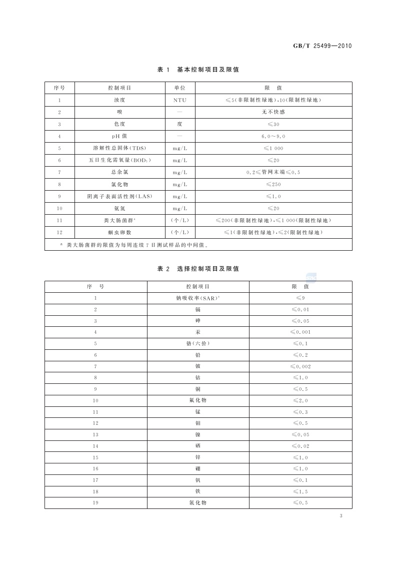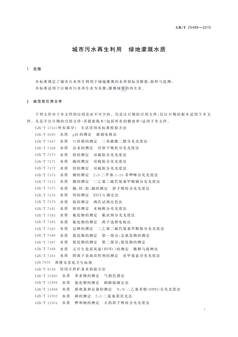 《城市污水再生利用 绿地灌溉水质》(GB/T 25499-2010)