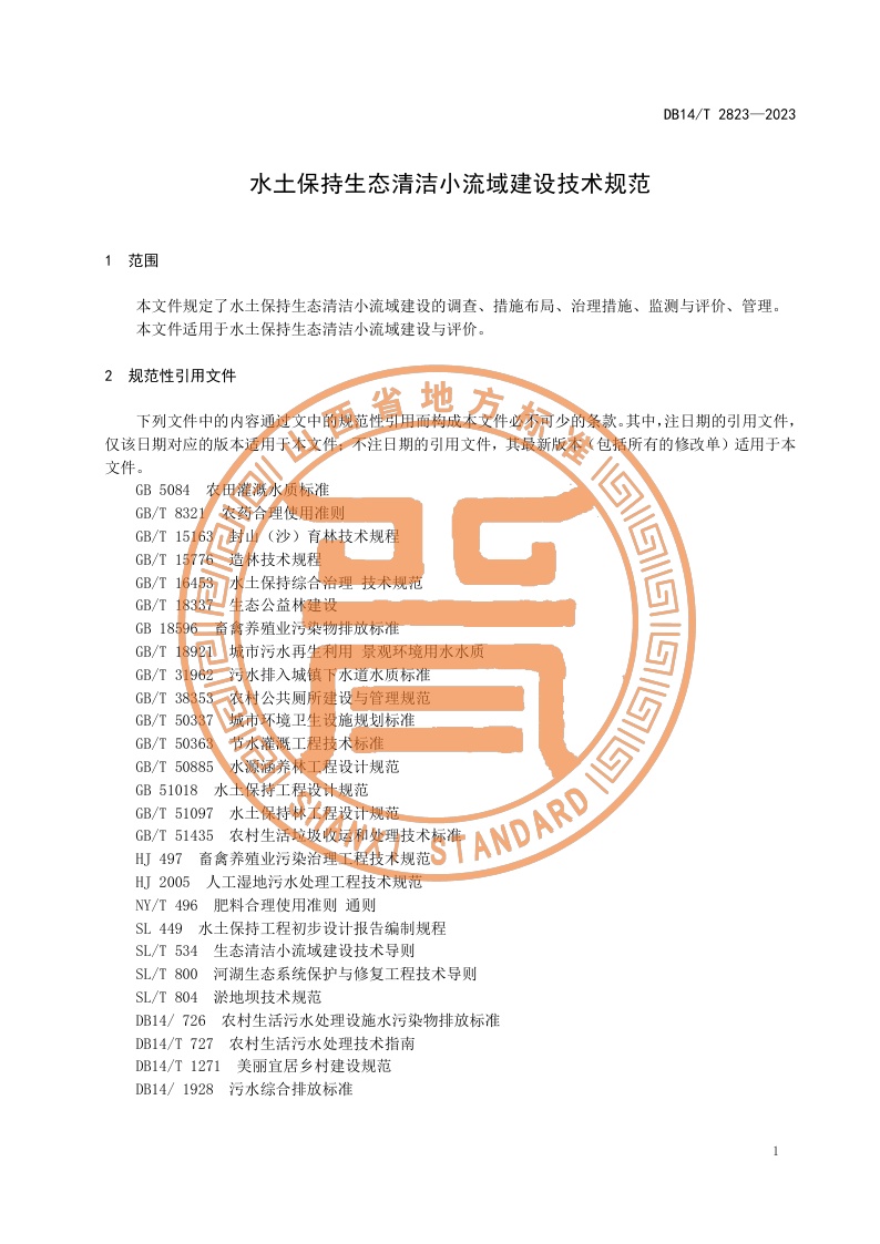 《水土保持生态清洁小流域建设技术规范》(DB14/T 2823—2023)