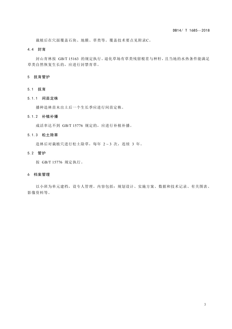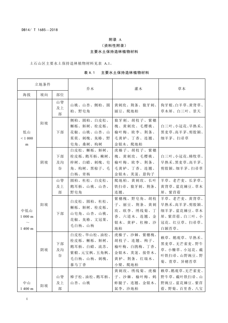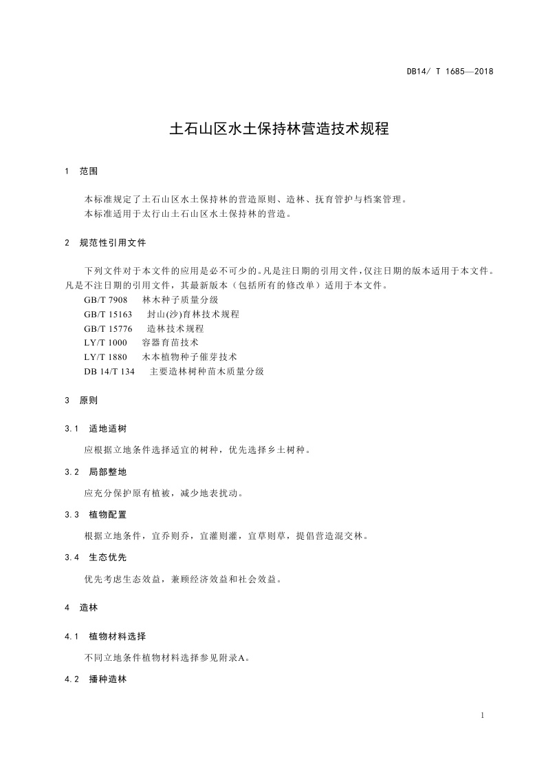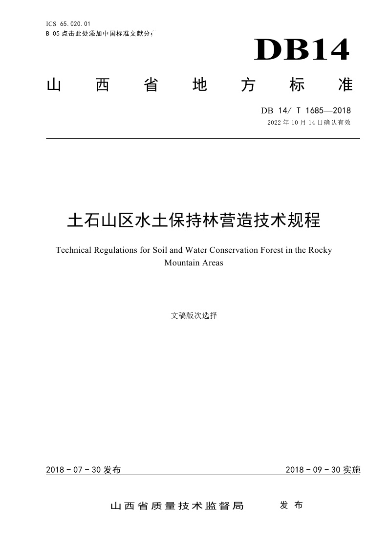 《土石山区水土保持林营造技术规程》(DB14/T 1685-2018)