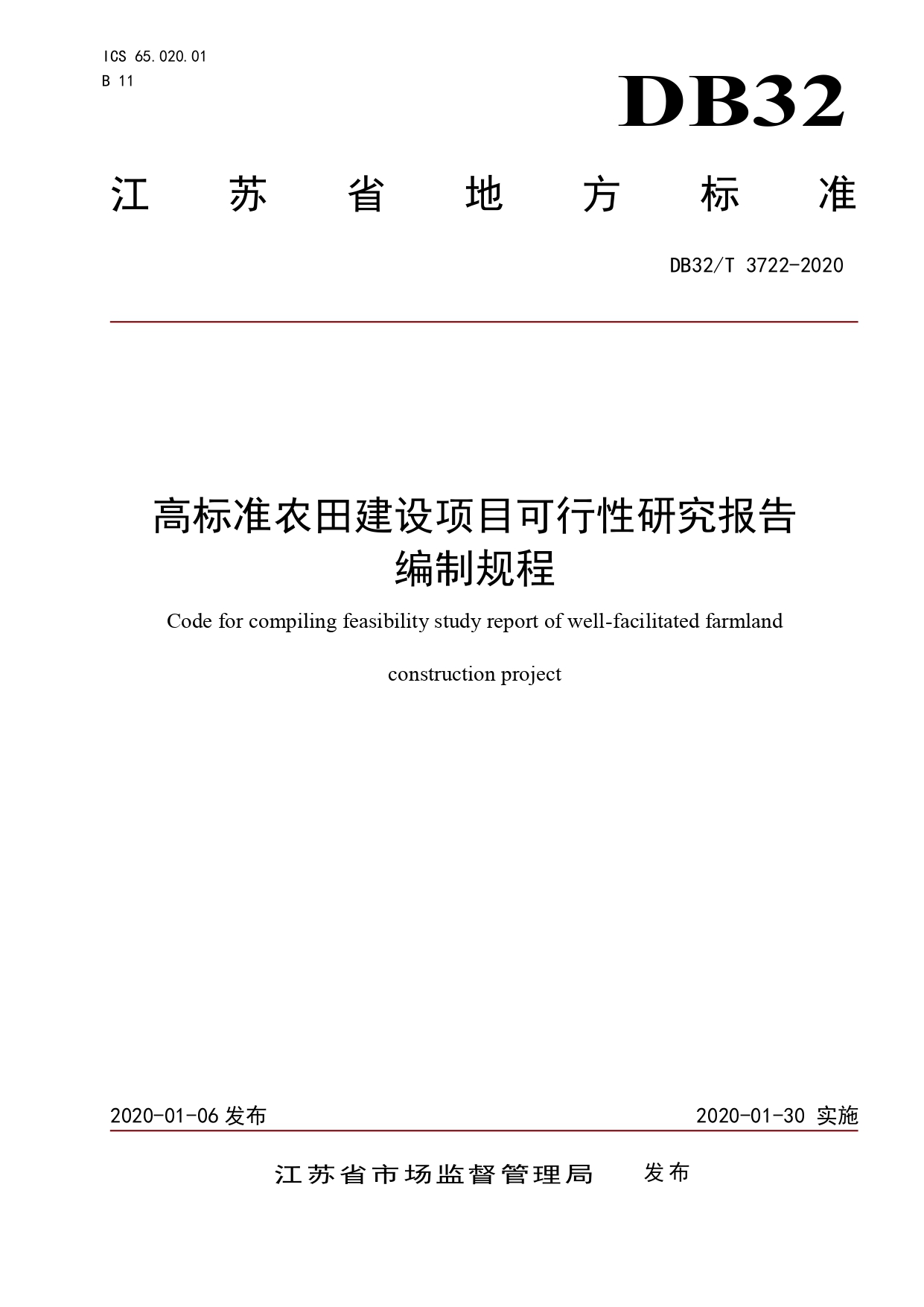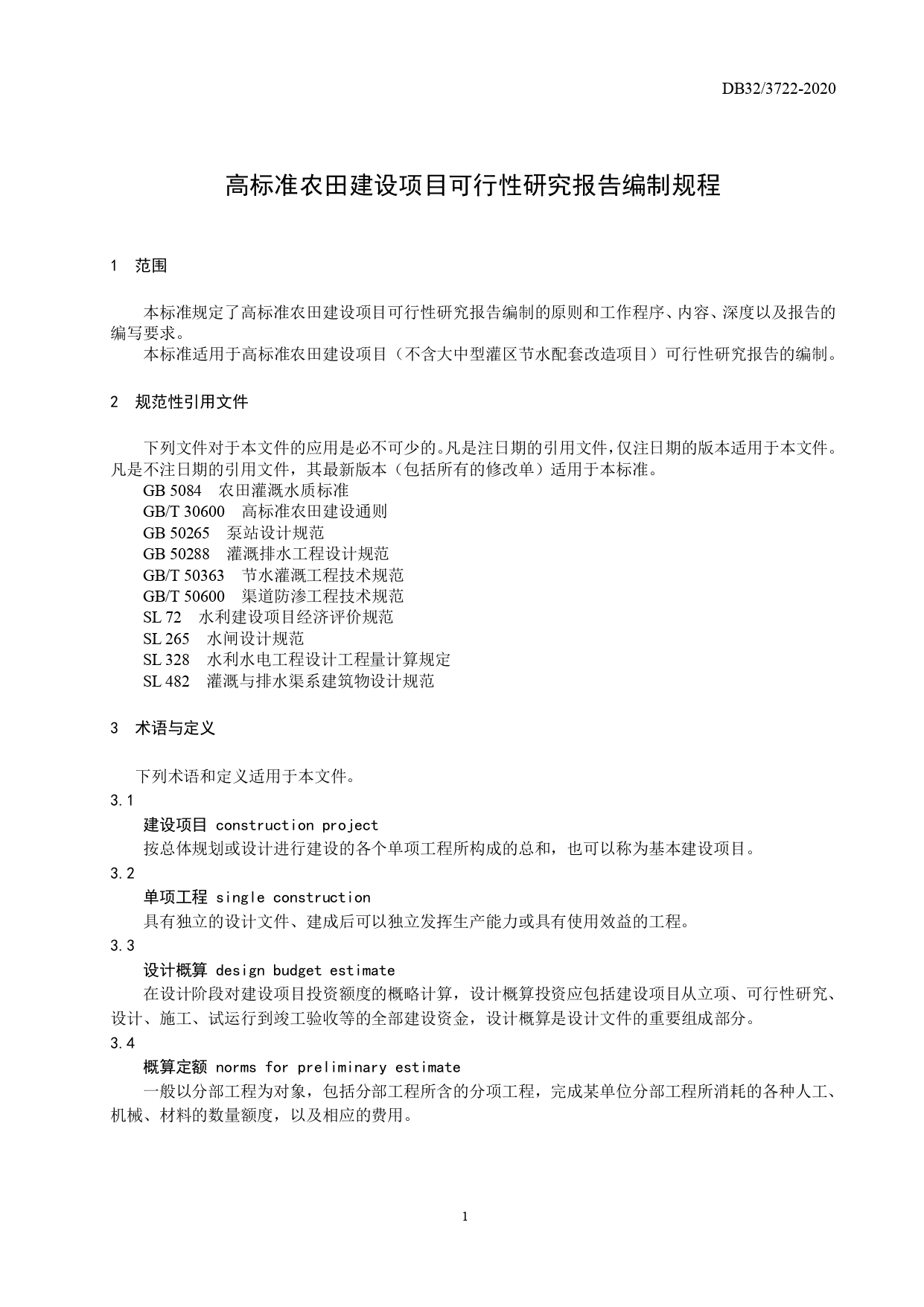 高标准农田建设项目可行性研究报告编制规程DB32/T 3722-2020