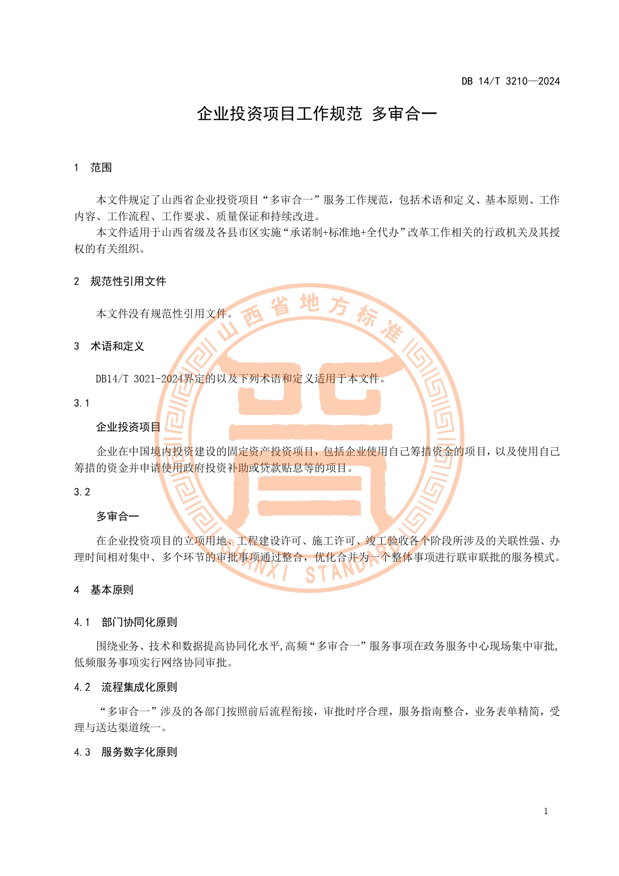 企业投资项目工作规范 多审合一DB14/T 3210-2024