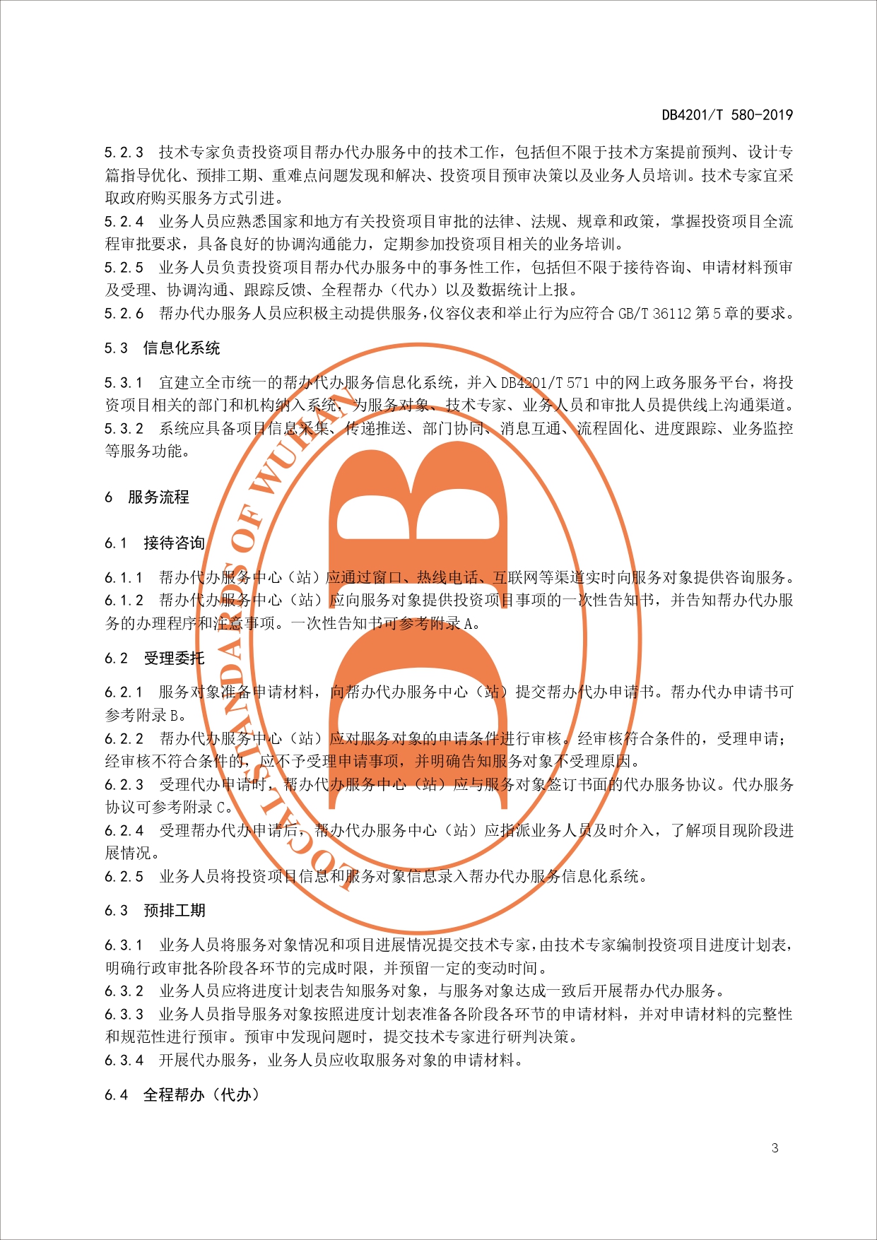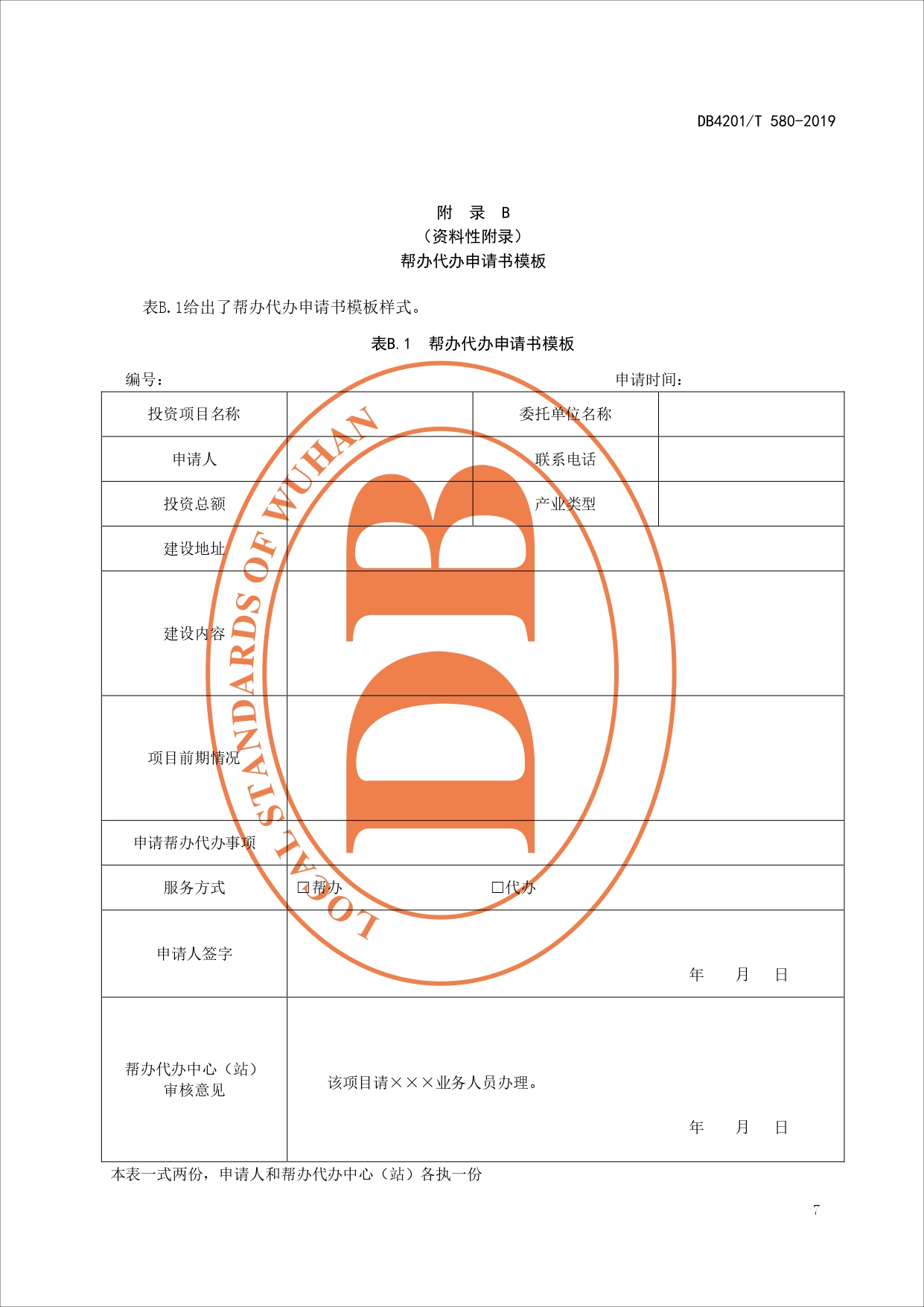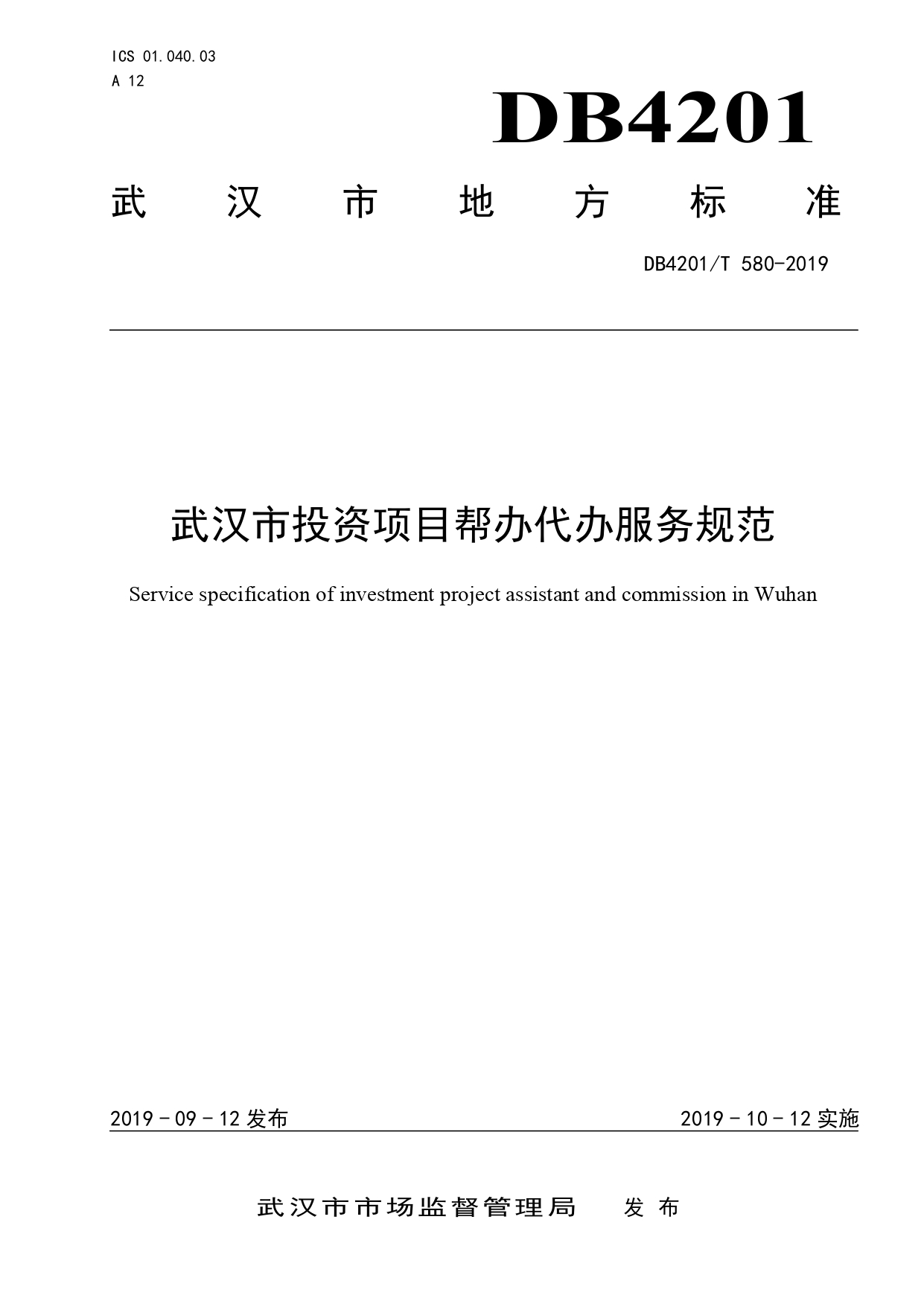武汉市投资项目帮办代办服务规范DB4201/T 580-2019