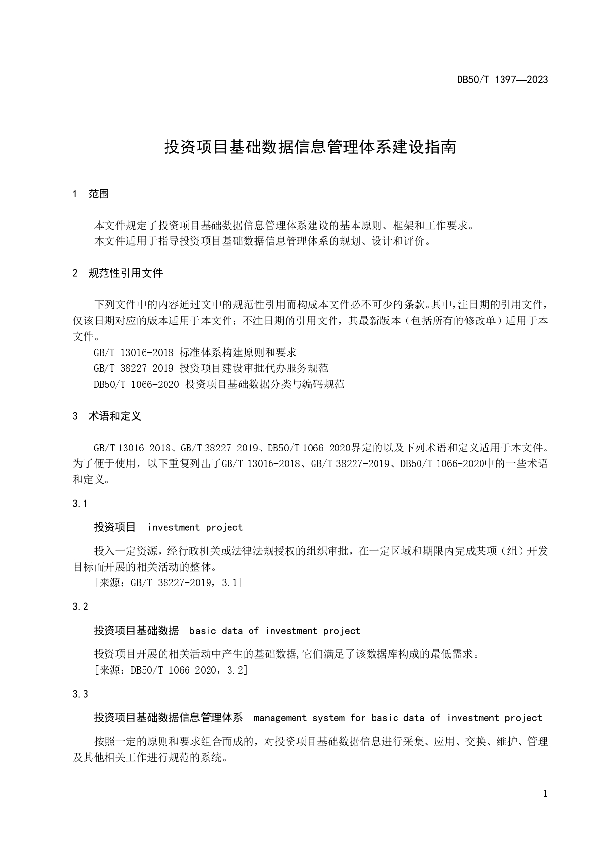 投资项目基础数据信息管理体系建设指南DB50/T 1397-2023