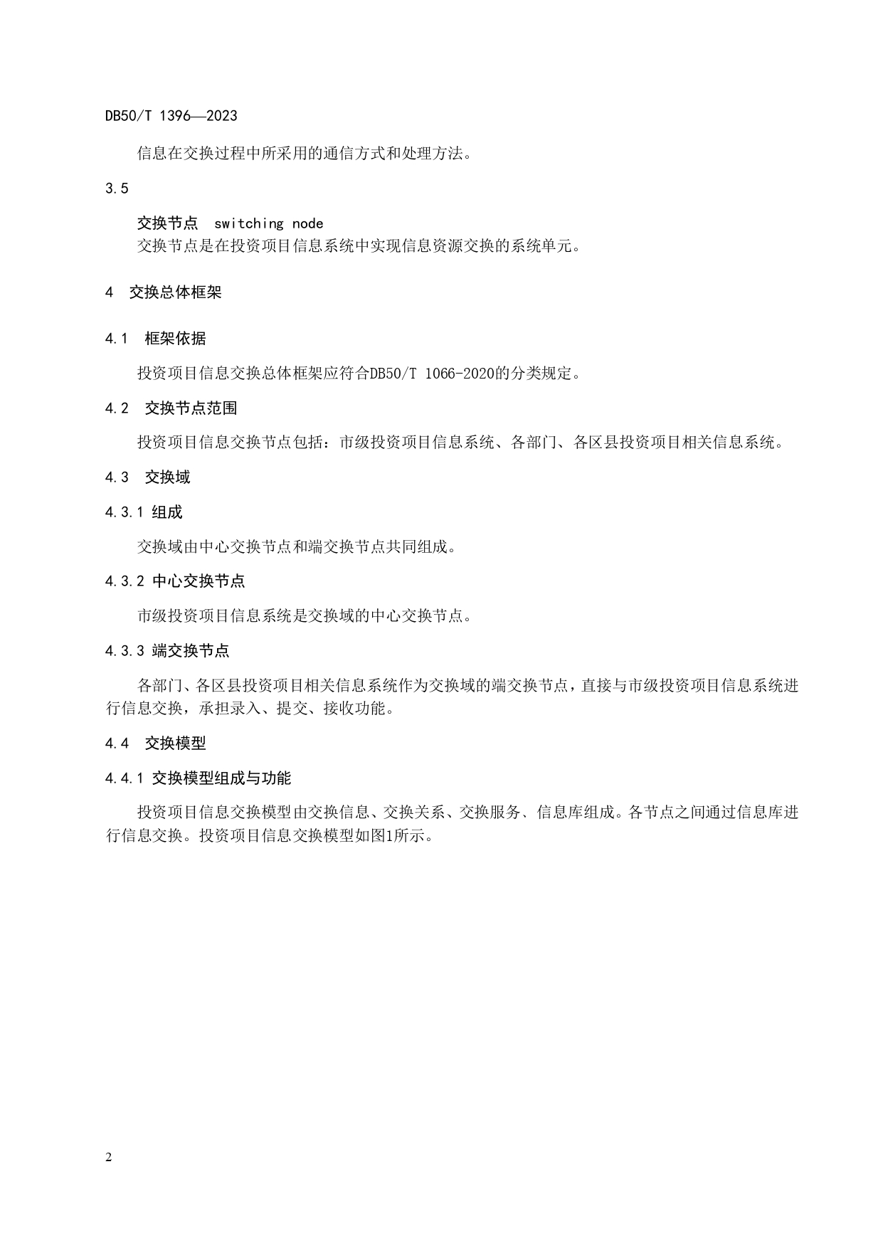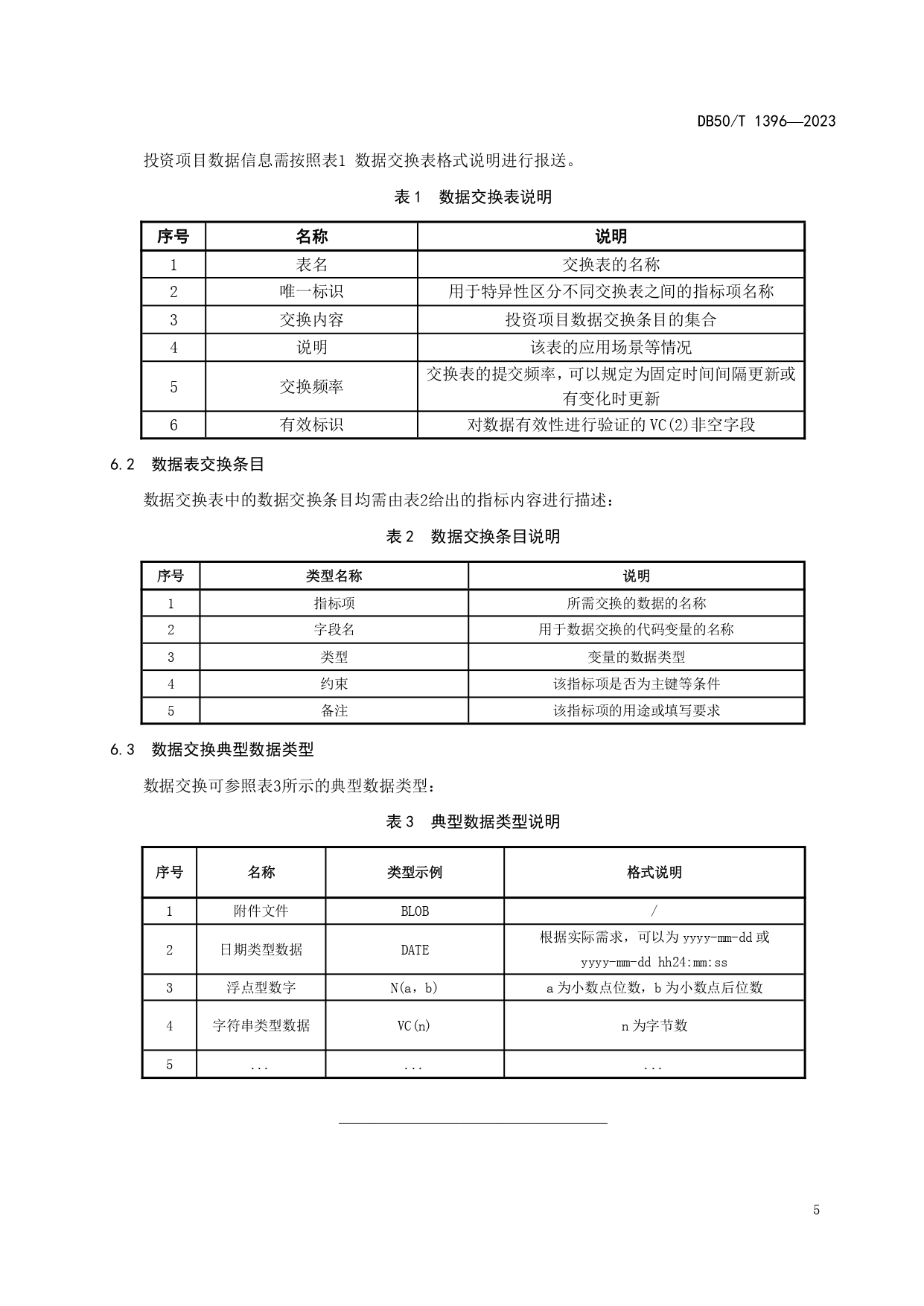 投资项目信息交换方式及接口规范DB50/T 1396-2023