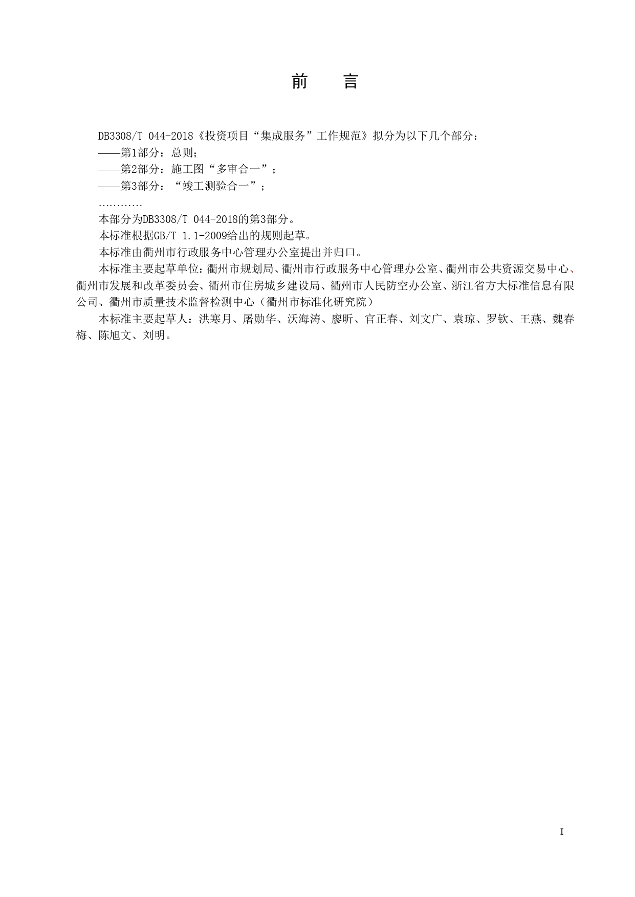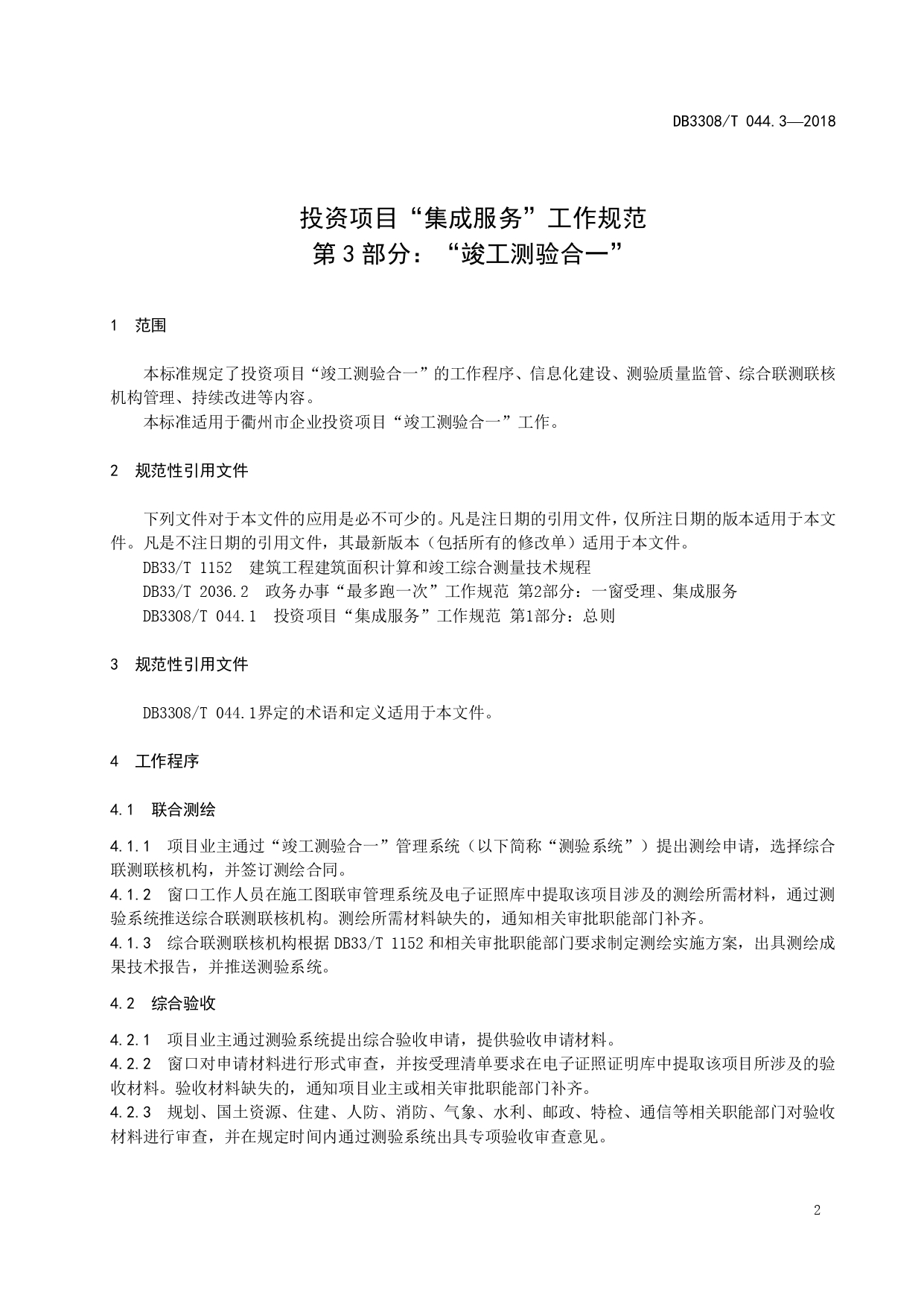 投资项目“集成服务”工作规范 第3部分:“竣工测验合一”DB3308/T 044.3-2018