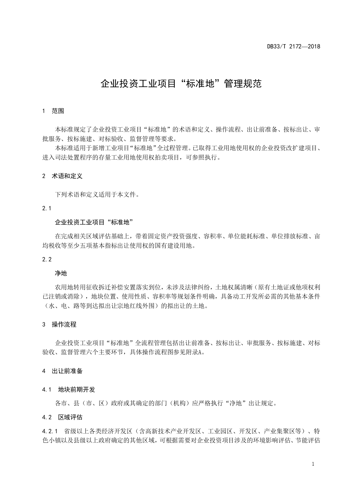 企业投资工业项目“标准地”管理规范DB33/T 2172-2018