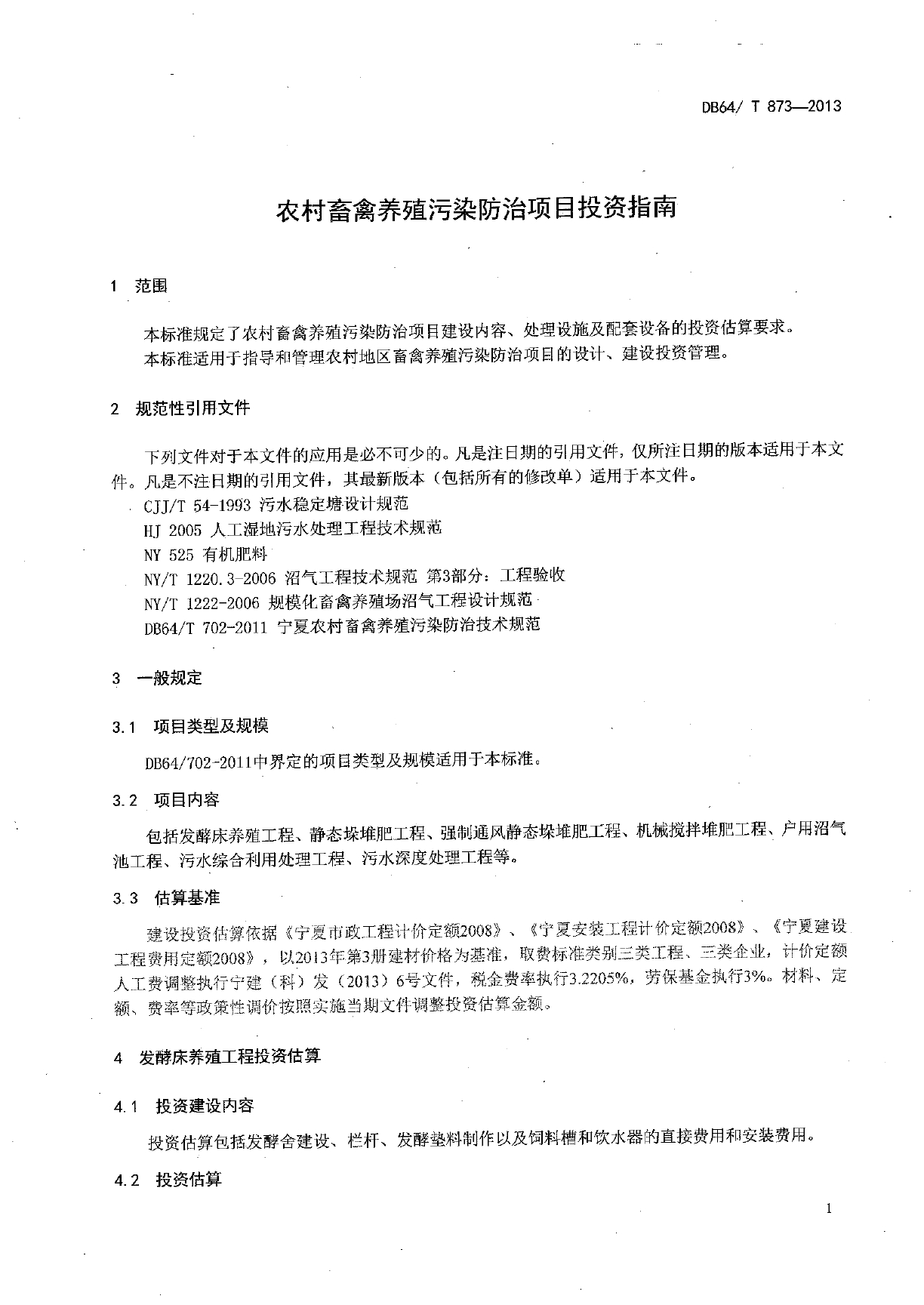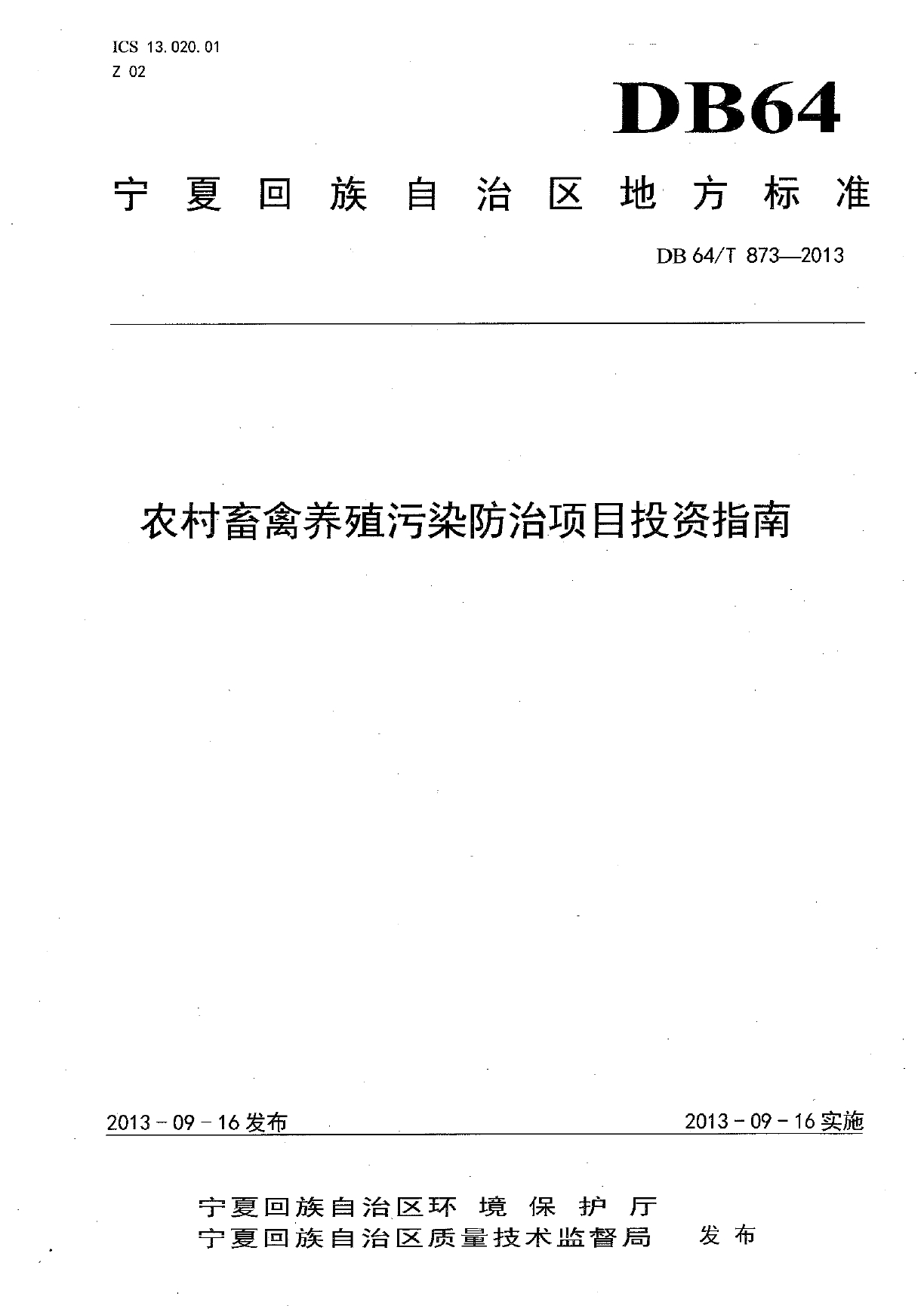 农村畜禽养殖污染防治项目投资指南DB64/T 873-2013