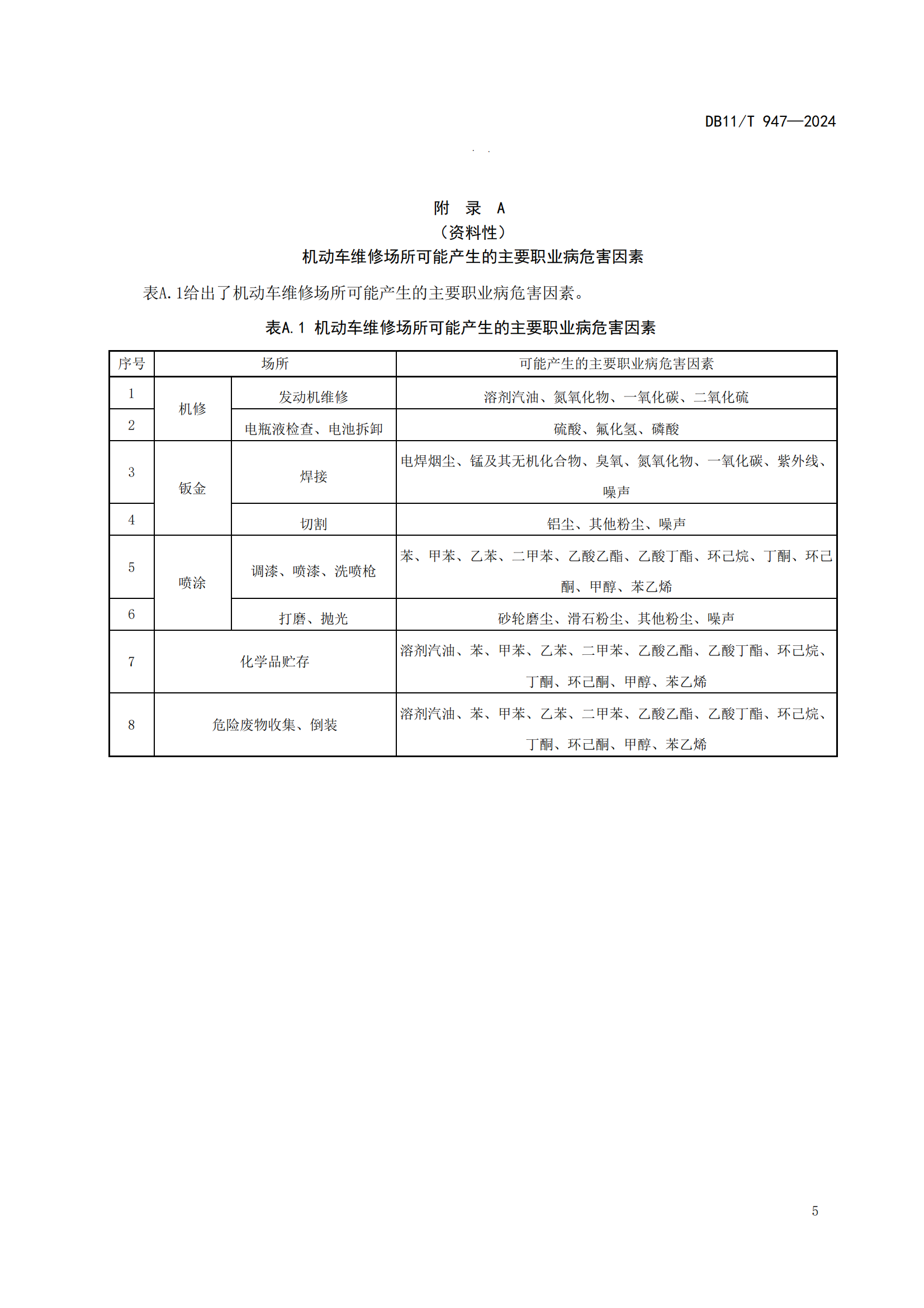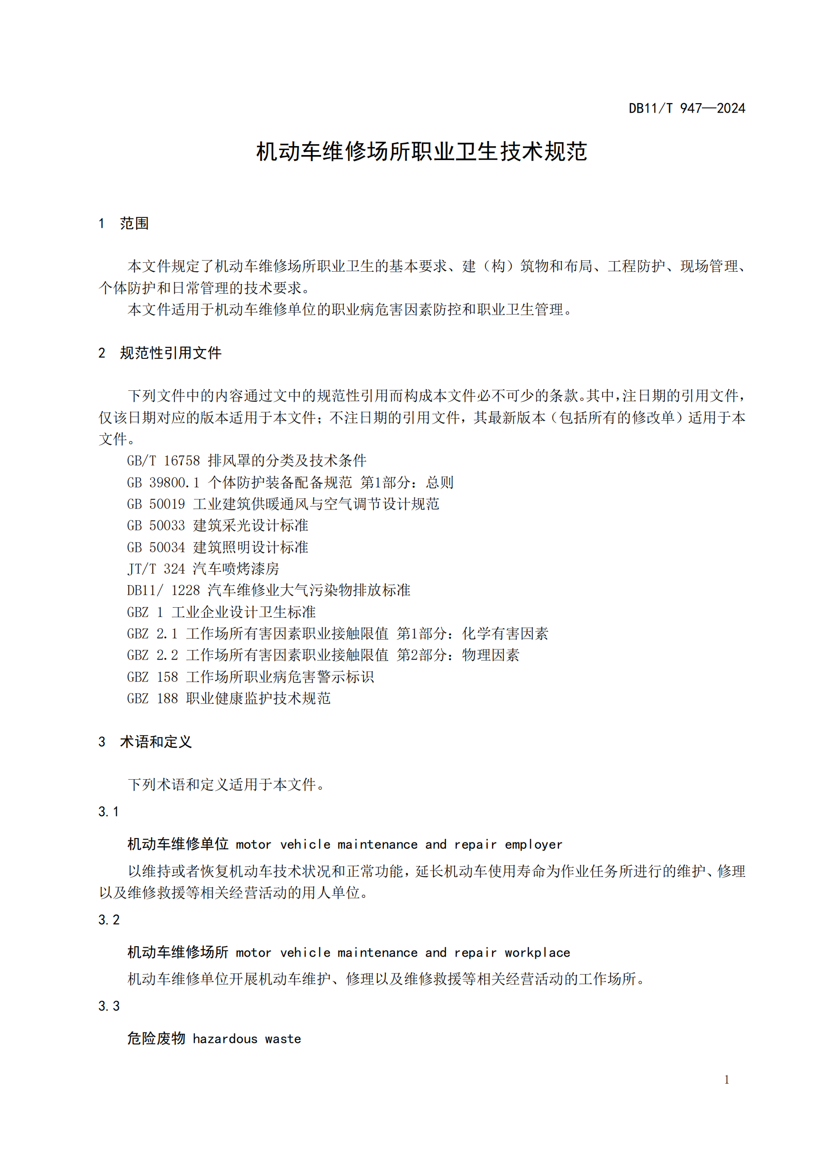 机动车维修场所职业卫生技术规范