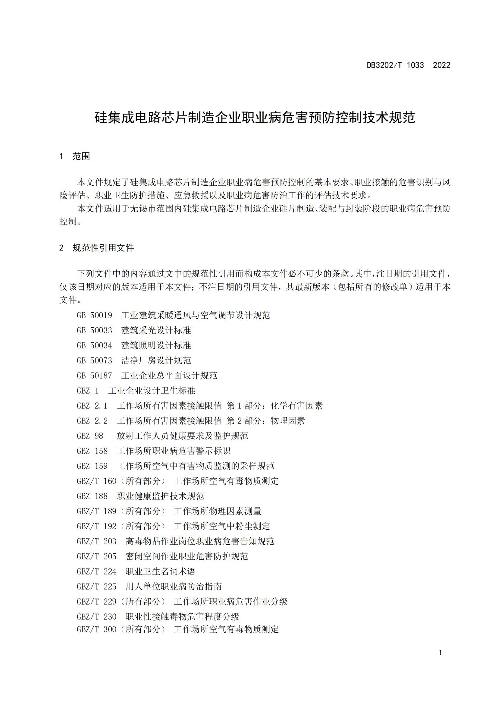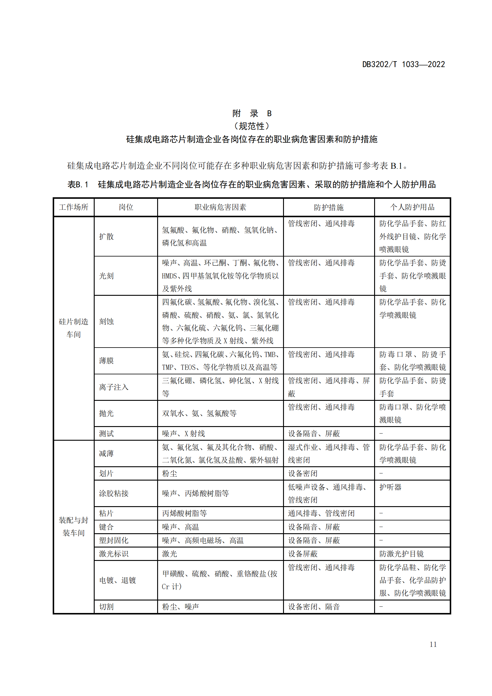 硅集成电路芯片制造企业职业病危害预防控制技术规范