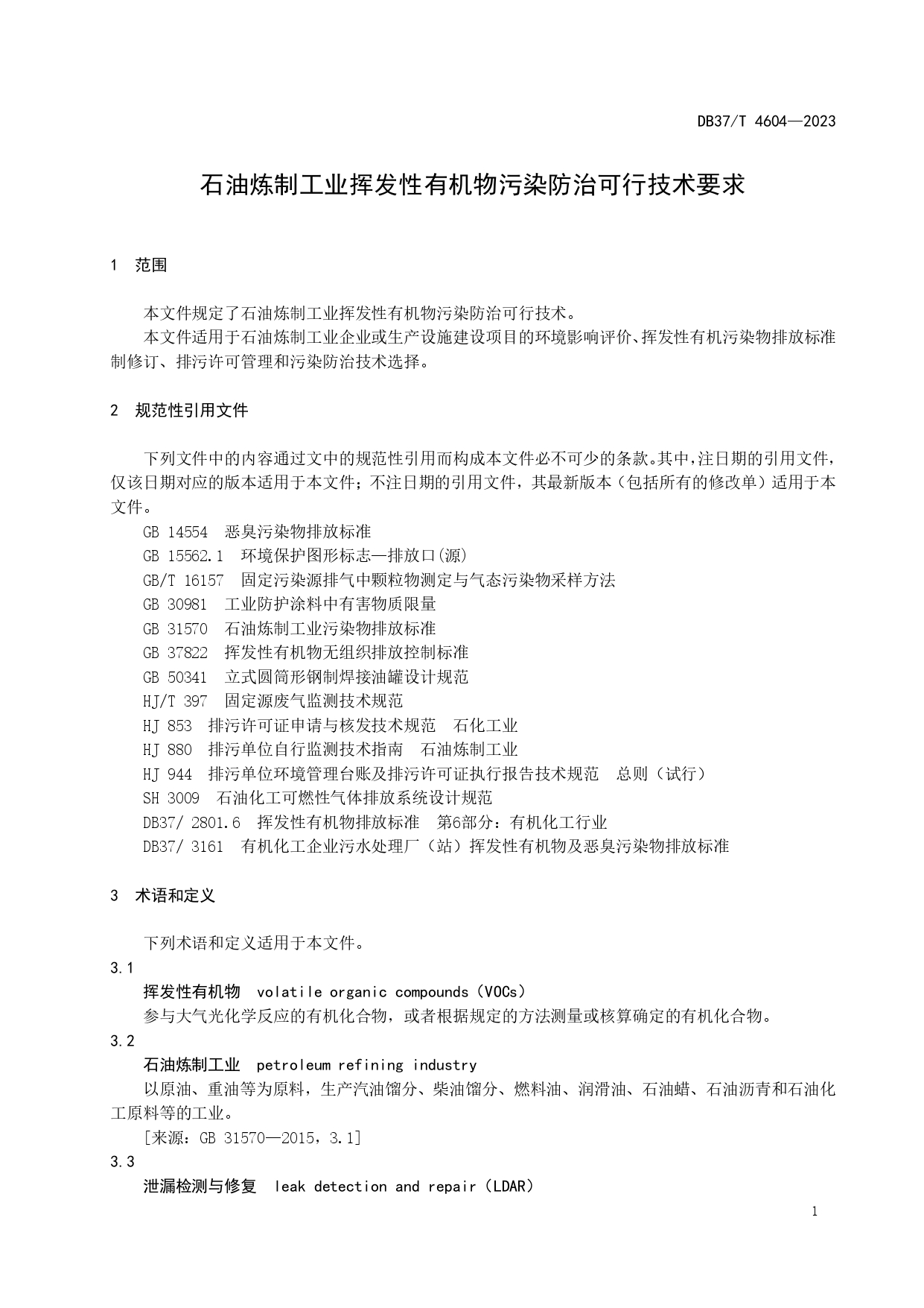 石油炼制工业挥发性有机物污染防治可行技术要求DB37/T 4604—2023