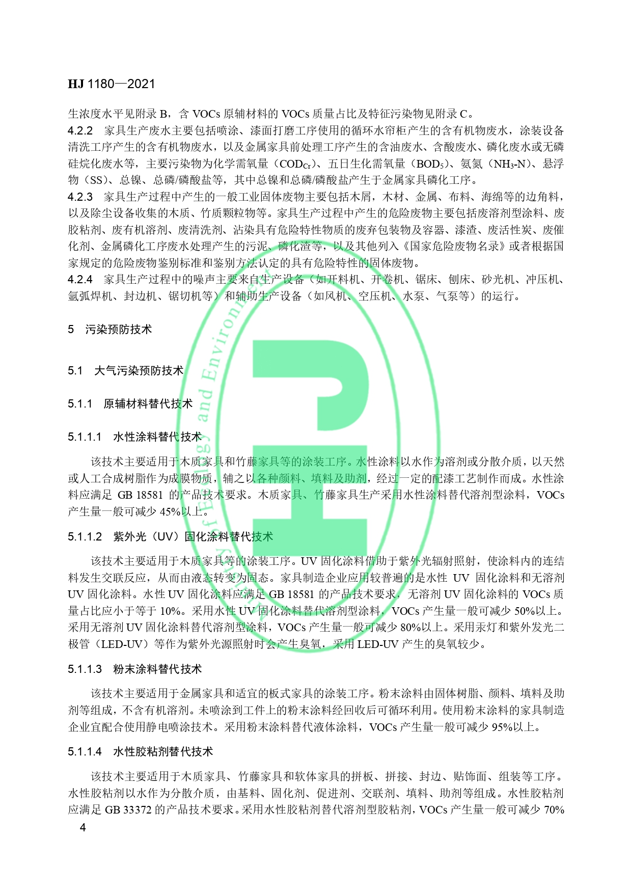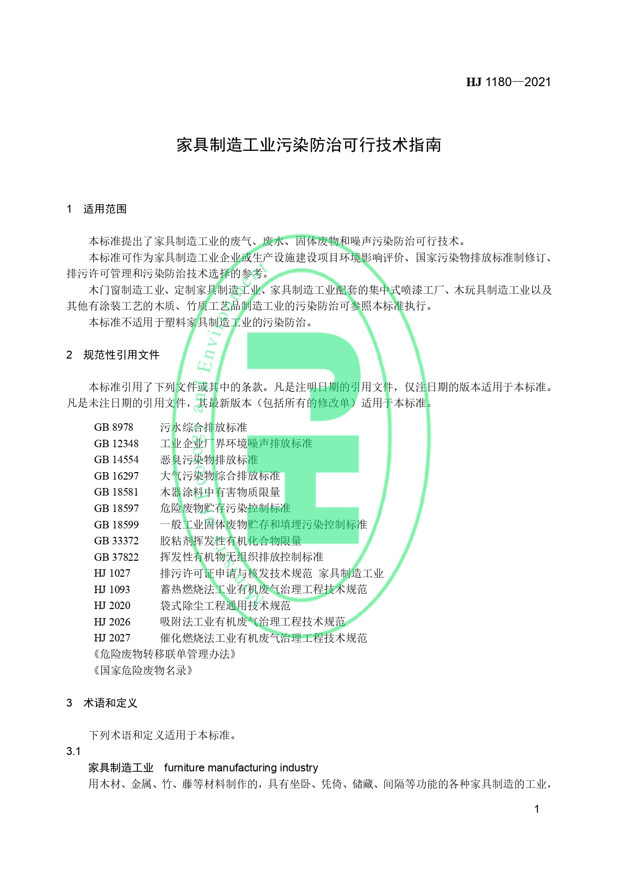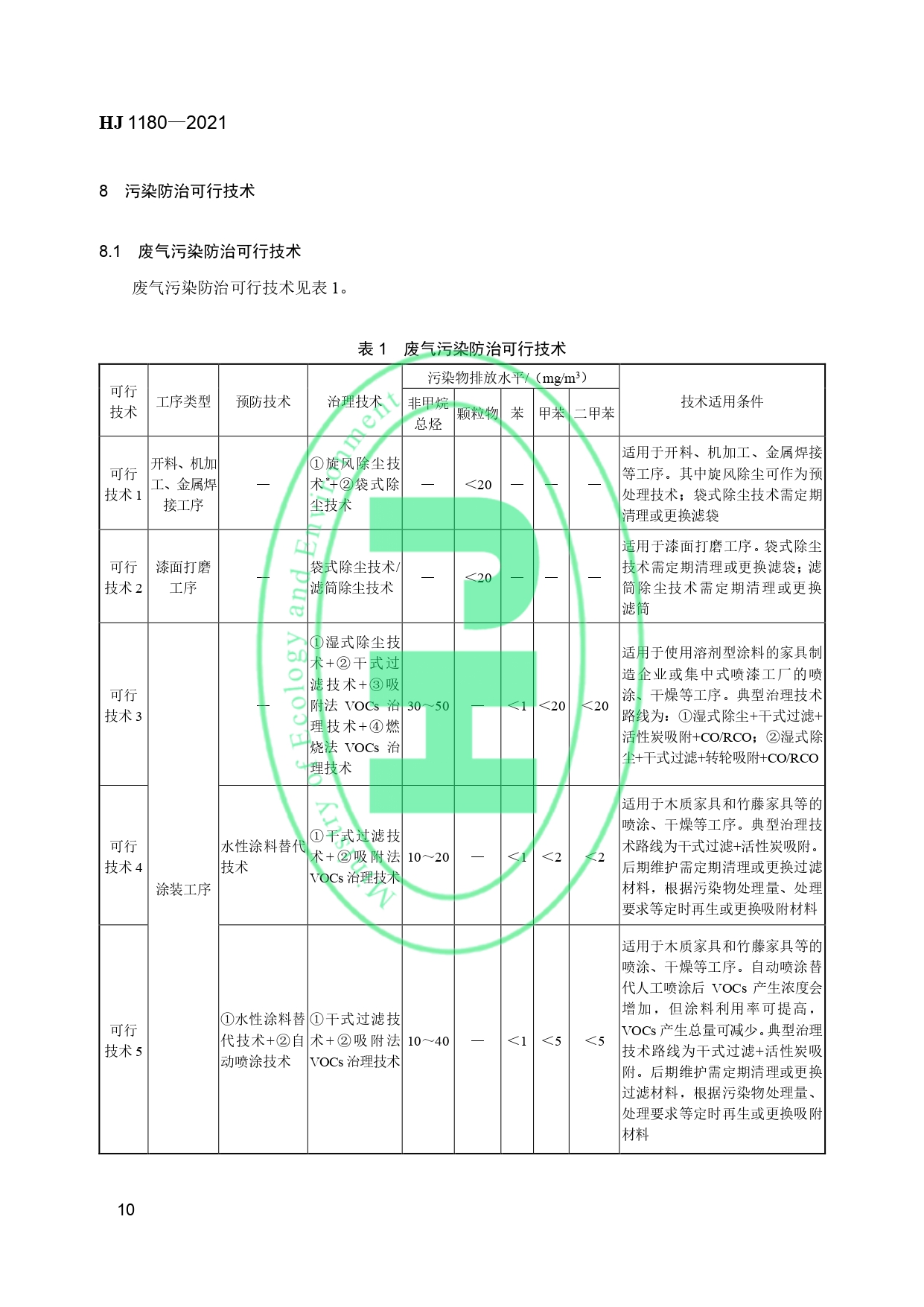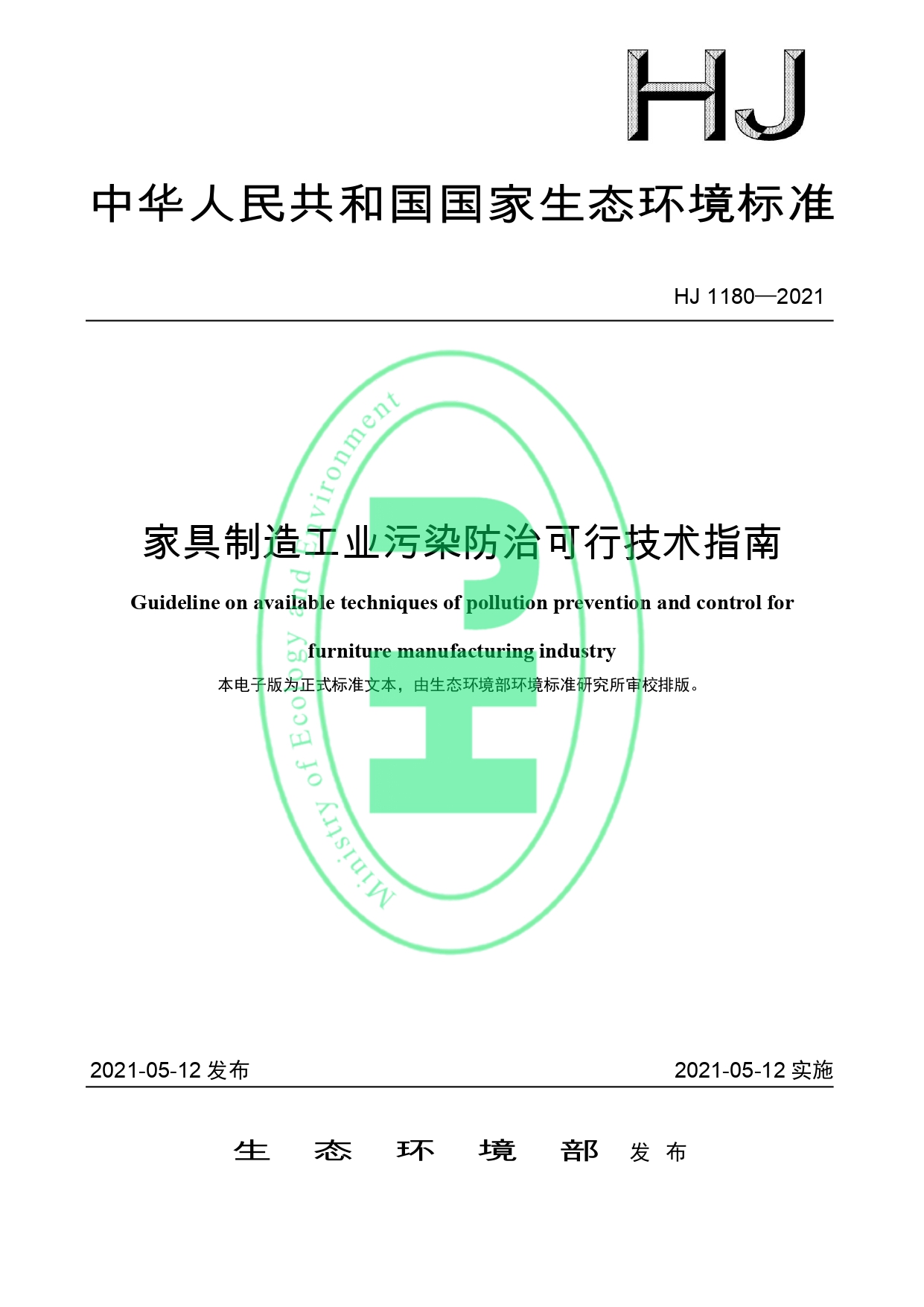 家具制造业污染防治可行技术指南HJ 1180-2021