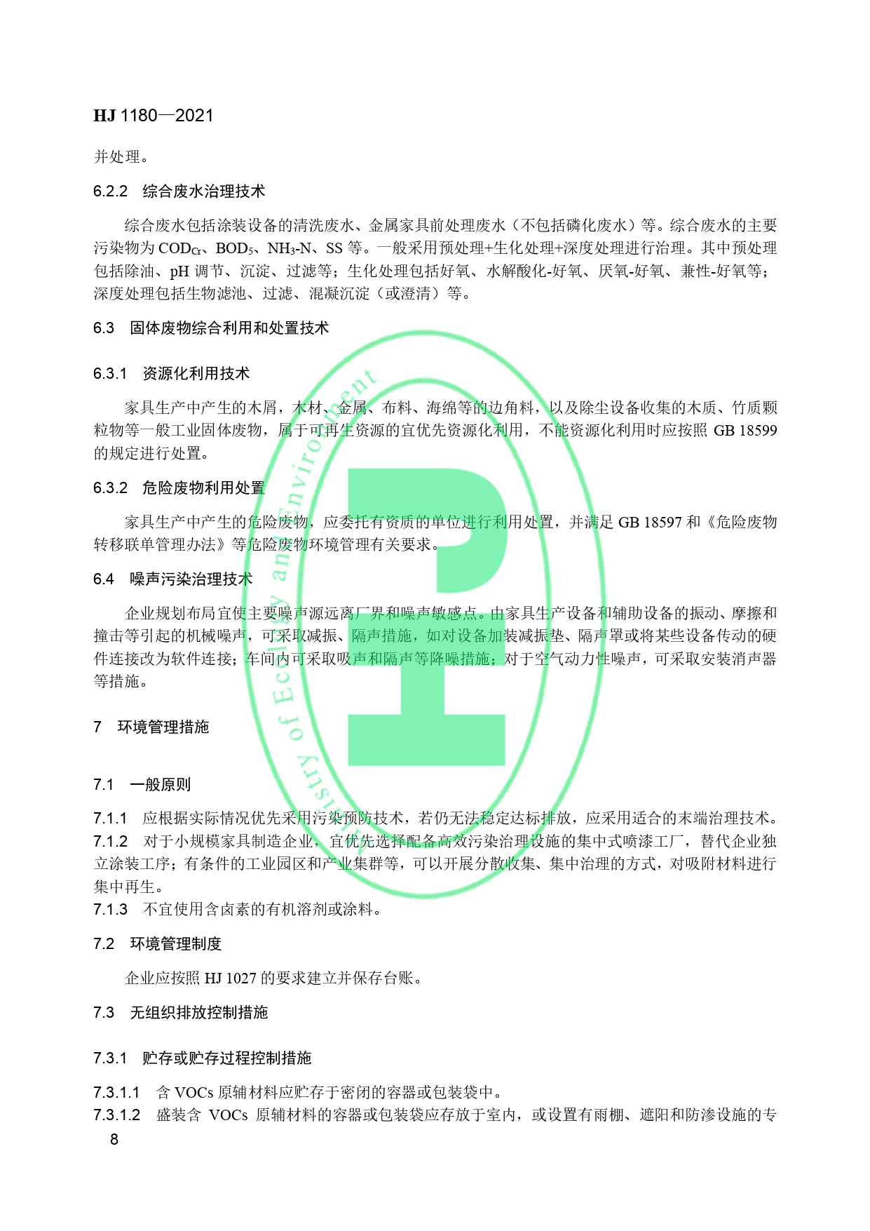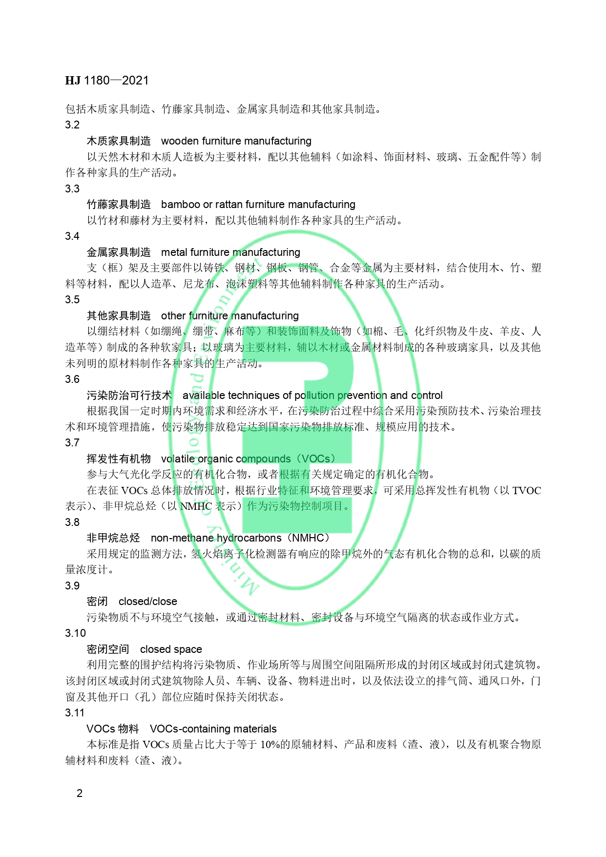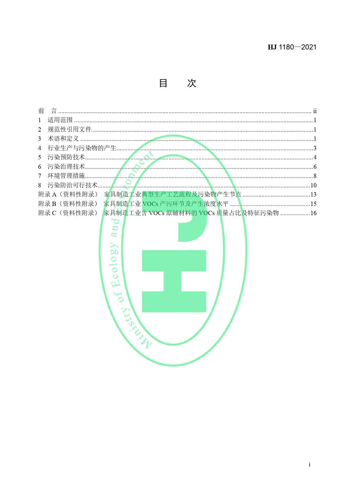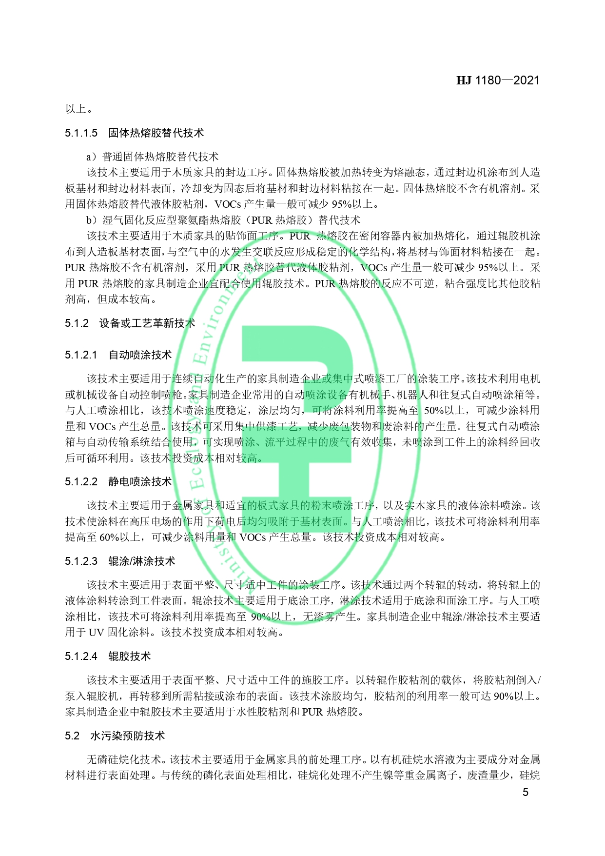 家具制造业污染防治可行技术指南HJ 1180-2021