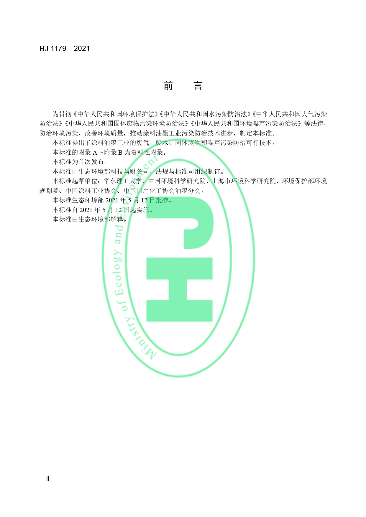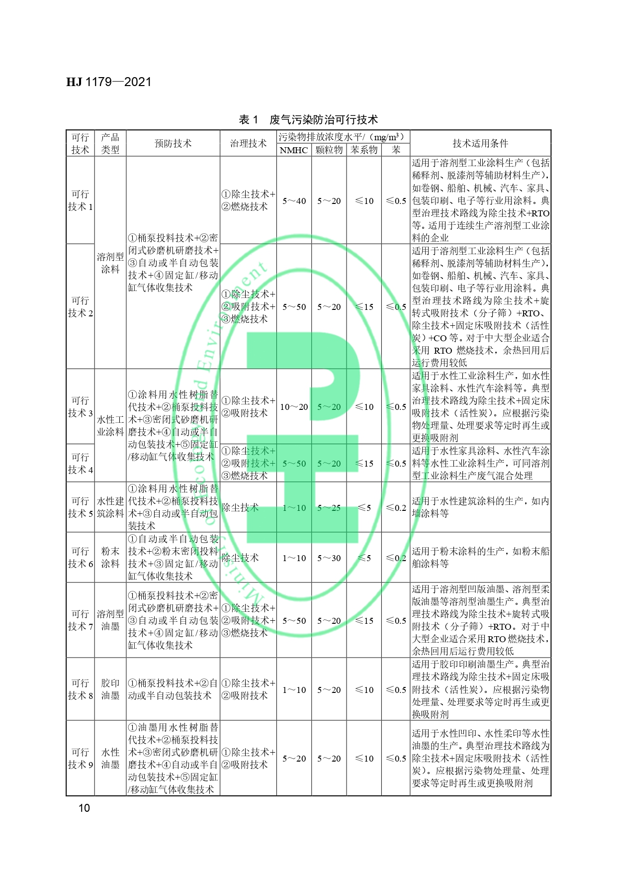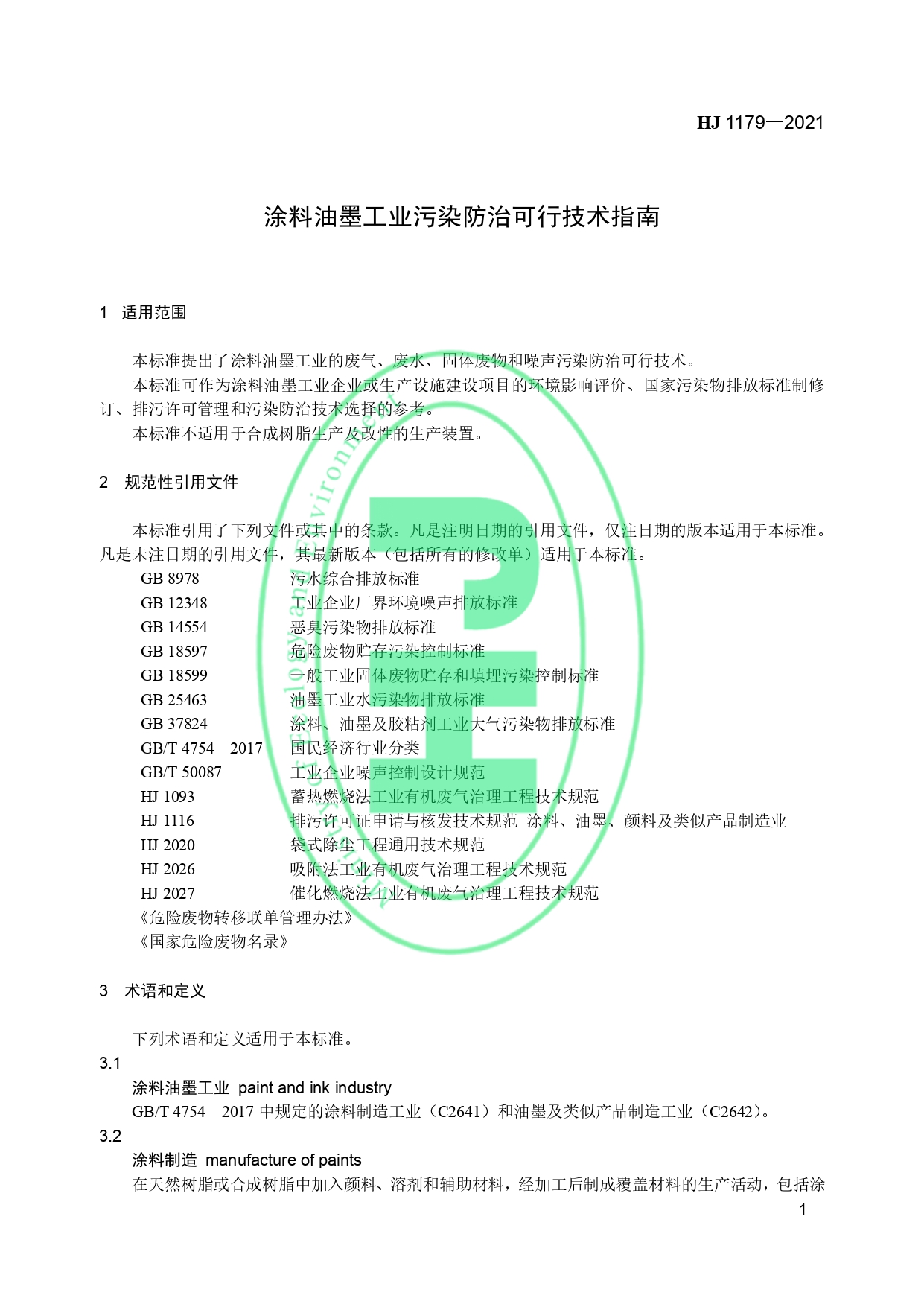 涂料油墨工业污染防治可行技术指南HJ 1179-2021