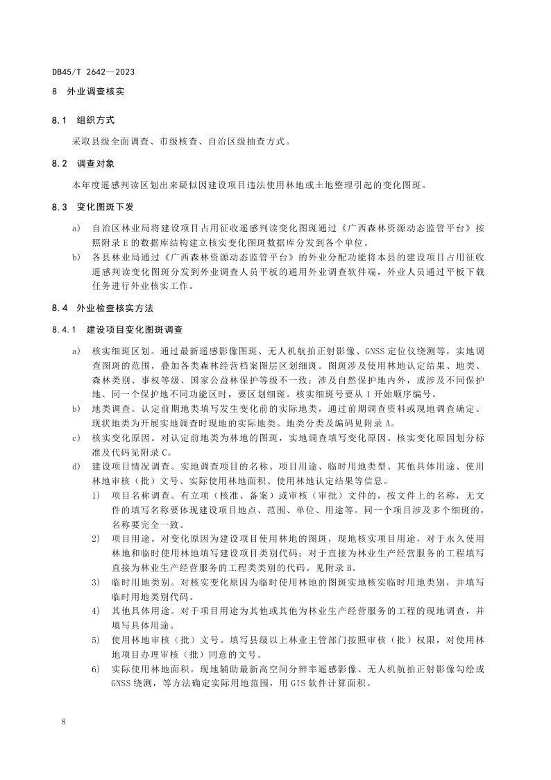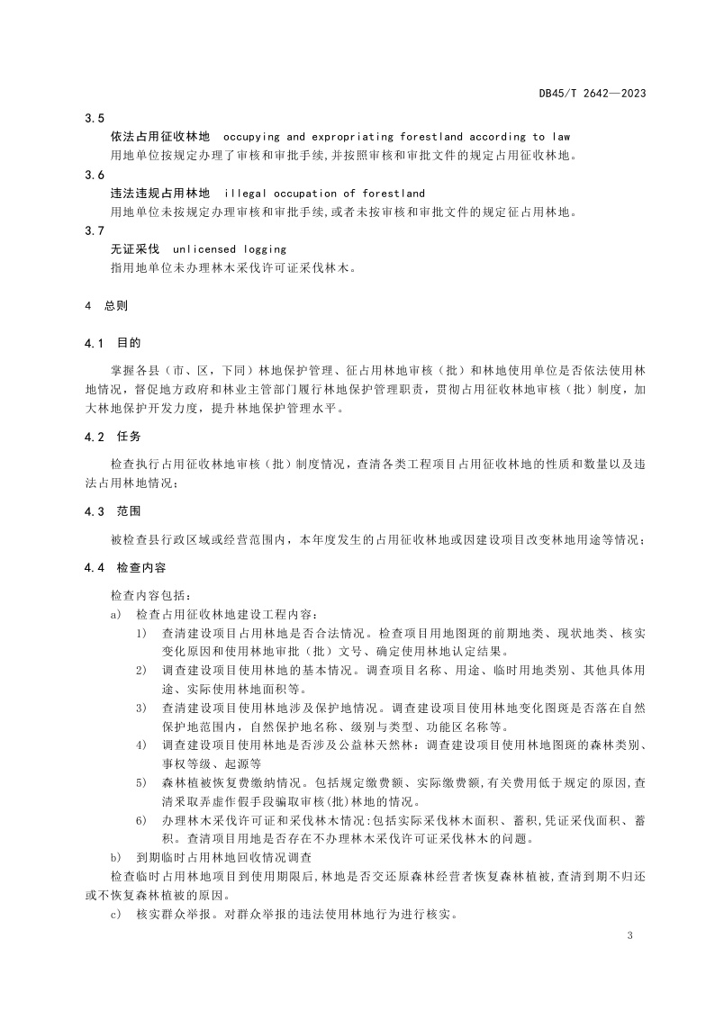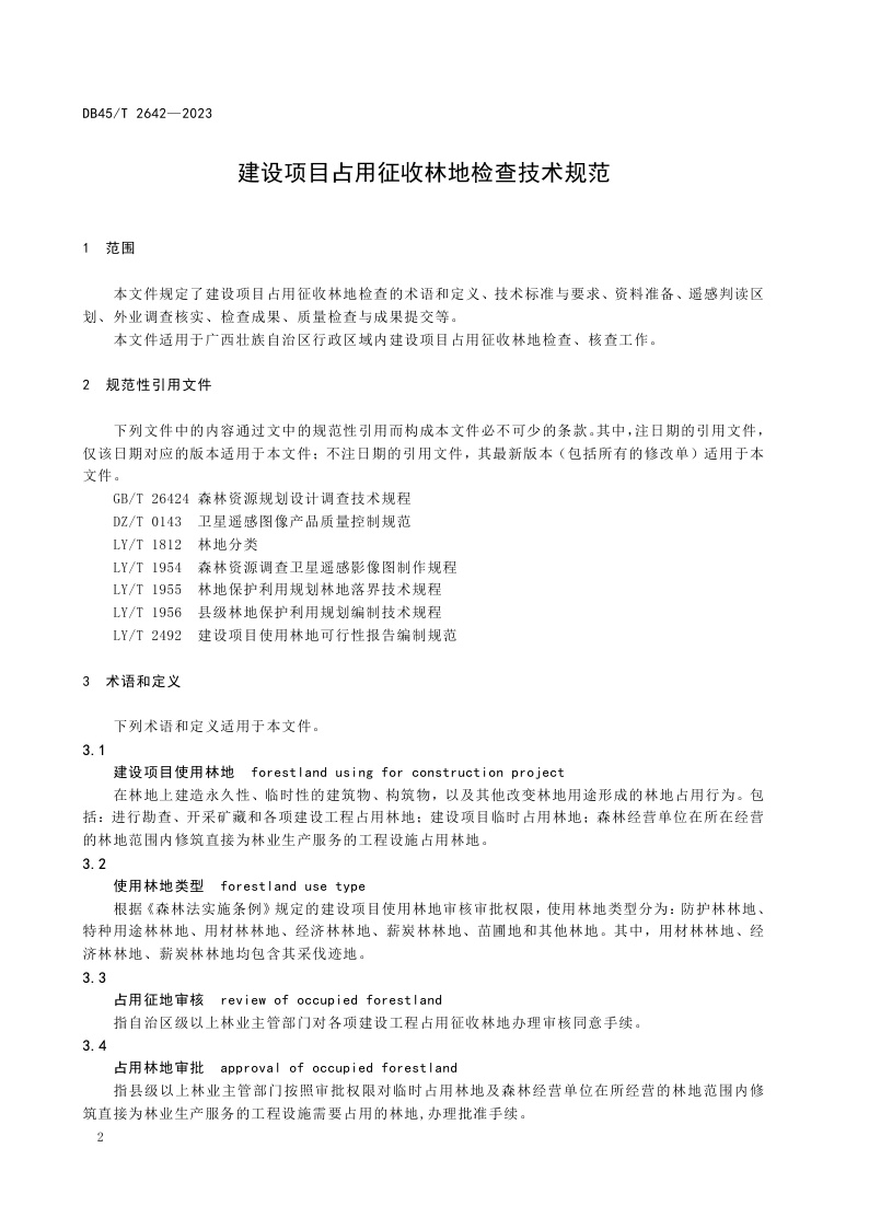 广西壮族自治区《建设项目占用征收林地检查技术规范》(DB45/T 2642-2023)