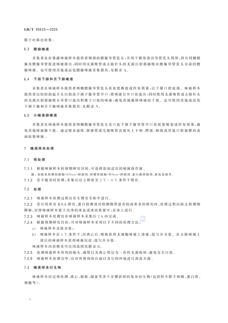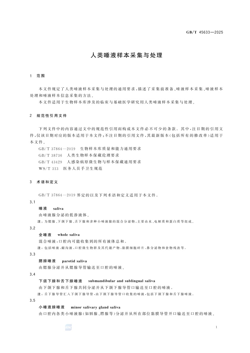 《人类唾液样本采集与处理》(GB/T 45633-2025)