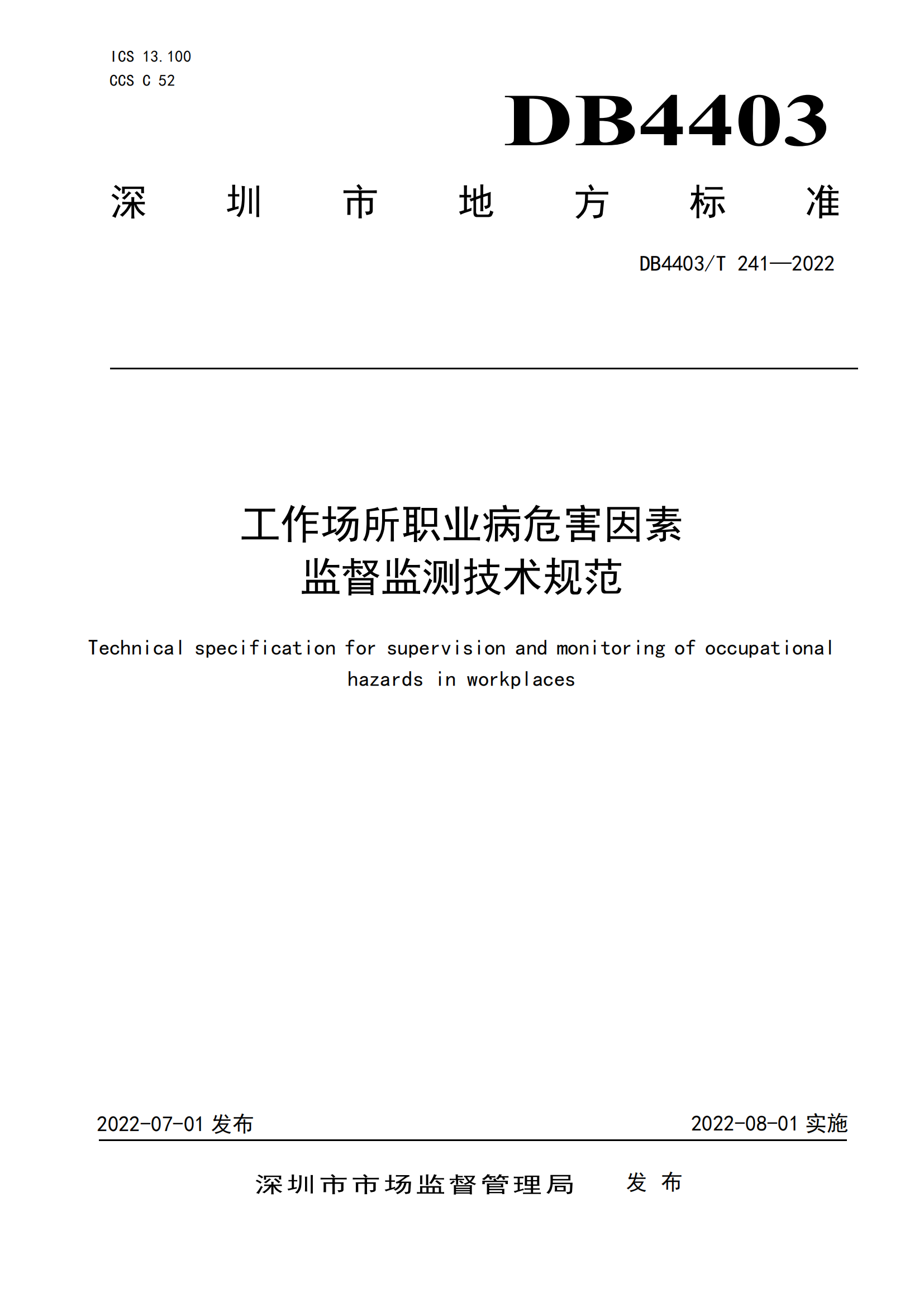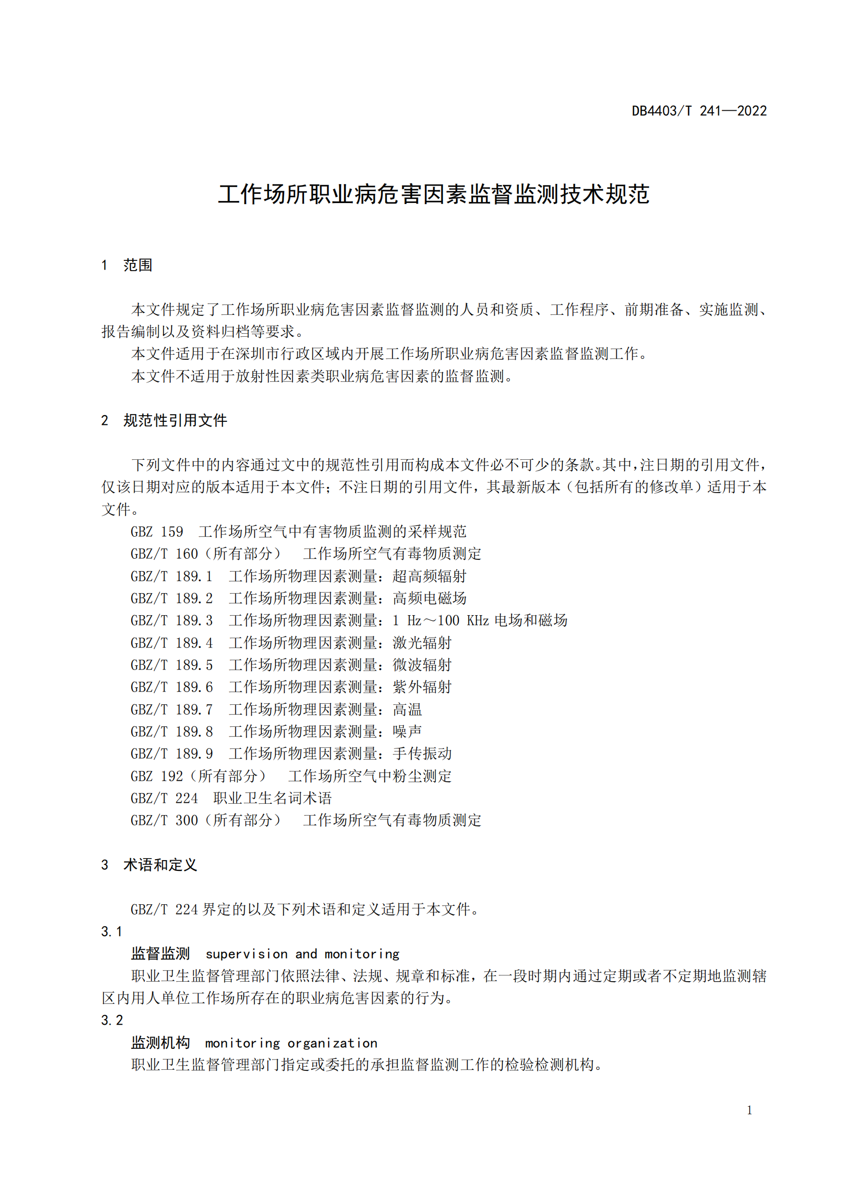 工作场所职业病危害因素监督监测技术规范