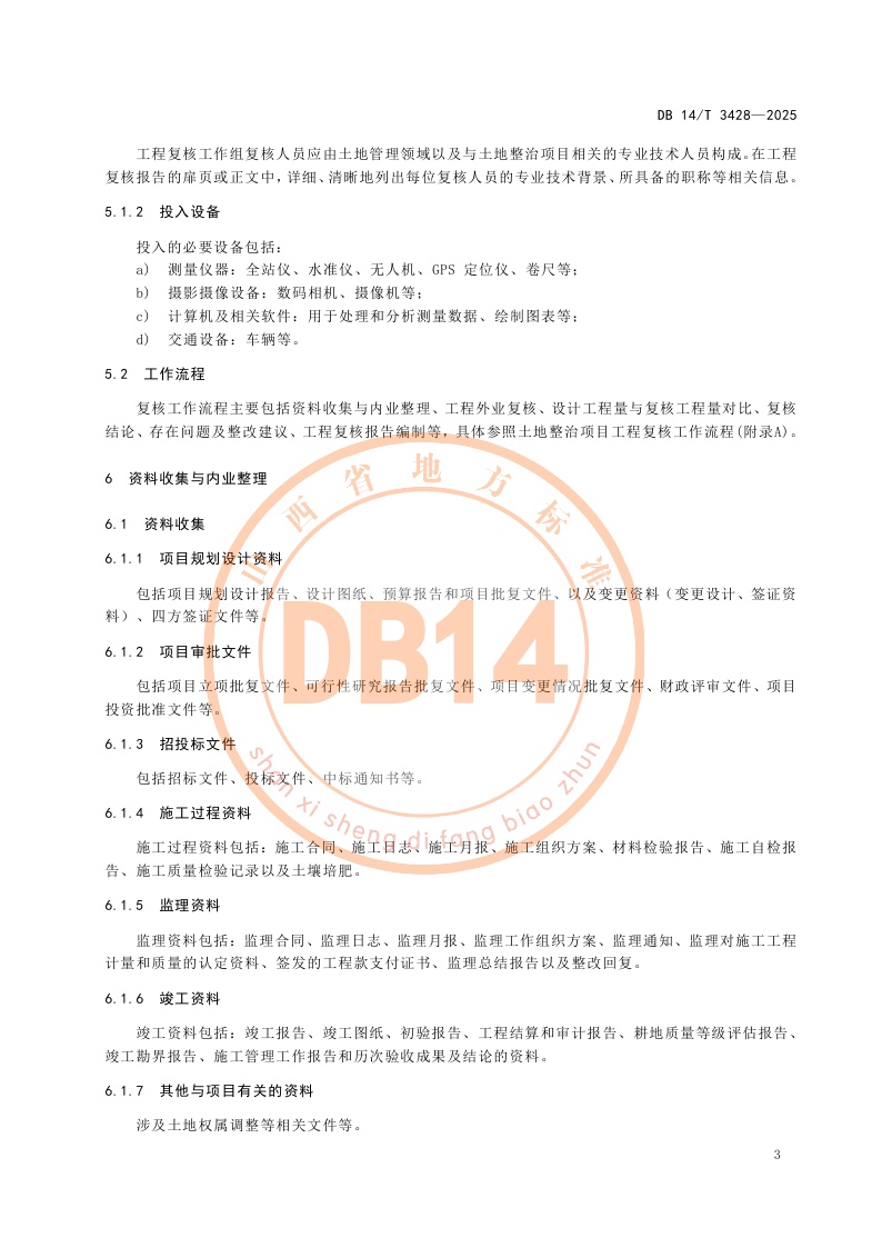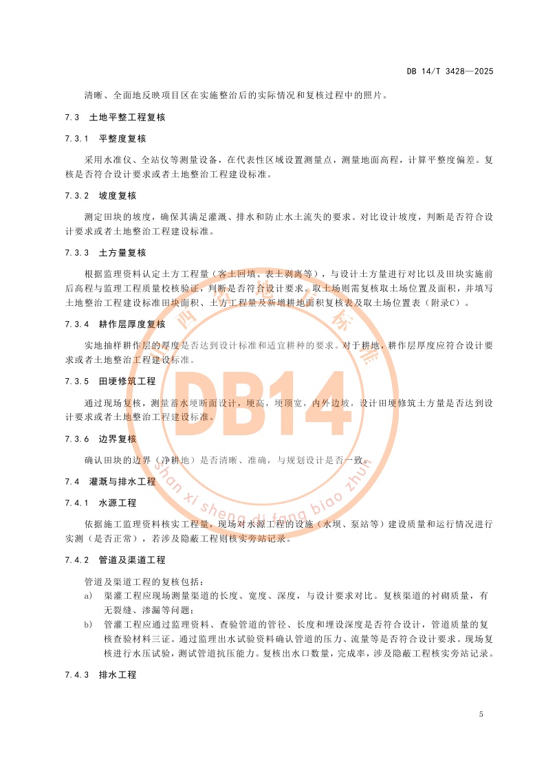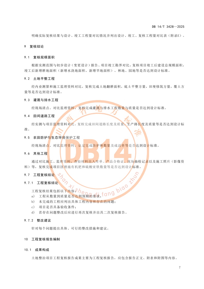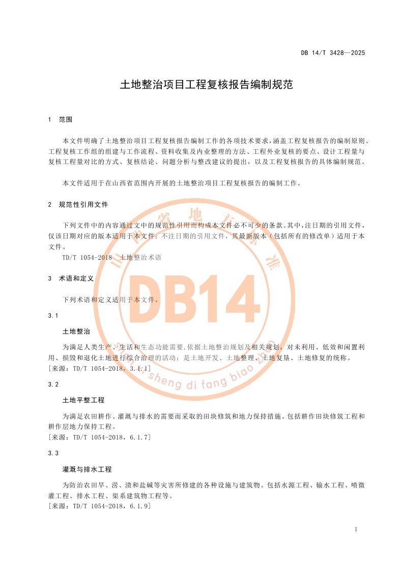 山西省《土地整治项目工程复核报告编制规范》(DB14/T 3428-2025)