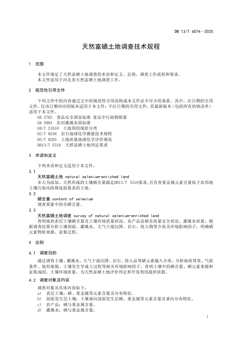河北《天然富硒土地调查技术规程》(DB13/T 6074-2025)
