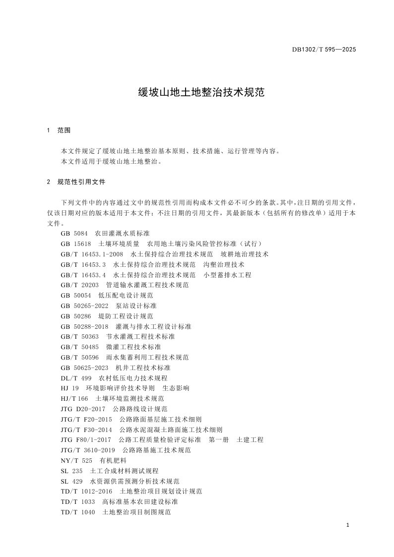 唐山《缓坡山地土地整治技术规范》(DB1302/T 595-2025)