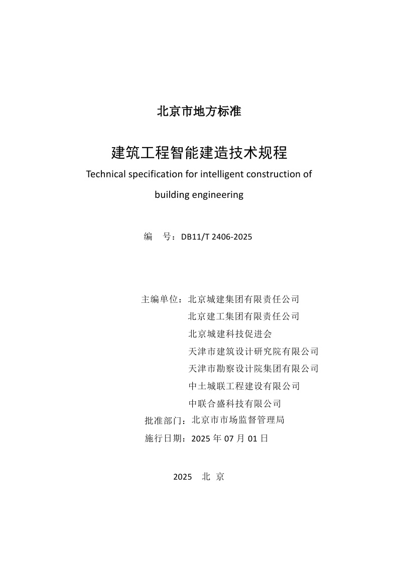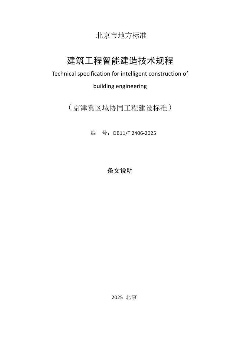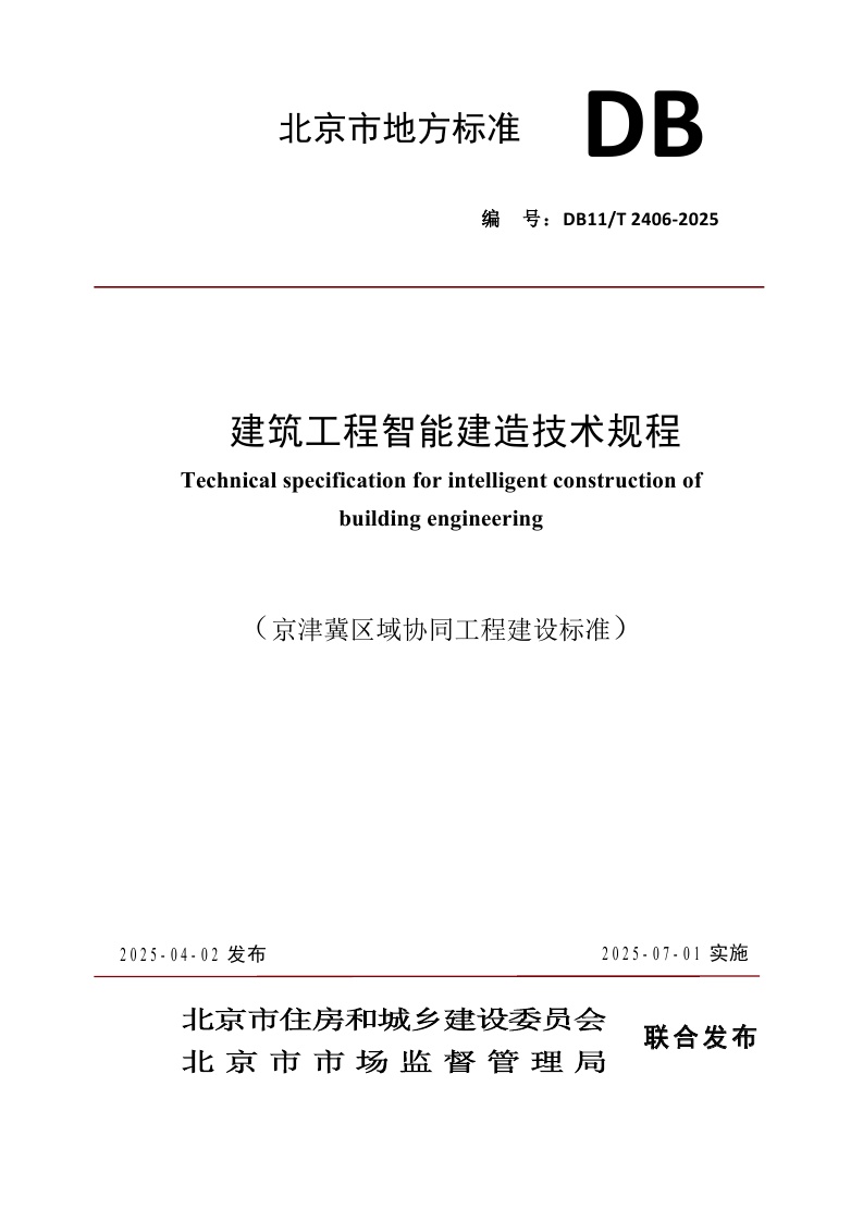 北京市《建筑工程智能建造技术规程》(DB11/T 2406-2025)