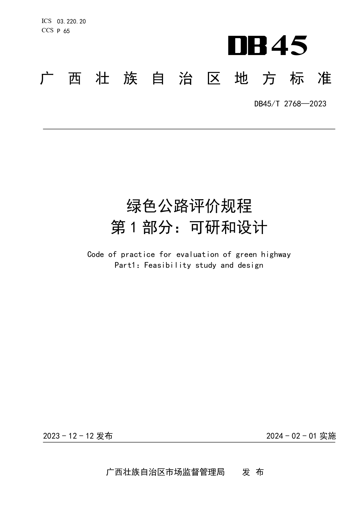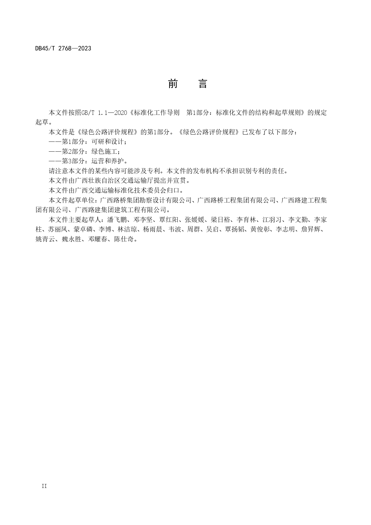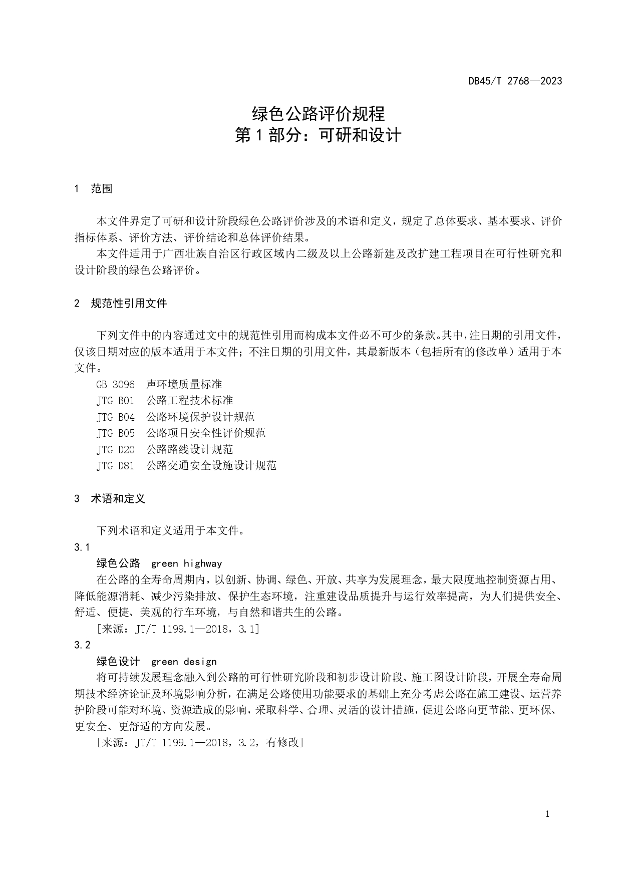 绿色公路评价规程 第1部分:可研和设计DB45/T 2768-2023